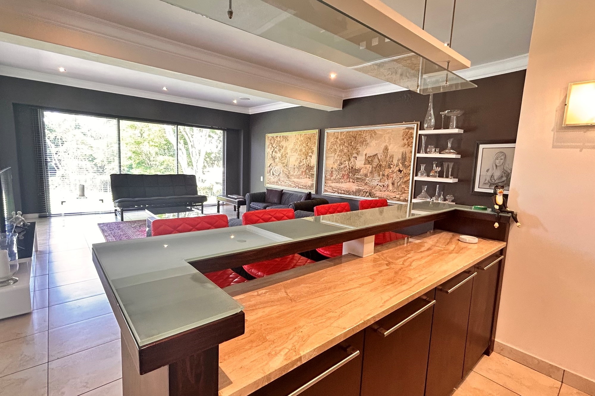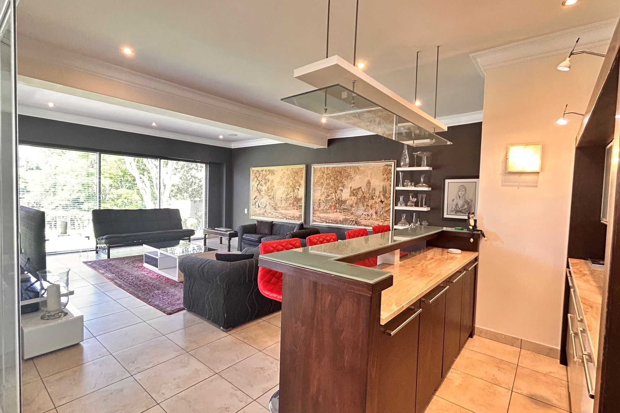 ·Second lounge adjacent to the bar area, opening to a covered patio—perfect for entertaining.