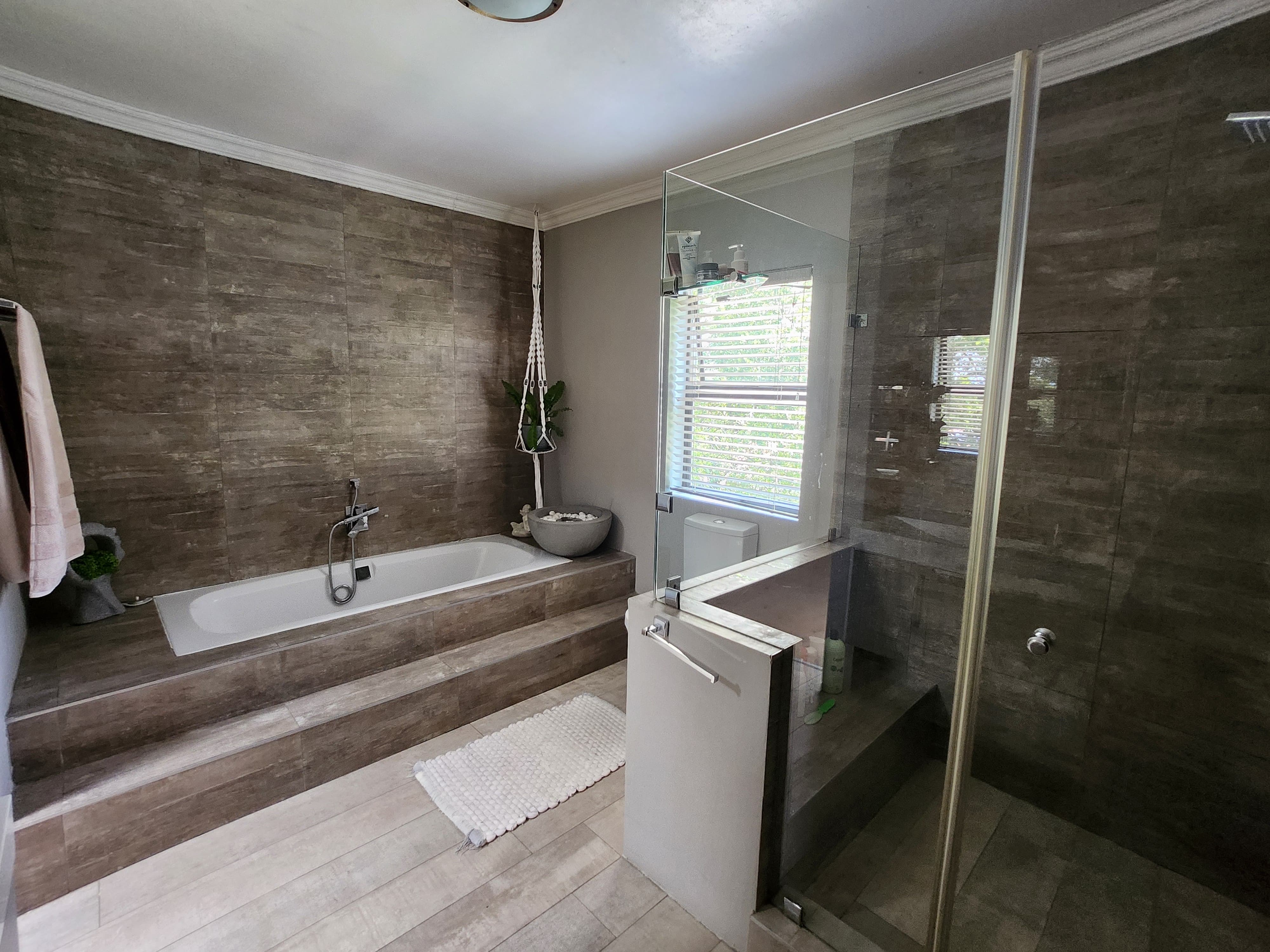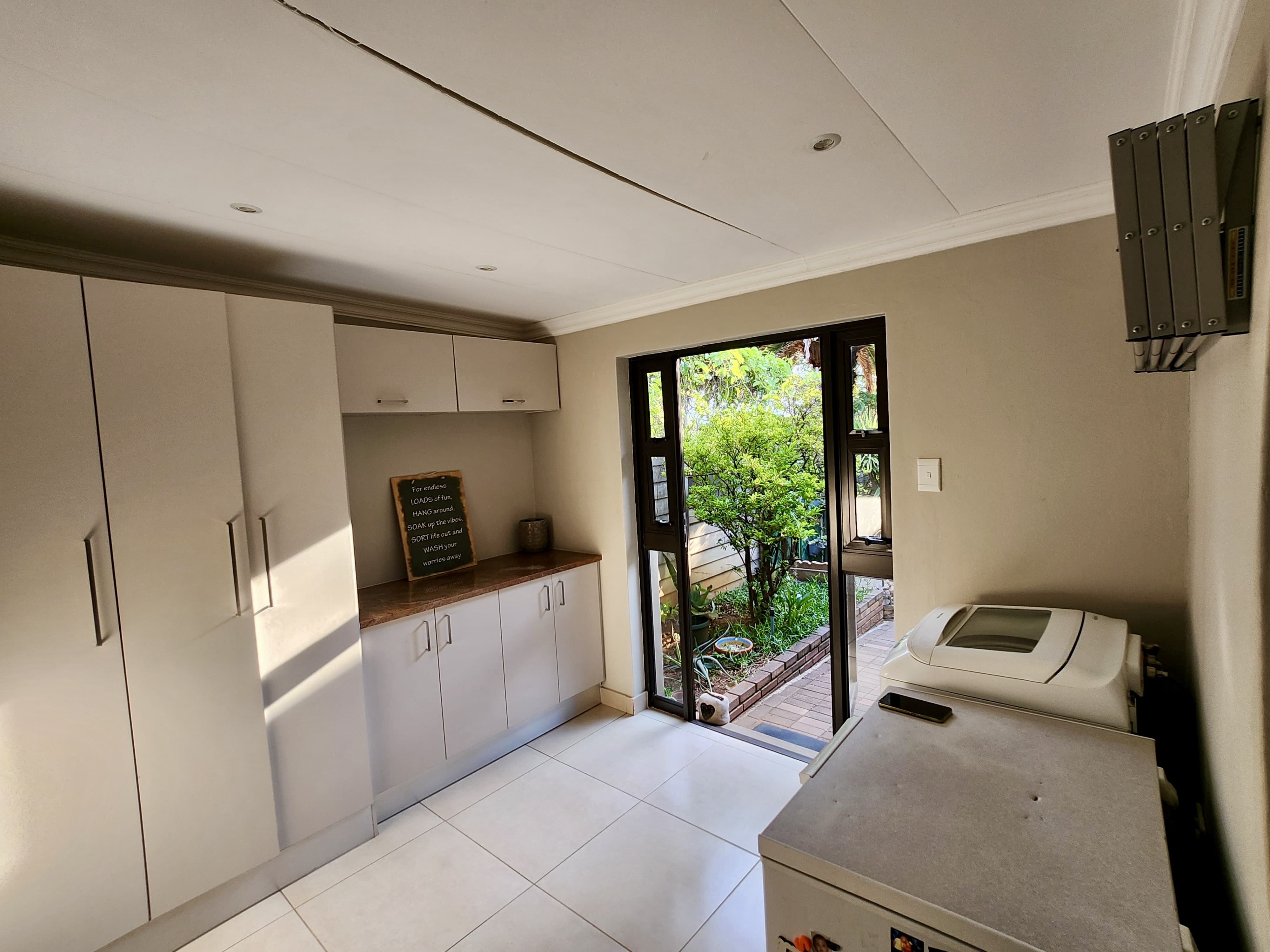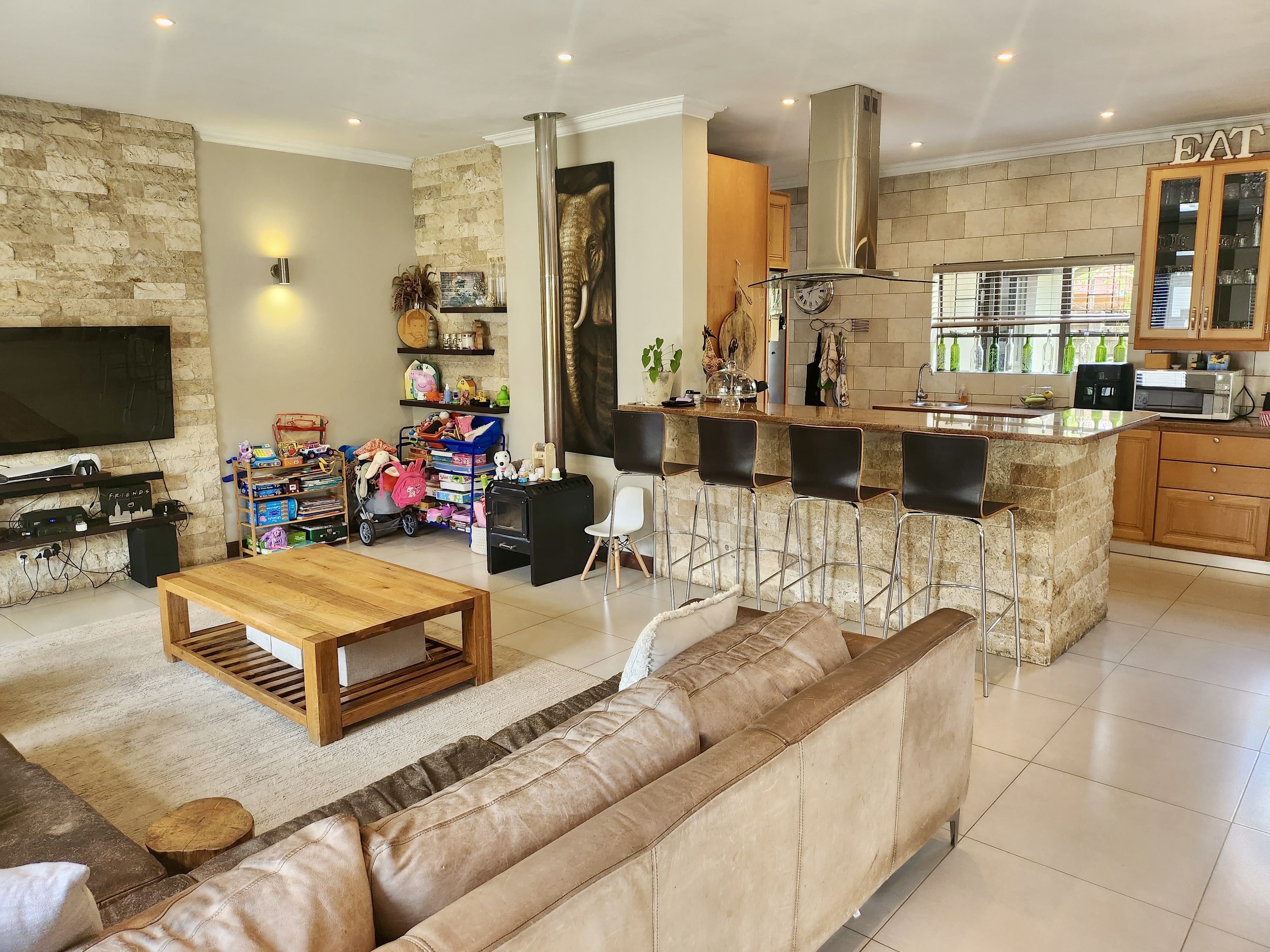 The property also includes private accommodation for a domestic helper, consisting of a bedroom and bathroom. Additional features include solar-powered electricity, solar geysers, an electric fence, and blinds throughout the home.