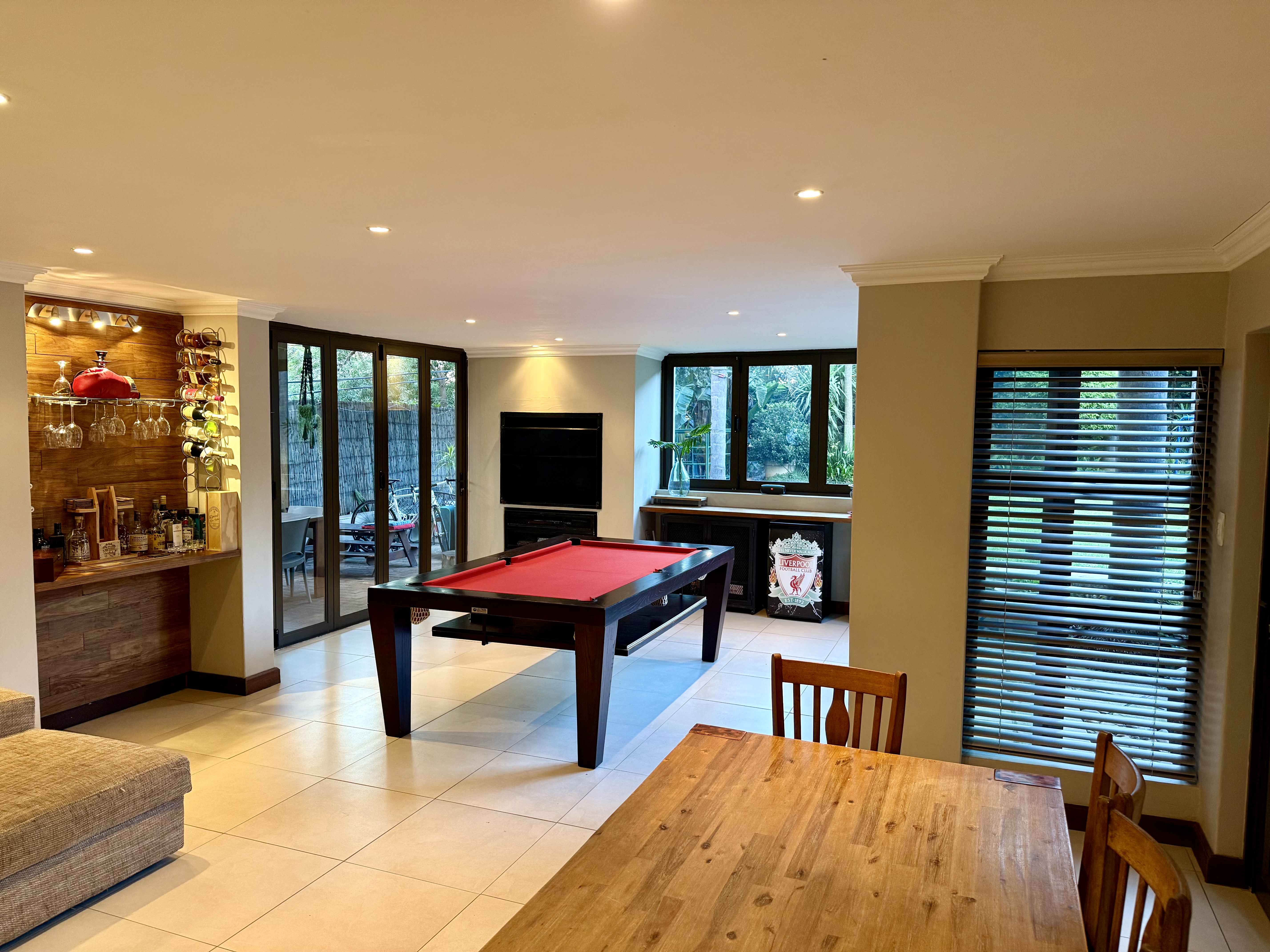 The well-established garden, featuring tall palms, a swimming pool, and lush green lawn, creates a true pet-friendly holiday-at-home atmosphere. And what’s a holiday without friends and family? This home is an entertainer’s dream, boasting a spacious entertainment room that opens onto the garden and an elegant undercover pergola.