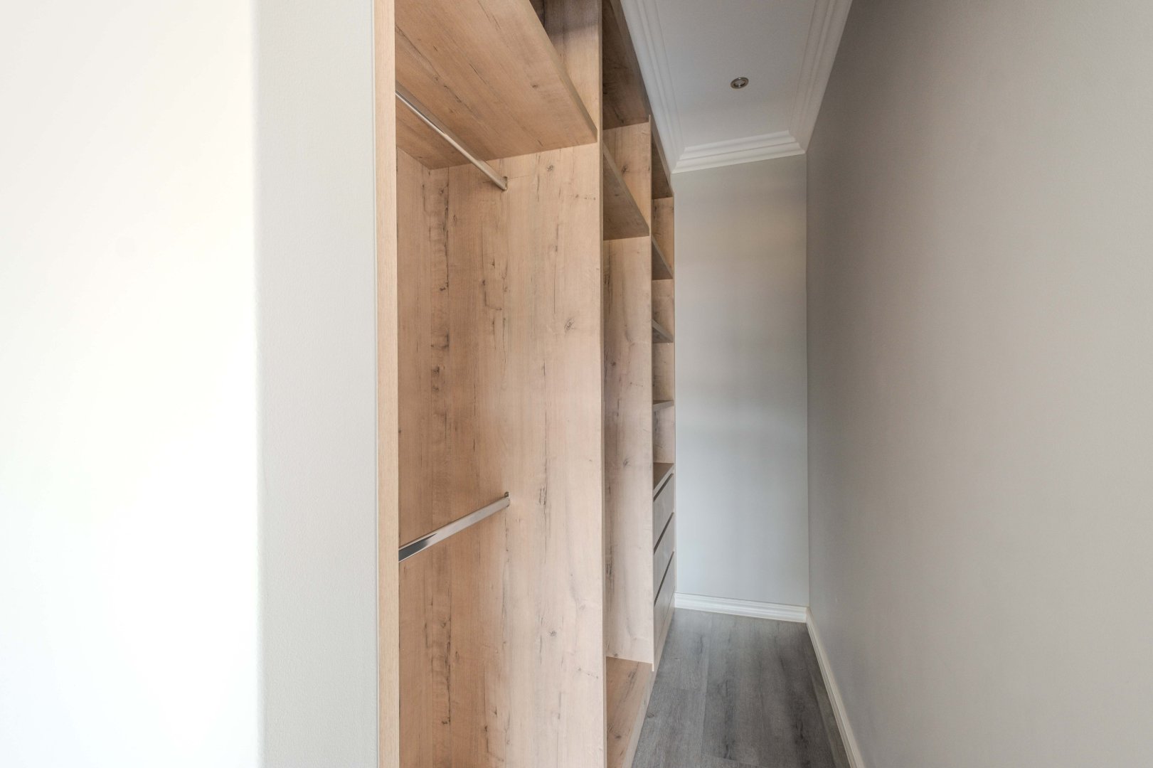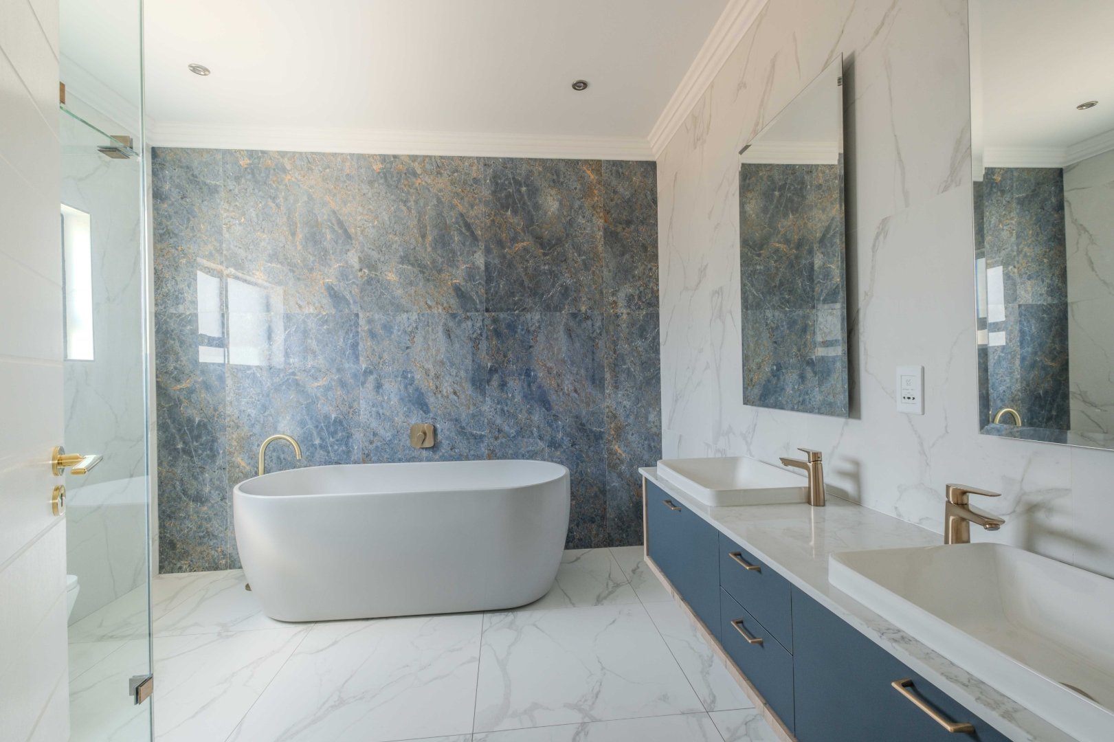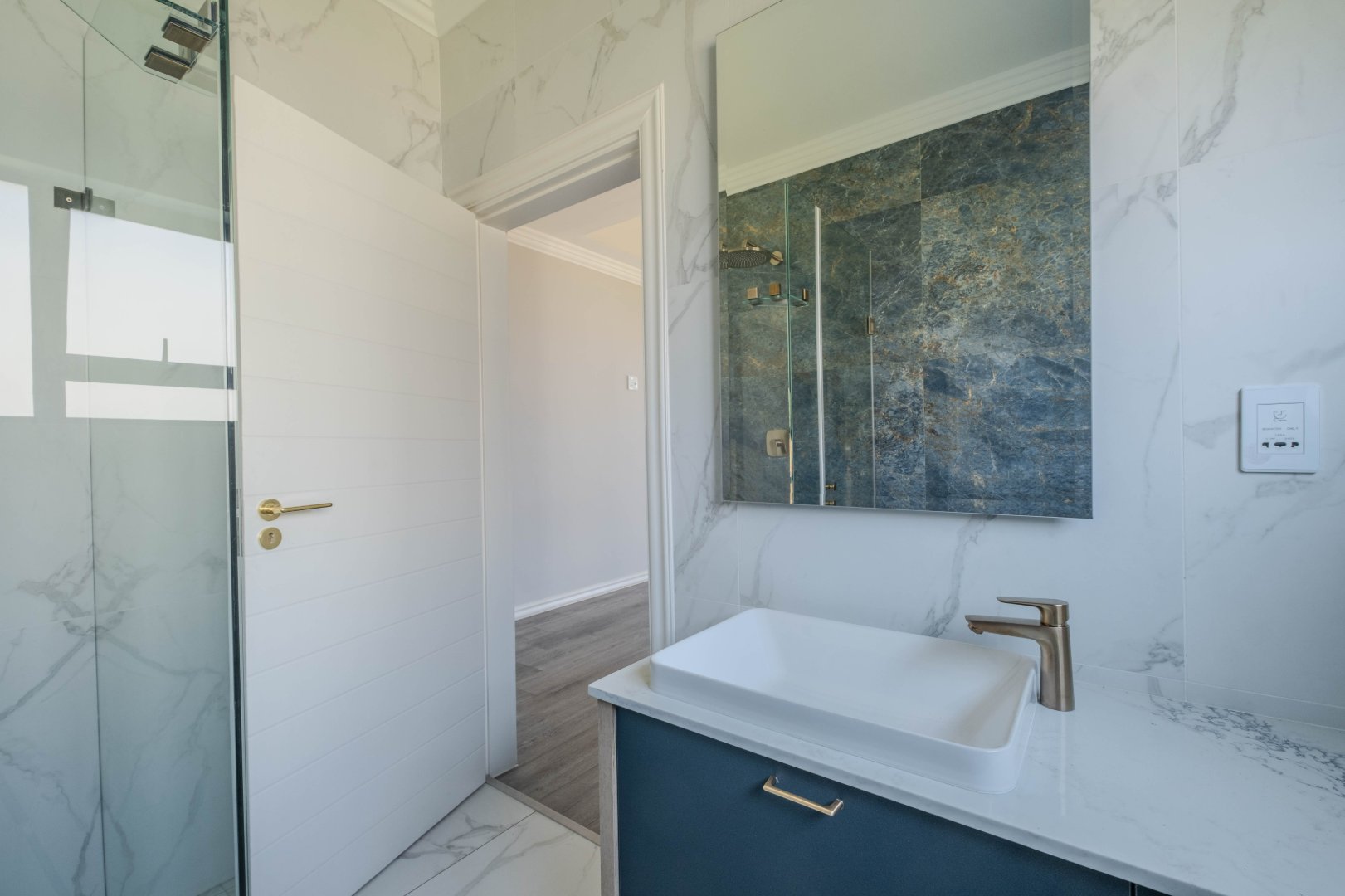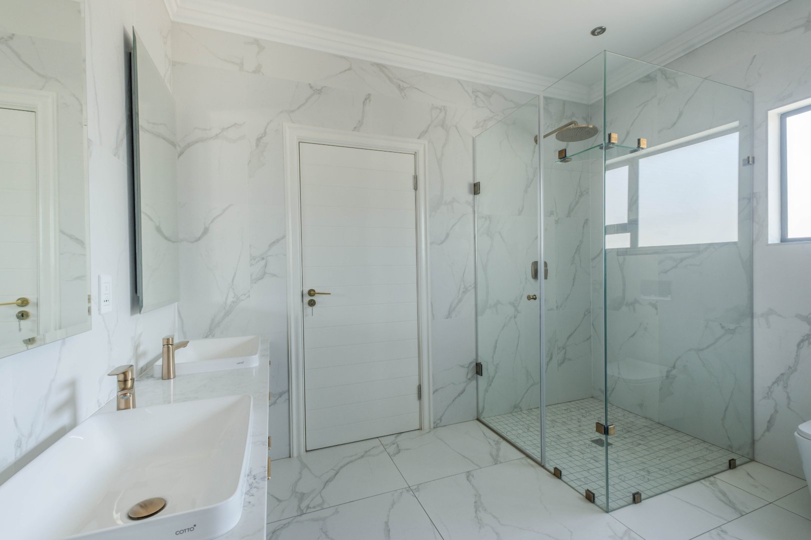 The open-plan kitchen is a chef’s dream, complete with a separate scullery, laundry room, and a cozy enclosed pantry. High-end finishes include a gas stove with a retractable vertical extractor, concealed fridge and freezer, and a built-in microwave, all seamlessly integrated into the sleek design.