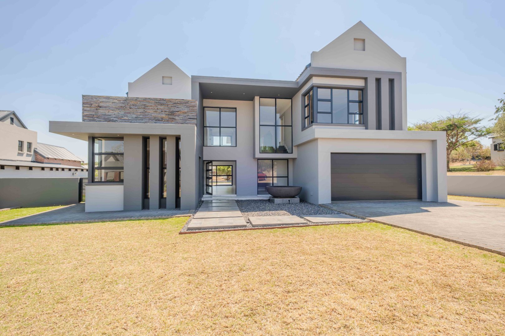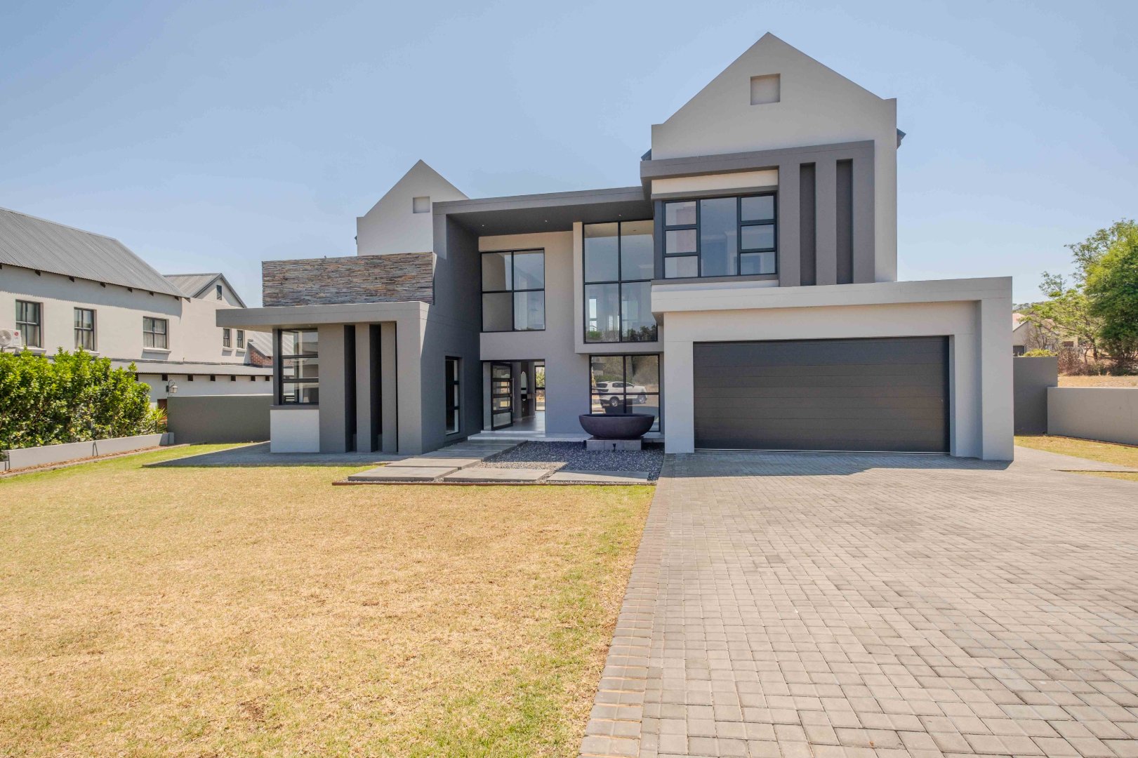 Located in the exclusive Waterlake Farm Lifestyle Estate, this sophisticated 4-bedroom home offers the perfect combination of contemporary style, sustainability, and comfort. Designed with energy efficiency in mind, the property is fully equipped with a 5kWh Sunsynk inverter and 10kWh batteries, as well as solar geysers, ensuring lower energy costs and a smaller environmental footprint.
