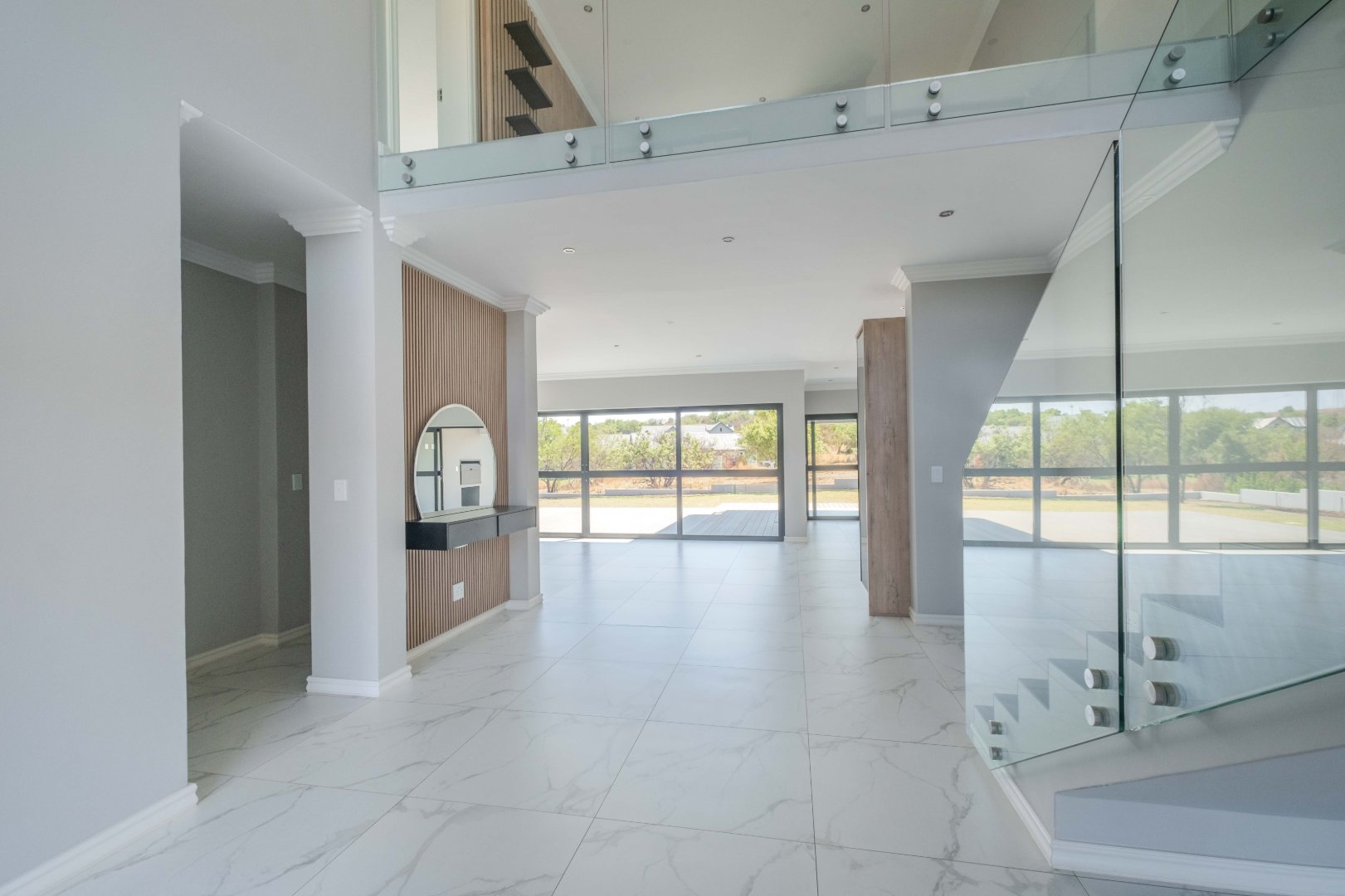 Other standout features include a double garage with a drive-through section, a staff accommodation suite with an en-suite bathroom, and a well-kept garden that enhances the home's curb appeal.