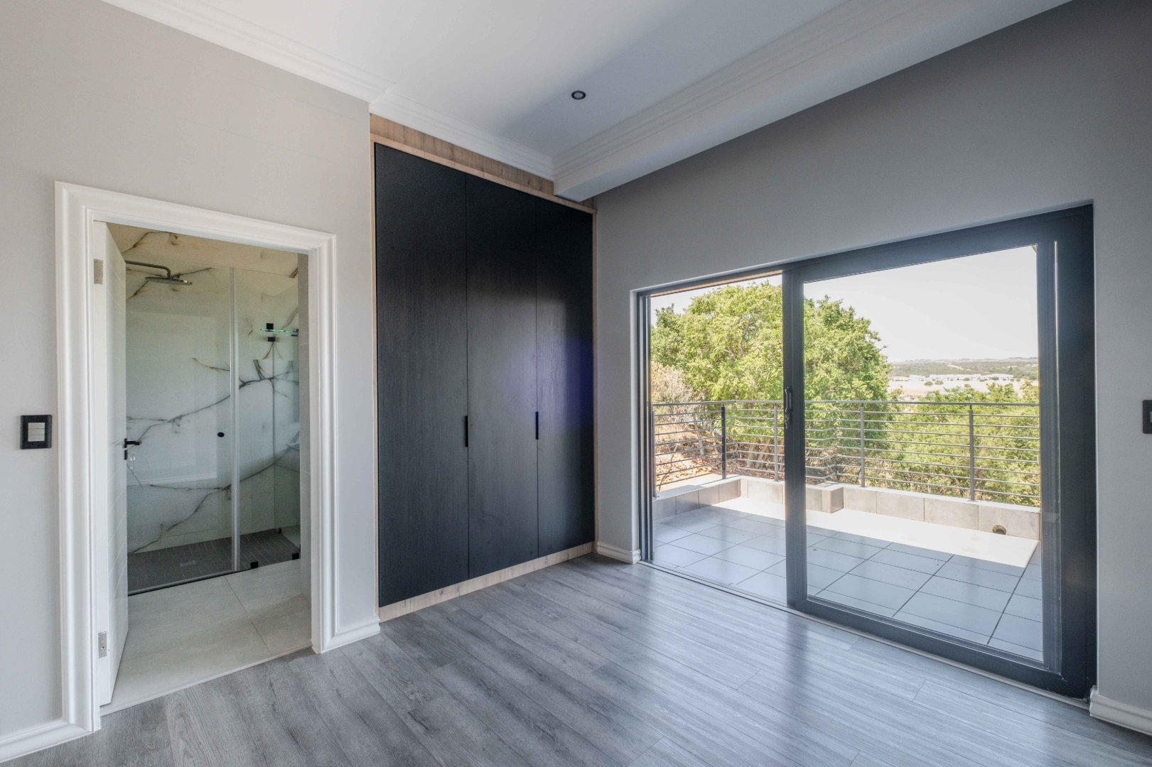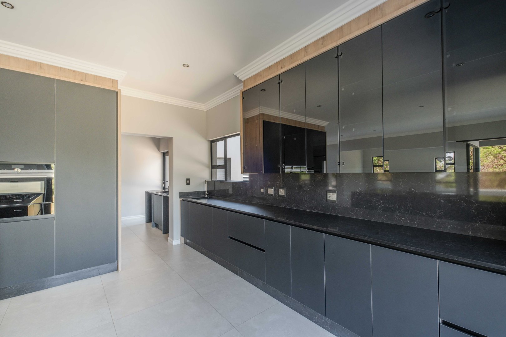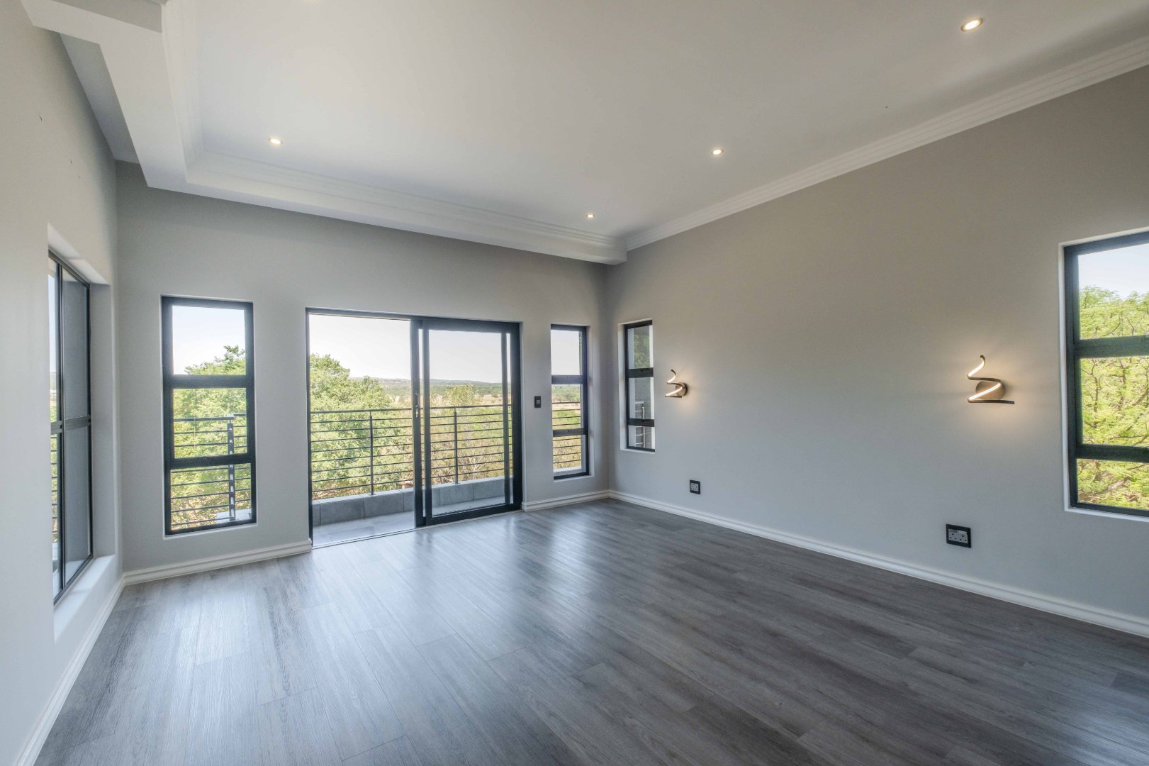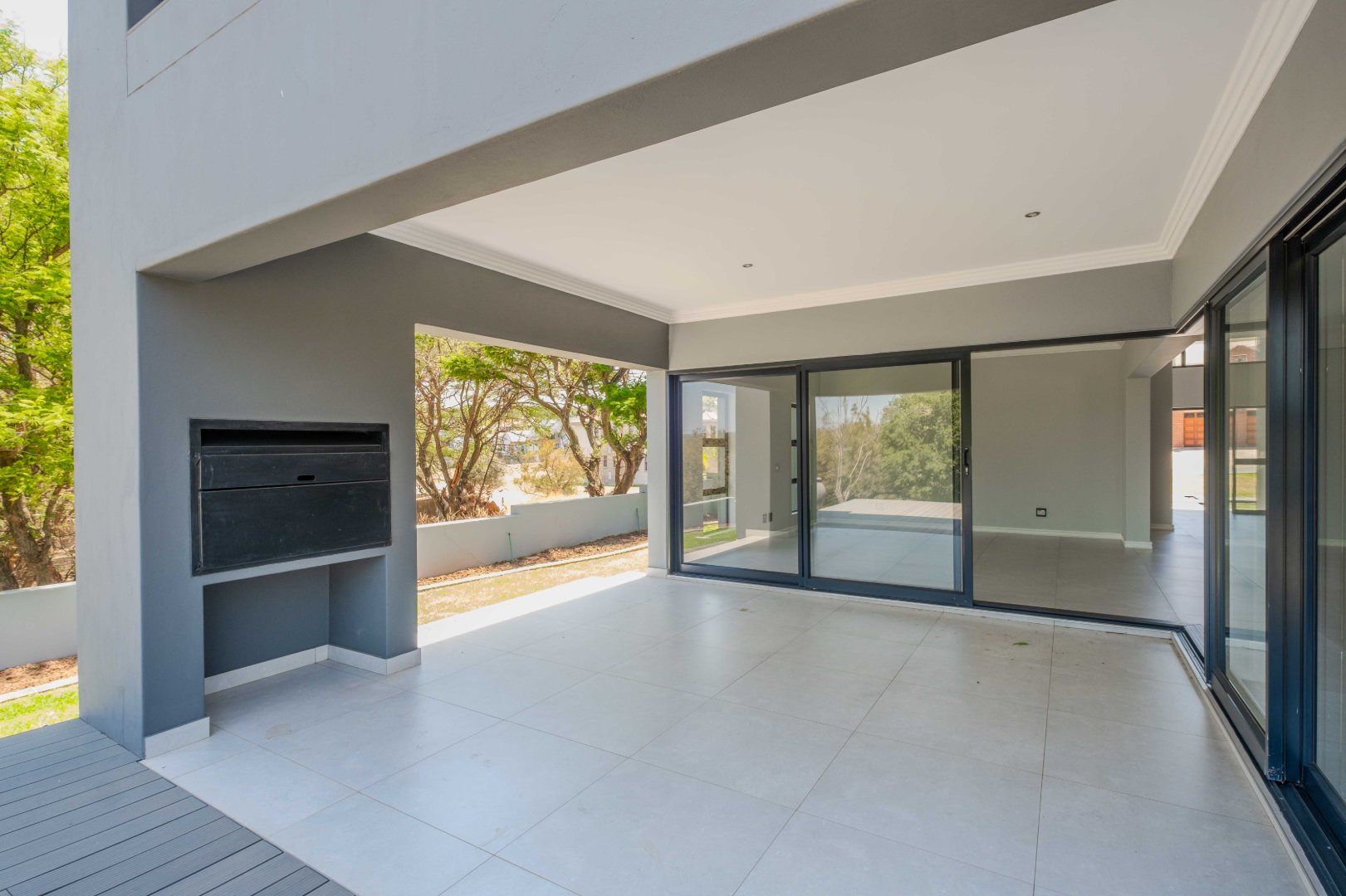 The expansive open-plan living areas flow seamlessly into a covered patio complete with a built-in braai, making it the perfect setting for alfresco dining and entertaining guests.
