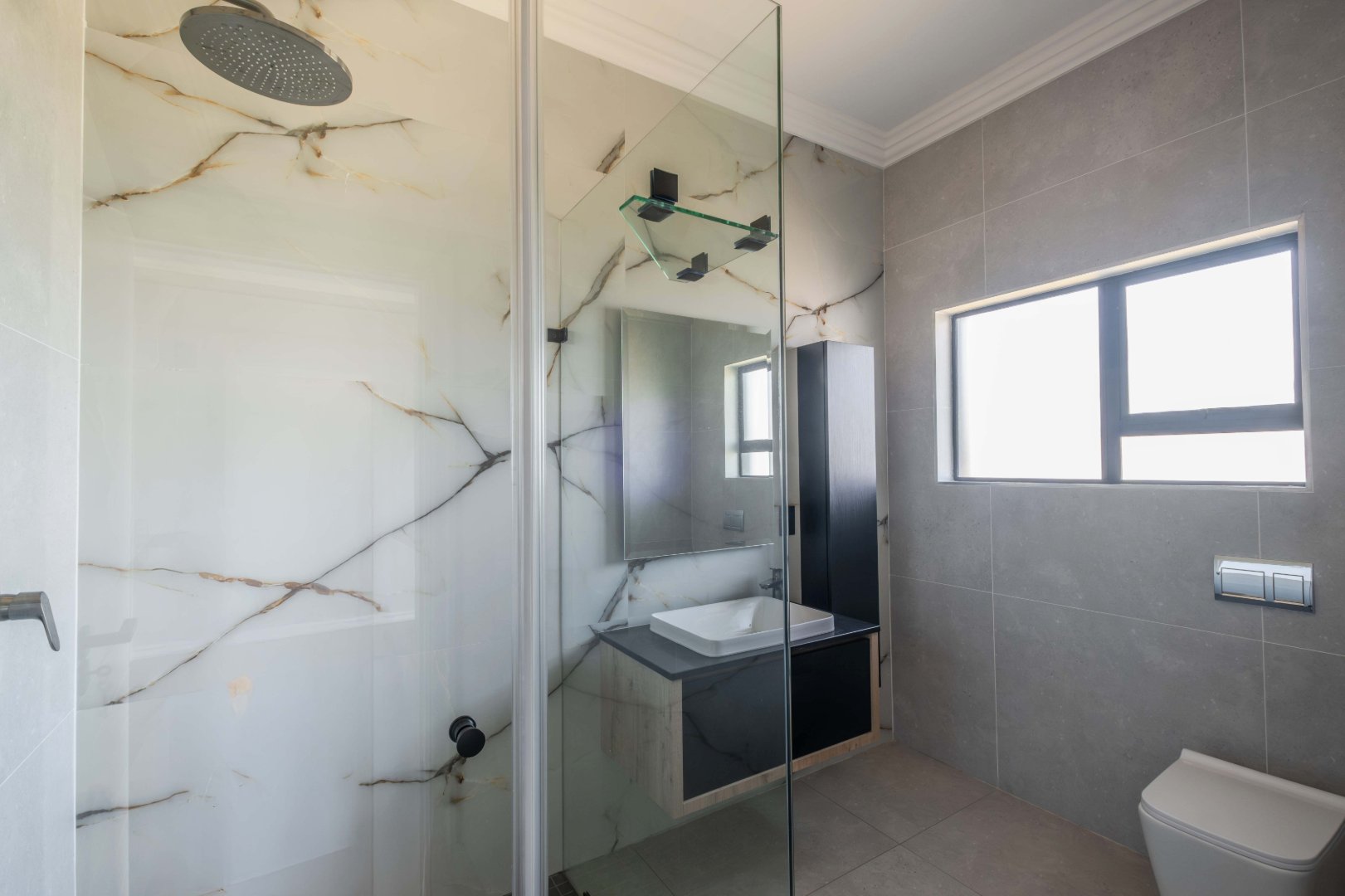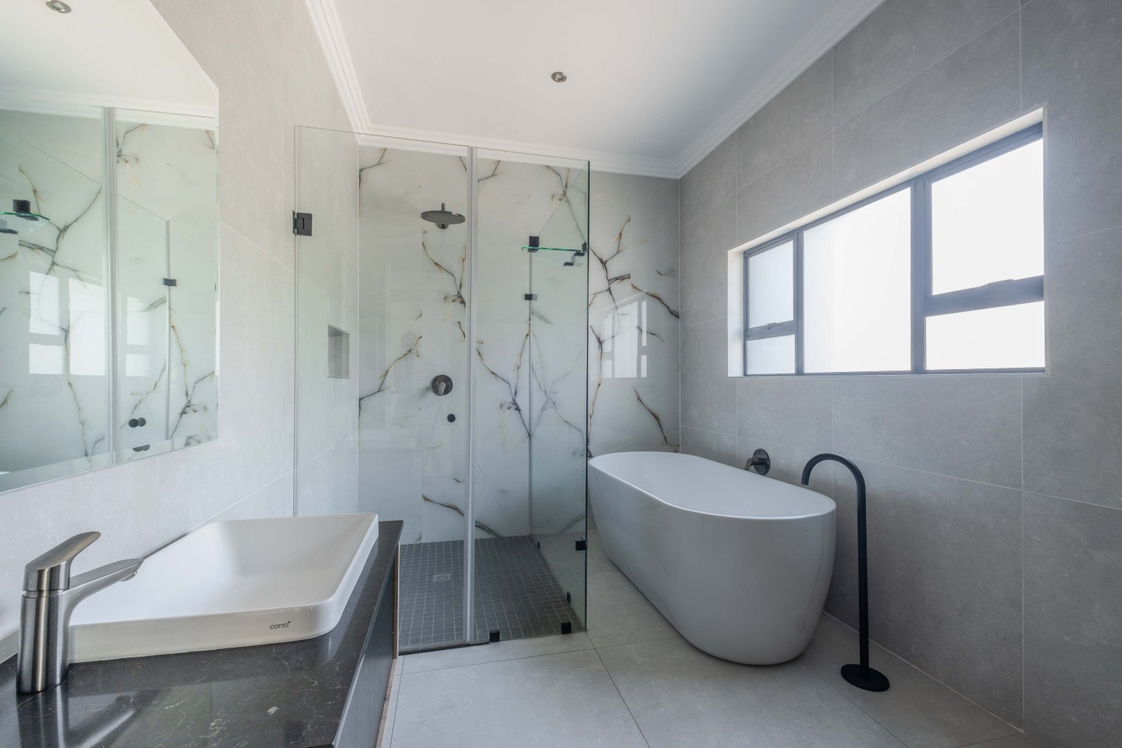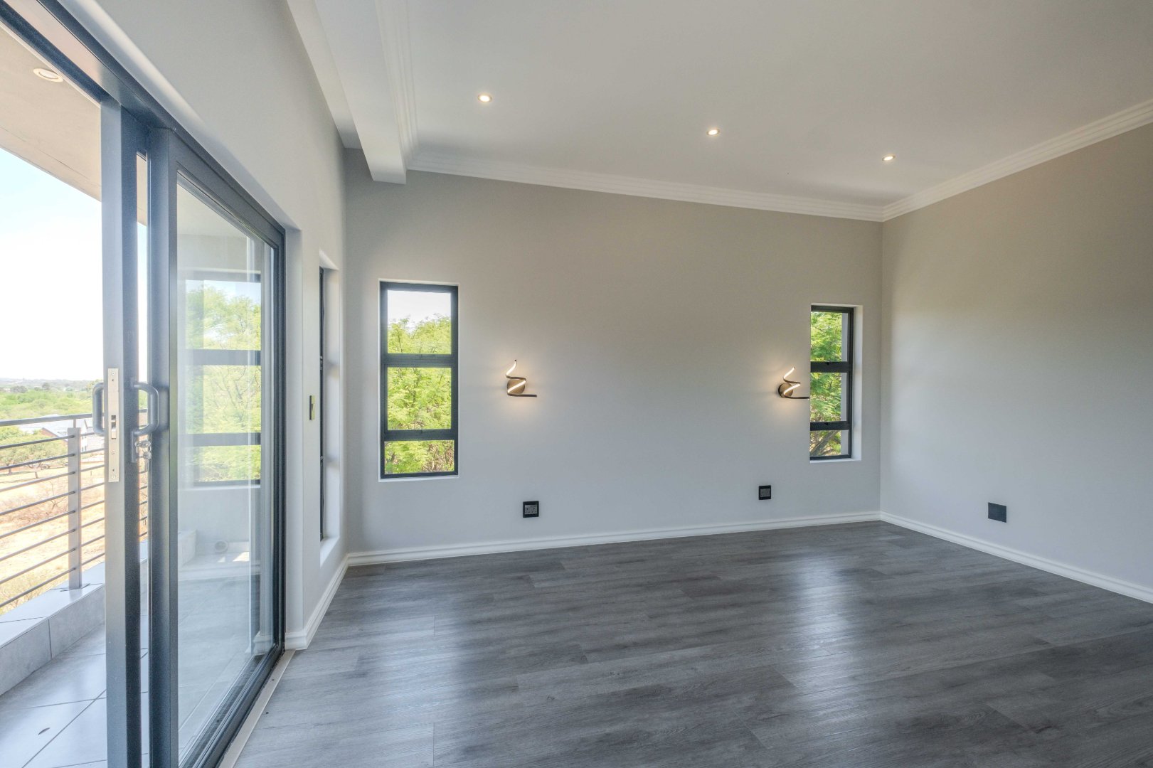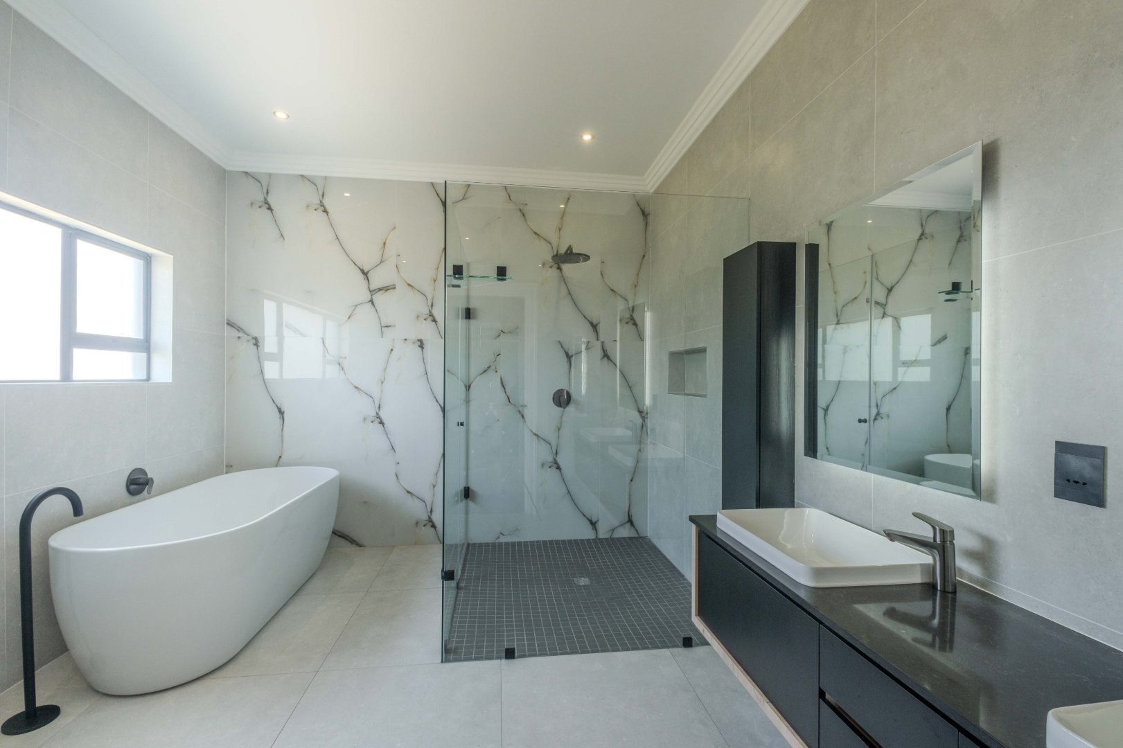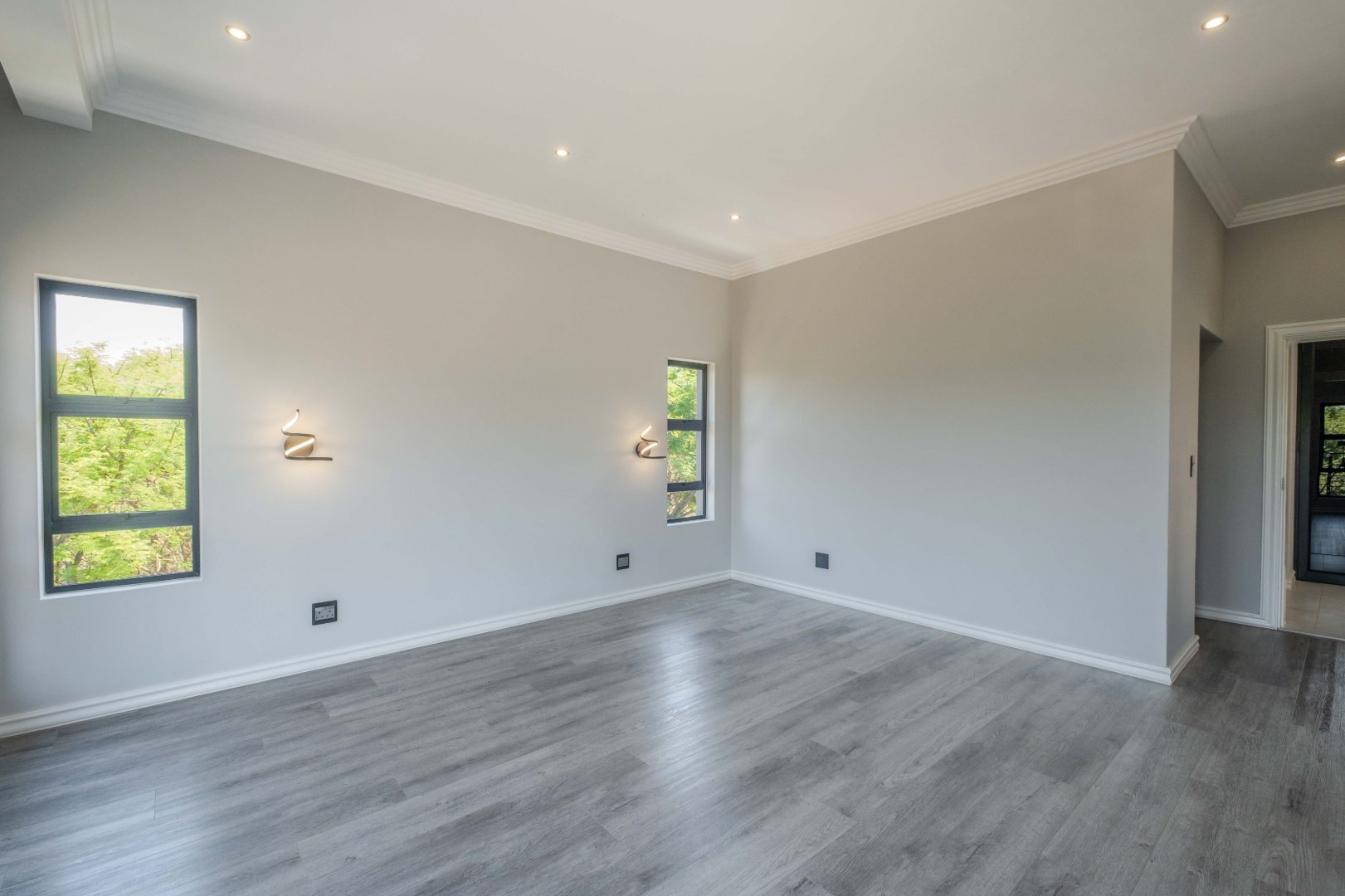 The expansive open-plan living areas flow seamlessly into a covered patio complete with a built-in braai, making it the perfect setting for alfresco dining and entertaining guests.