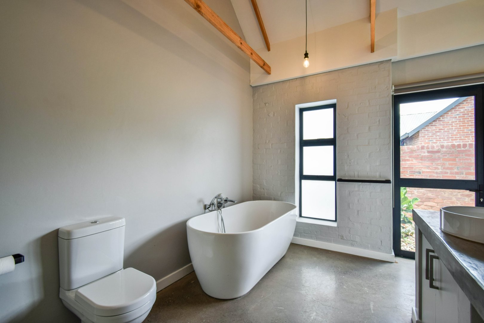 The home offers generously sized bedrooms with built-in cupboards and a stylish bathroom fitted with both a modern shower and an elegant freestanding bath.