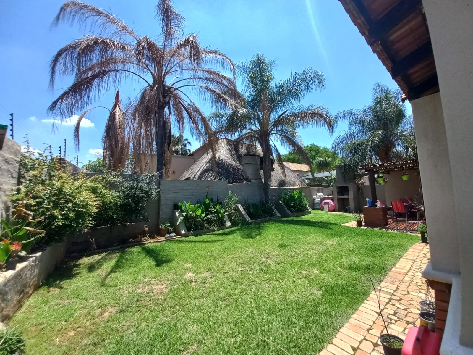 The outdoor area includes a built-in braai and a tidy, landscaped garden — a perfect spot to unwind or entertain.