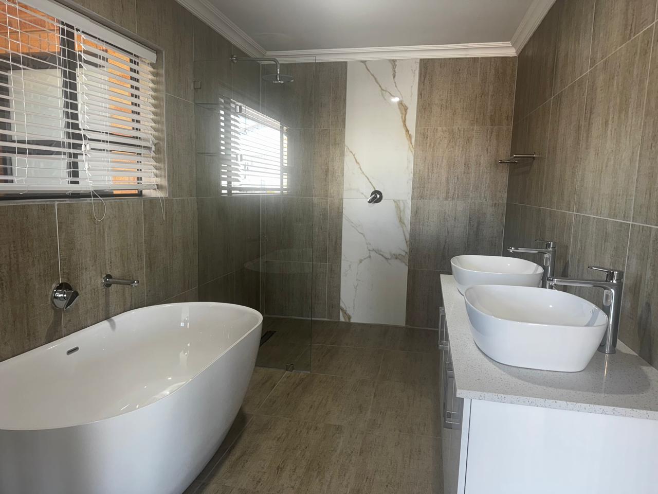 Additional features include: full boundary wall, paved driveways, LED lighting, aluminium windows & gutters, water tank with pump, electric + gas geysers, fibre-ready connectivity, automated gate, and plenty of guest parking.