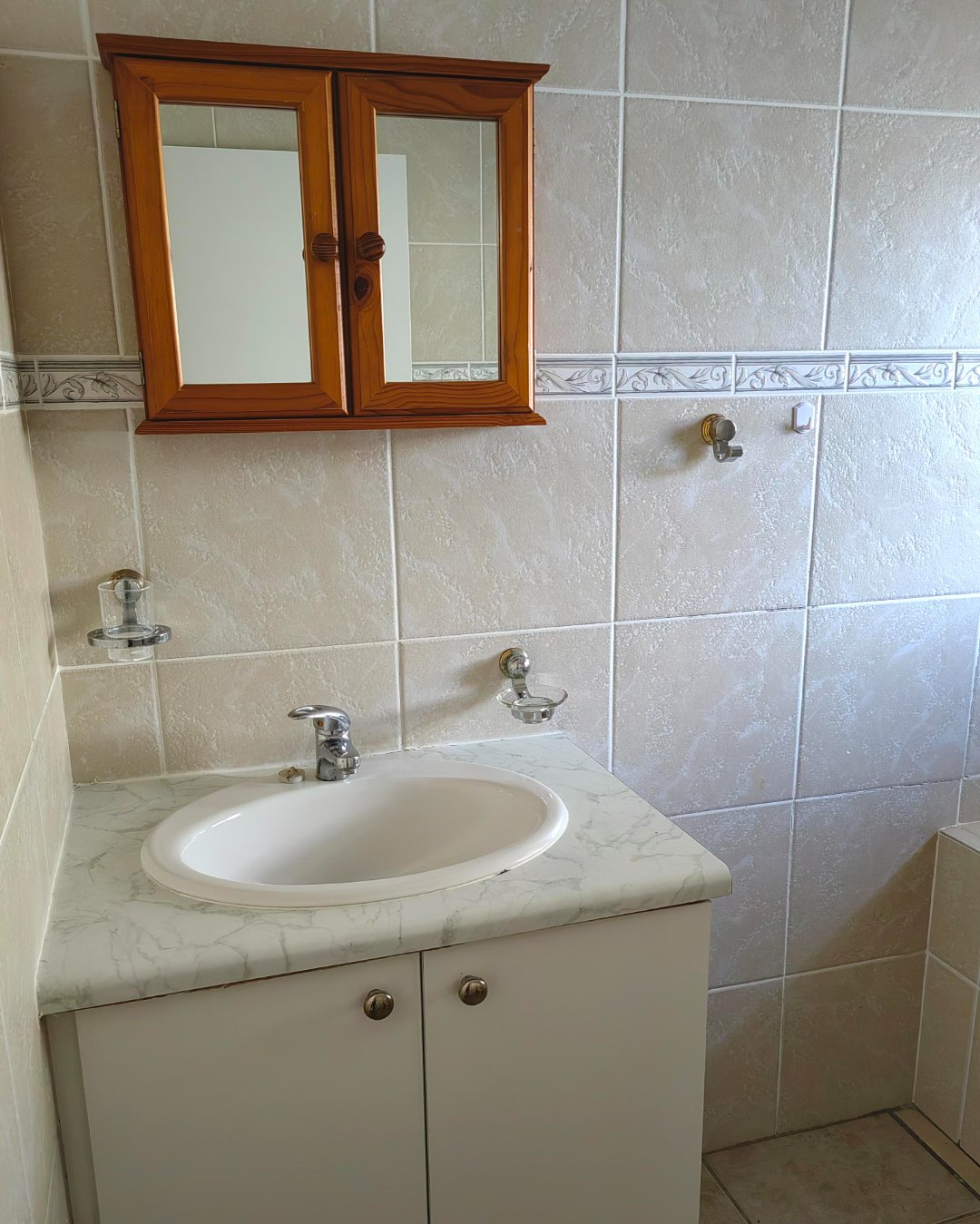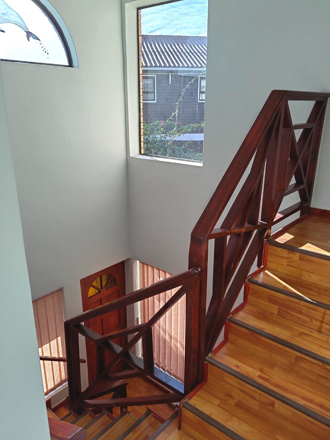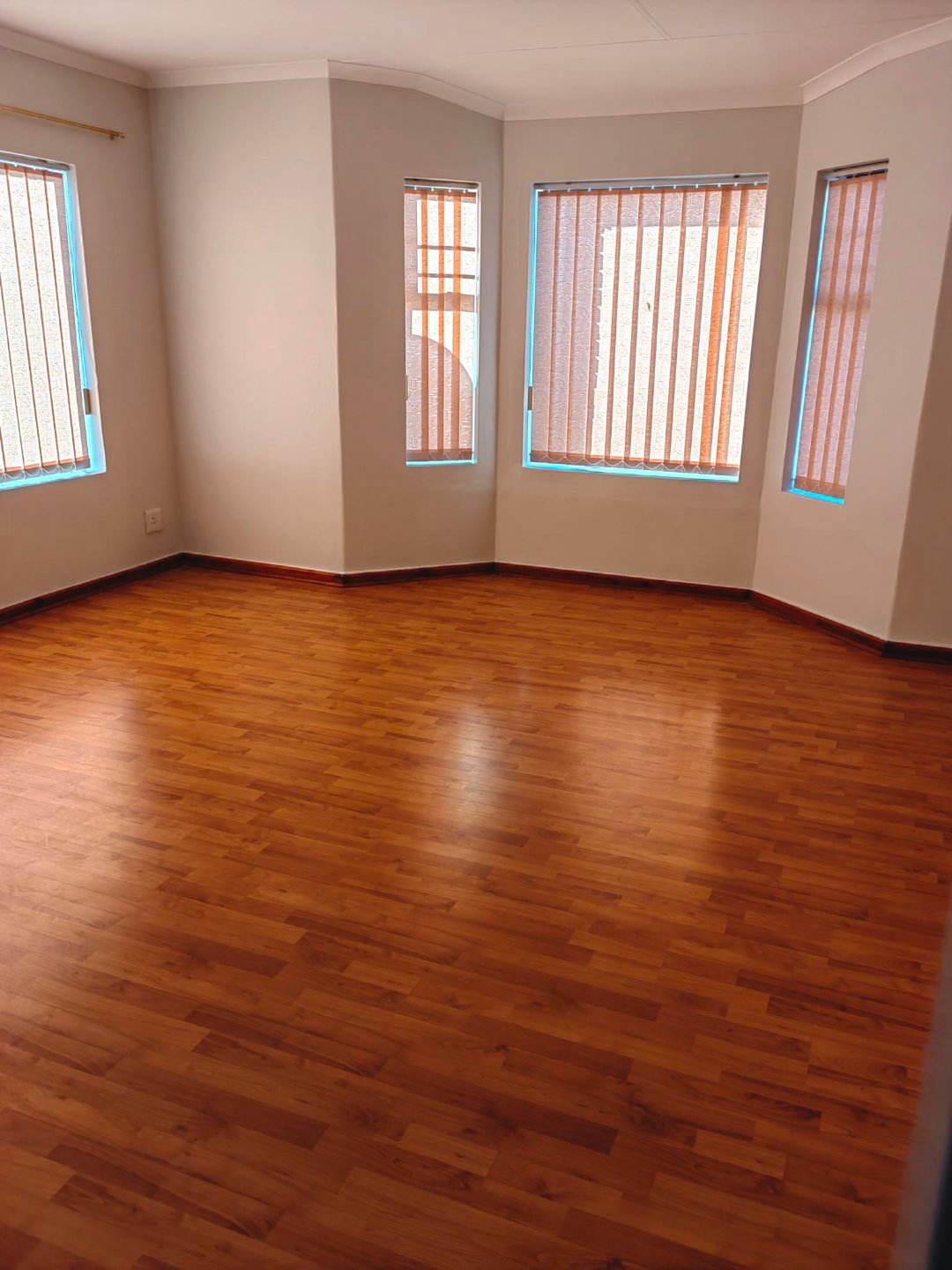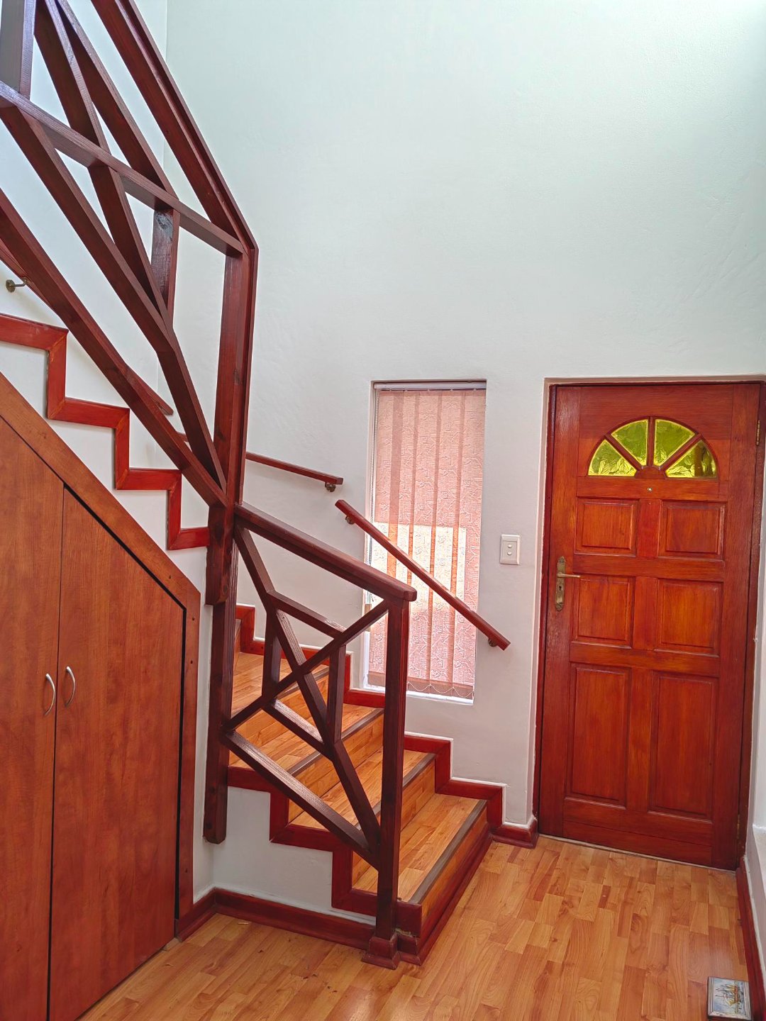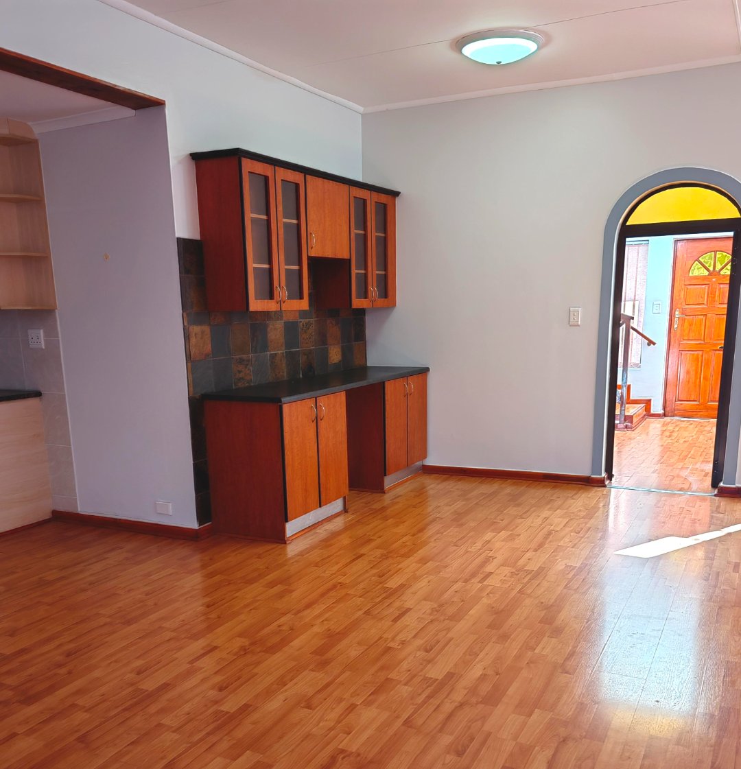 The lower level welcomes you with a spacious entrance hall that flows seamlessly into an open-plan living area and modern kitchen with a separate scullery. This level features three generously sized bedrooms and two bathrooms, including an en-suite to the main bedroom, complete with ample built-in cupboards.