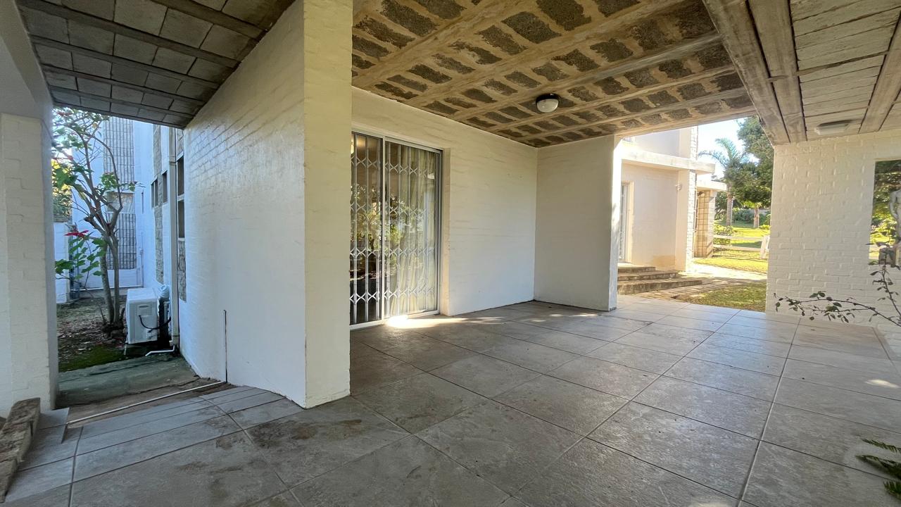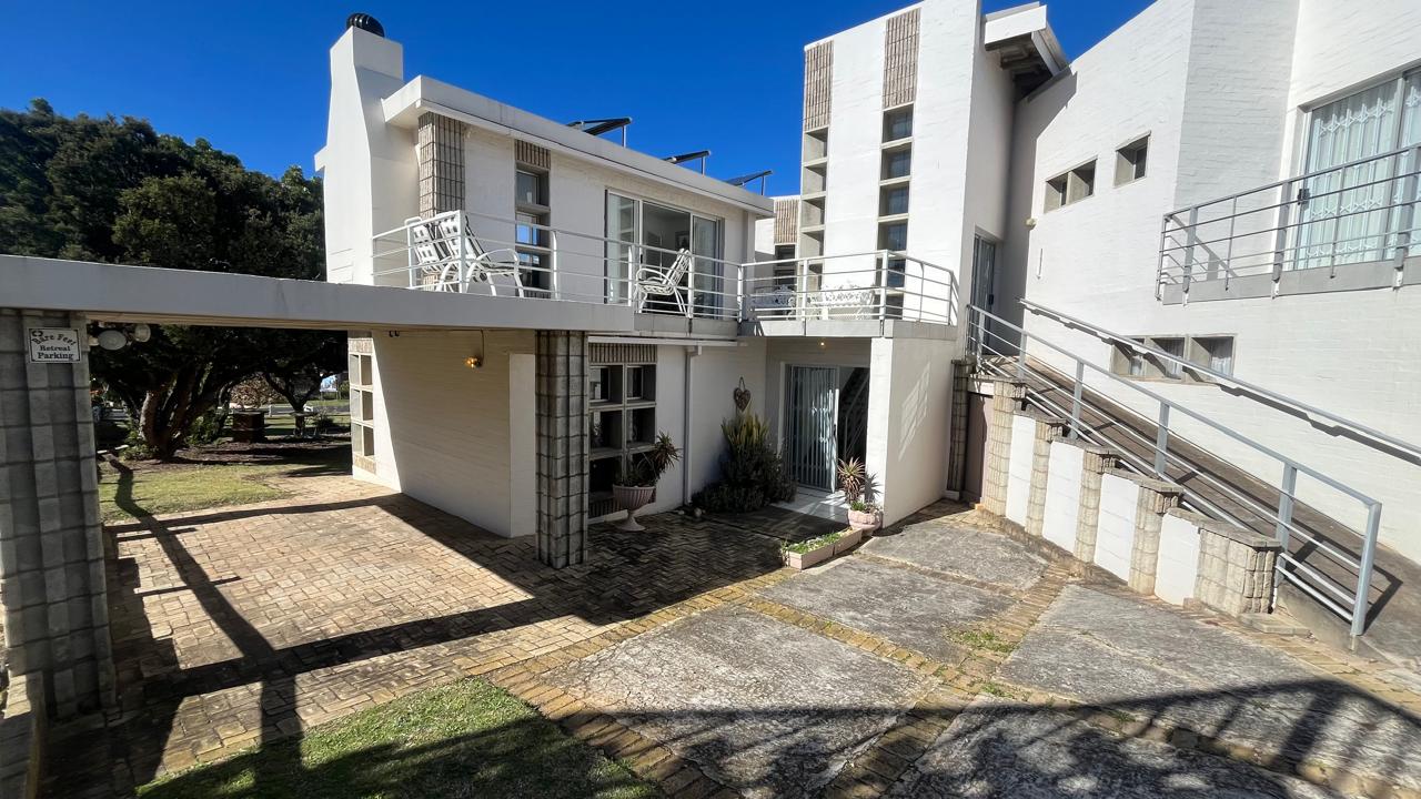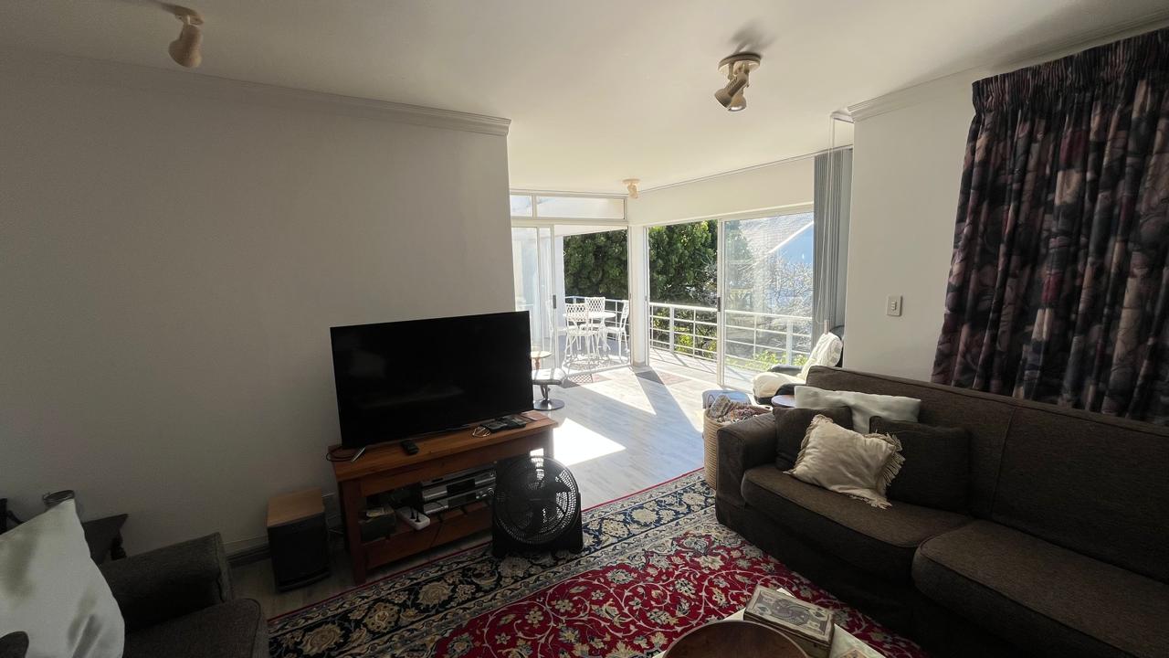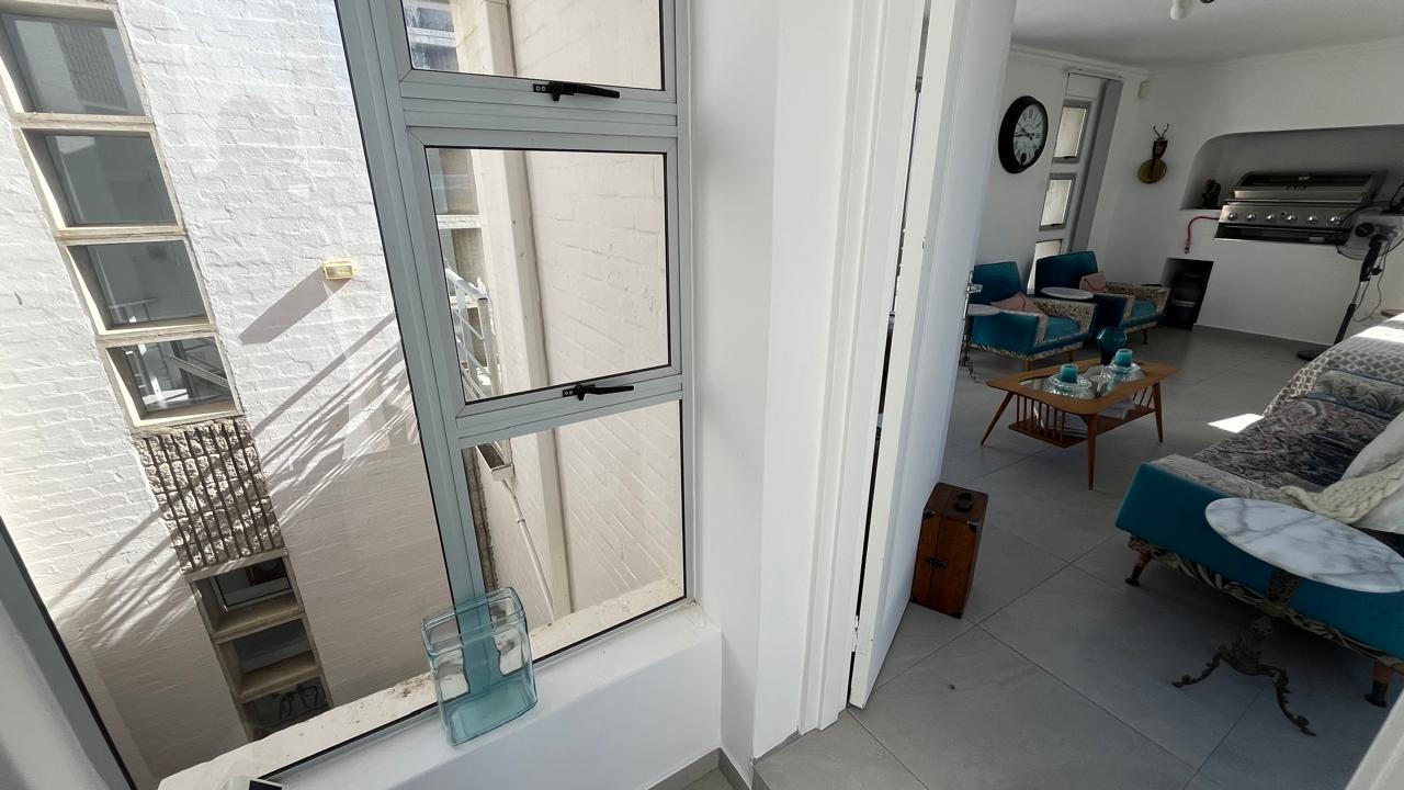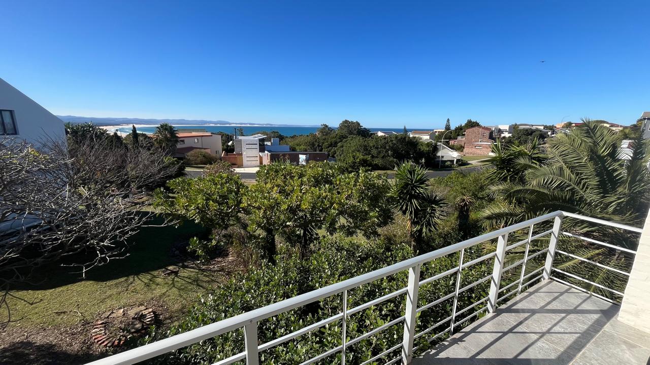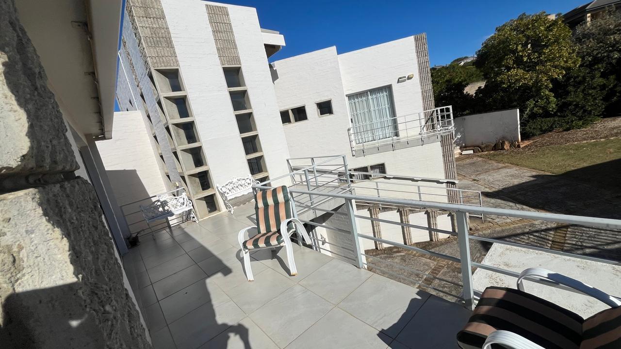 The dining room is fitted with air conditioning and laminate flooring, offering a comfortable space for meals and family gatherings. The adjacent braai room includes a built-in gas braai and opens through a sliding door to a balcony, perfect for entertaining. A second lounge on this level also features laminate flooring, a ceiling fan and light, and access to the balcony, which boasts scenic sea views.