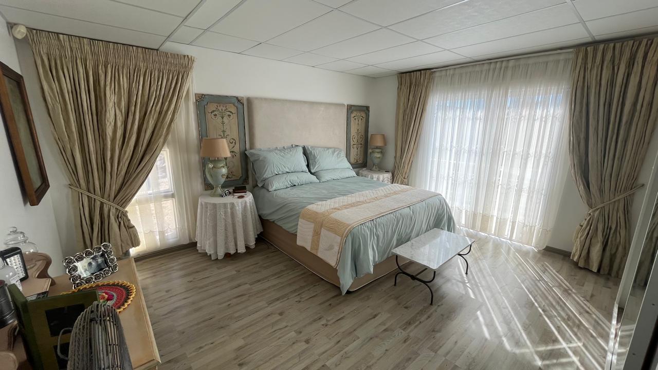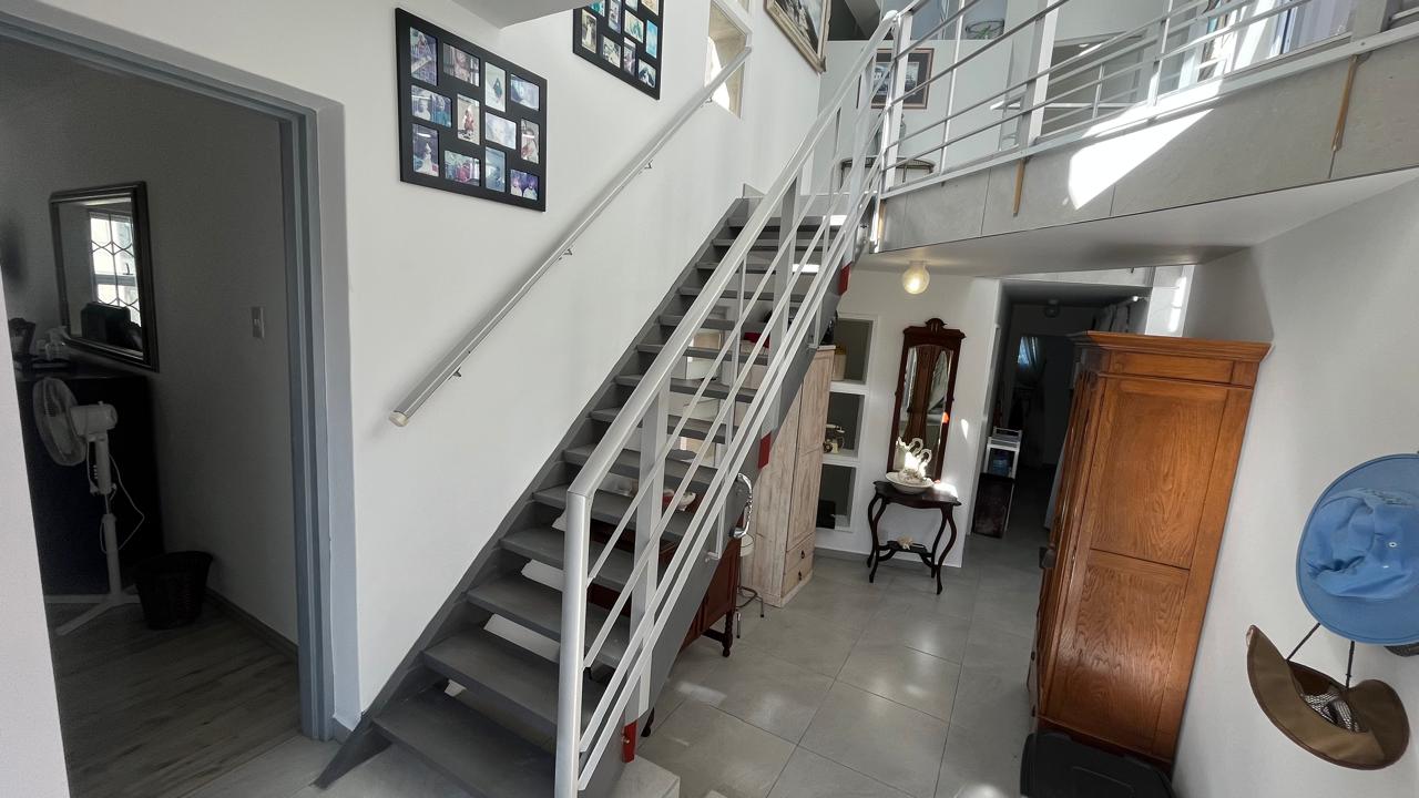 This spacious double-storey home combines comfort, practicality, and modern features, offering the perfect setting for extended family living or a dual-living setup. The property is equipped with a 5kVA UPS system and two 100Ah lithium batteries, ensuring uninterrupted power supply. Security is enhanced with an alarm system and outdoor beams, providing peace of mind. The exterior is neatly plastered and complemented by a well-maintained garden. A manual double garage and additional carport offer ample parking, while the asbestos roof provides a durable and cost-effective cover.