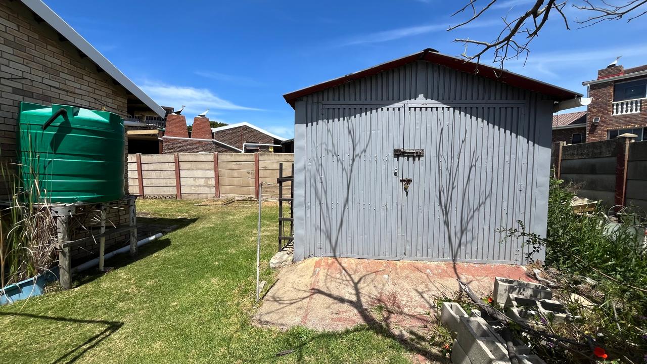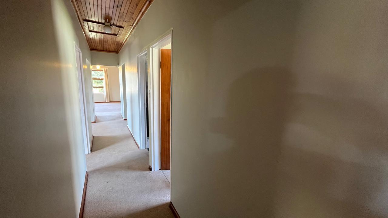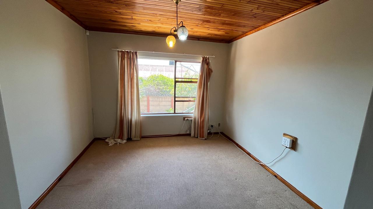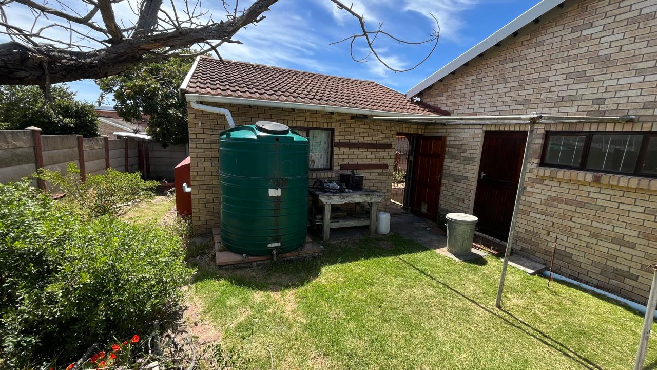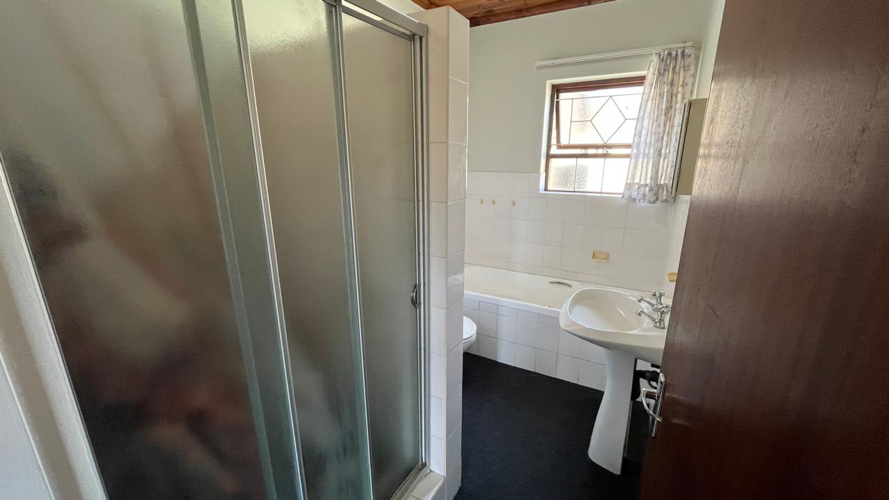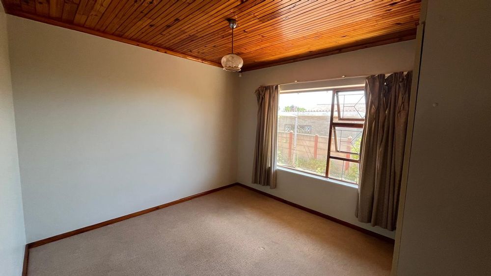 The property continues to impress outdoors with an inviting braai area perfectly positioned for relaxed gatherings. The double garage is fitted with an automated door, and the yard is fully enclosed, offering secure space for pets and children. A 2,500L water tank, supported by additional tanks, ensures practical water storage. There is also a Wendy house, not included on the plans, that provides extra storage for tools or garden equipment. The home is fitted with an alarm system for added peace of mind and features knotty pine ceilings, wooden window frames and comfortable carpeting throughout.