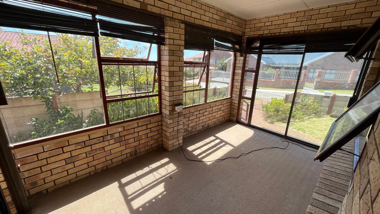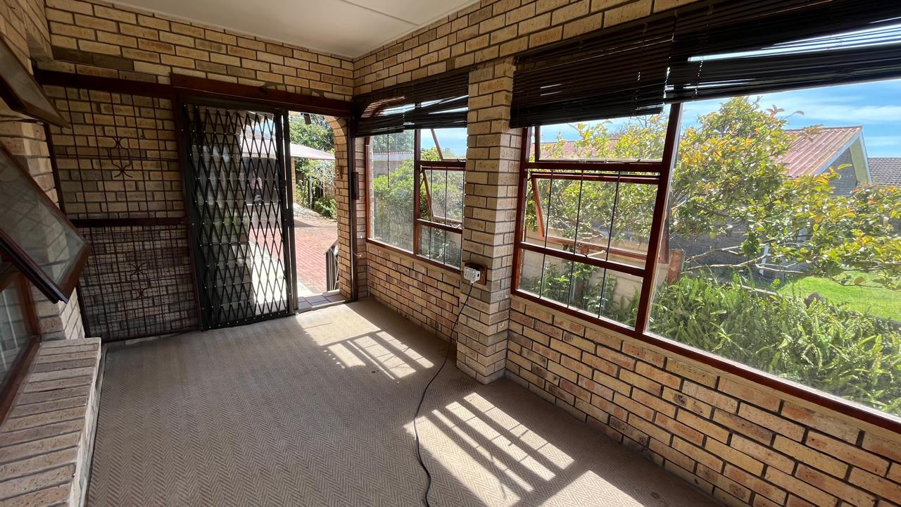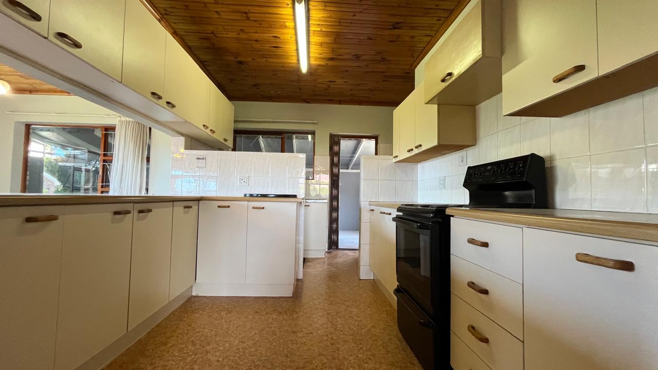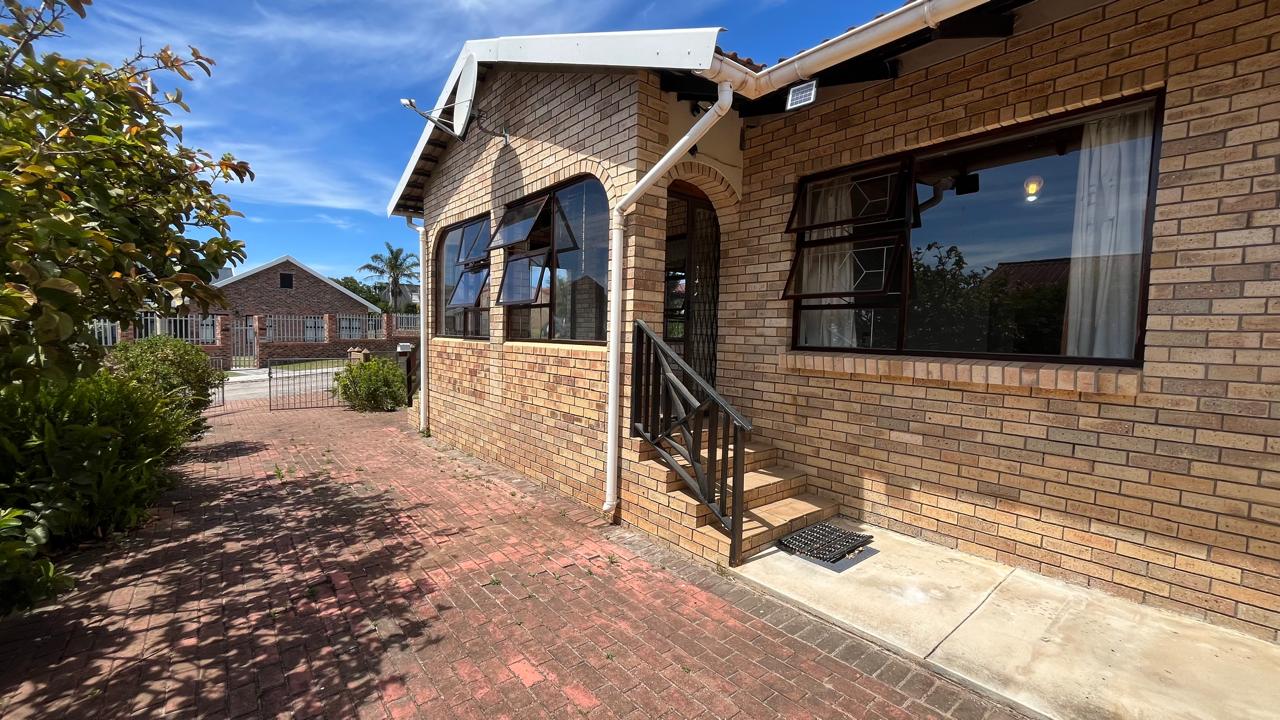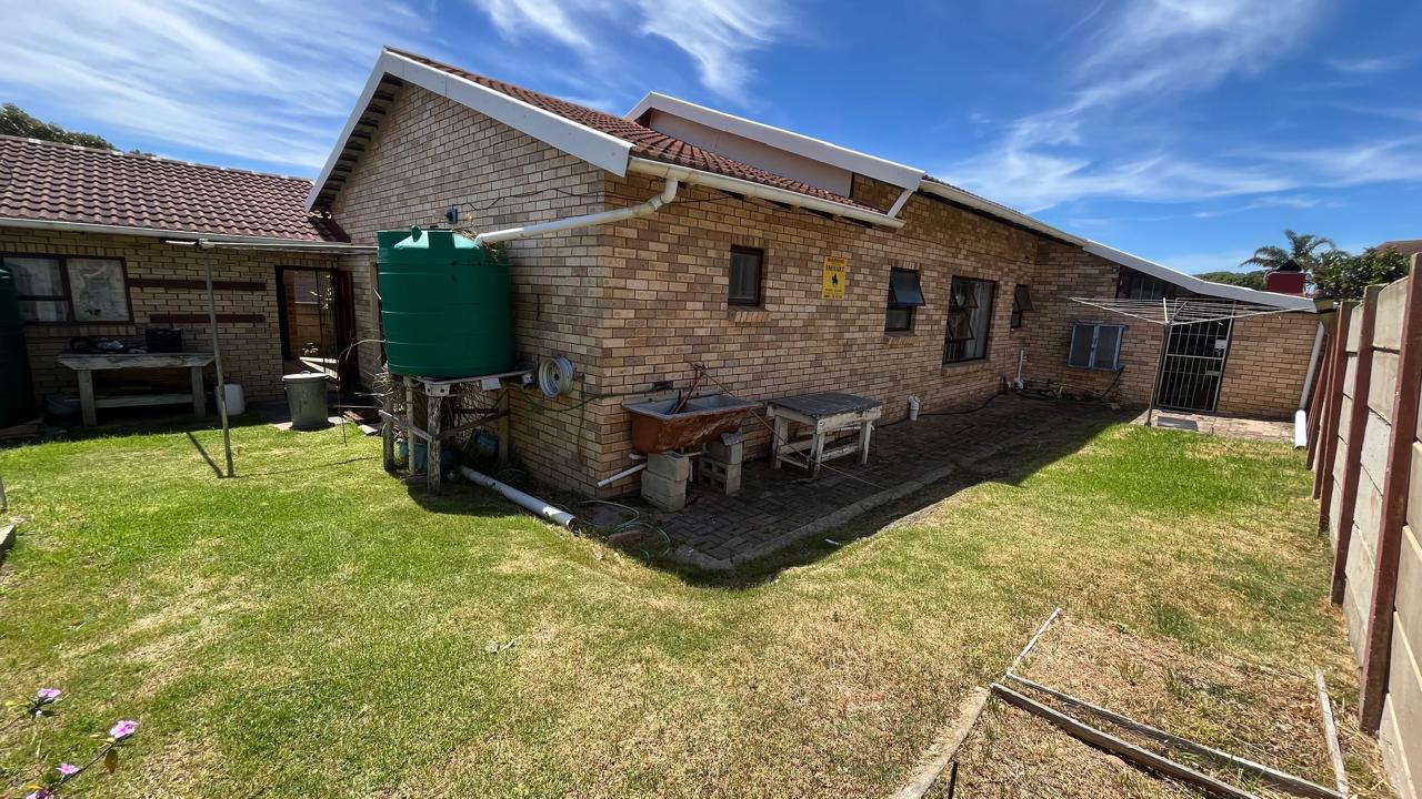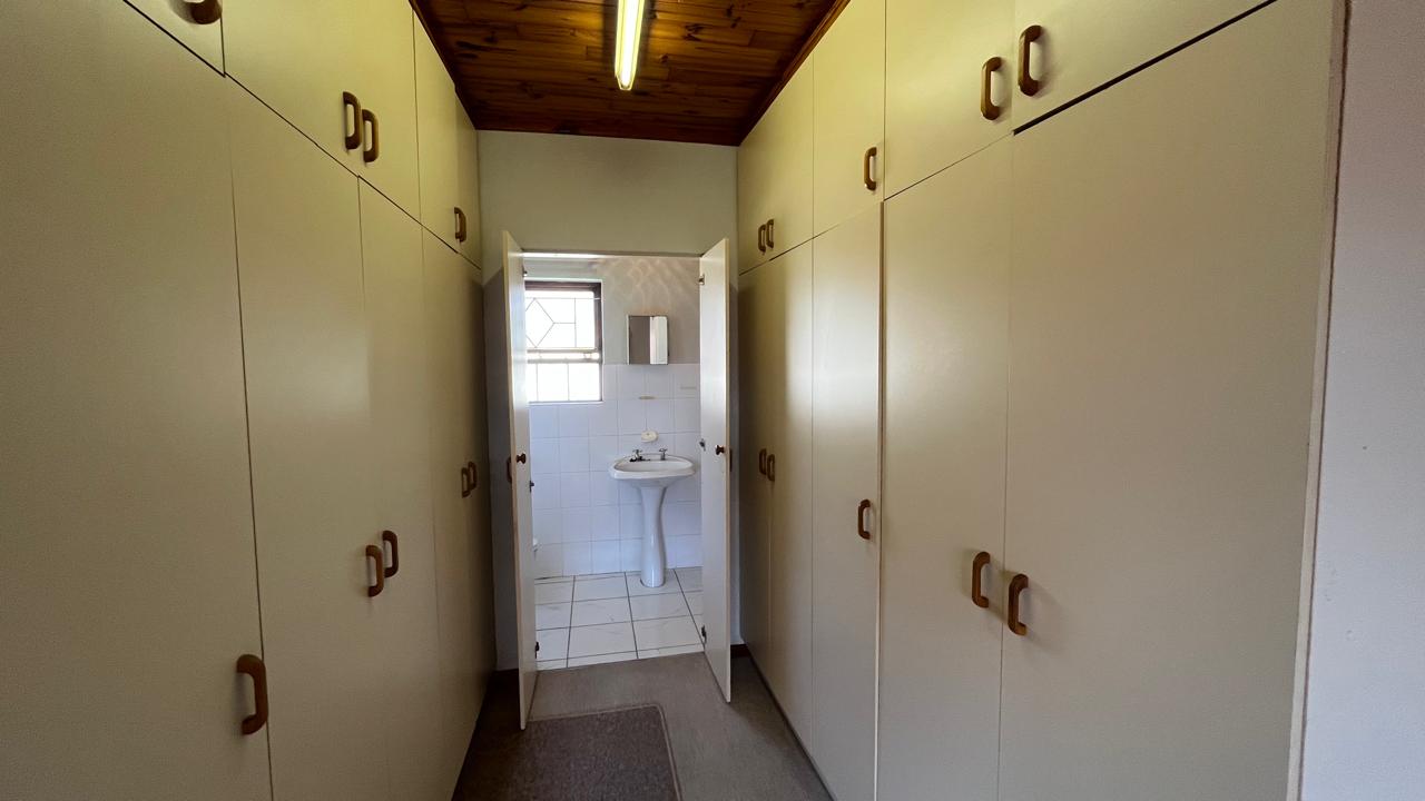 The property continues to impress outdoors with an inviting braai area perfectly positioned for relaxed gatherings. The double garage is fitted with an automated door, and the yard is fully enclosed, offering secure space for pets and children. A 2,500L water tank, supported by additional tanks, ensures practical water storage. There is also a Wendy house, not included on the plans, that provides extra storage for tools or garden equipment. The home is fitted with an alarm system for added peace of mind and features knotty pine ceilings, wooden window frames and comfortable carpeting throughout.