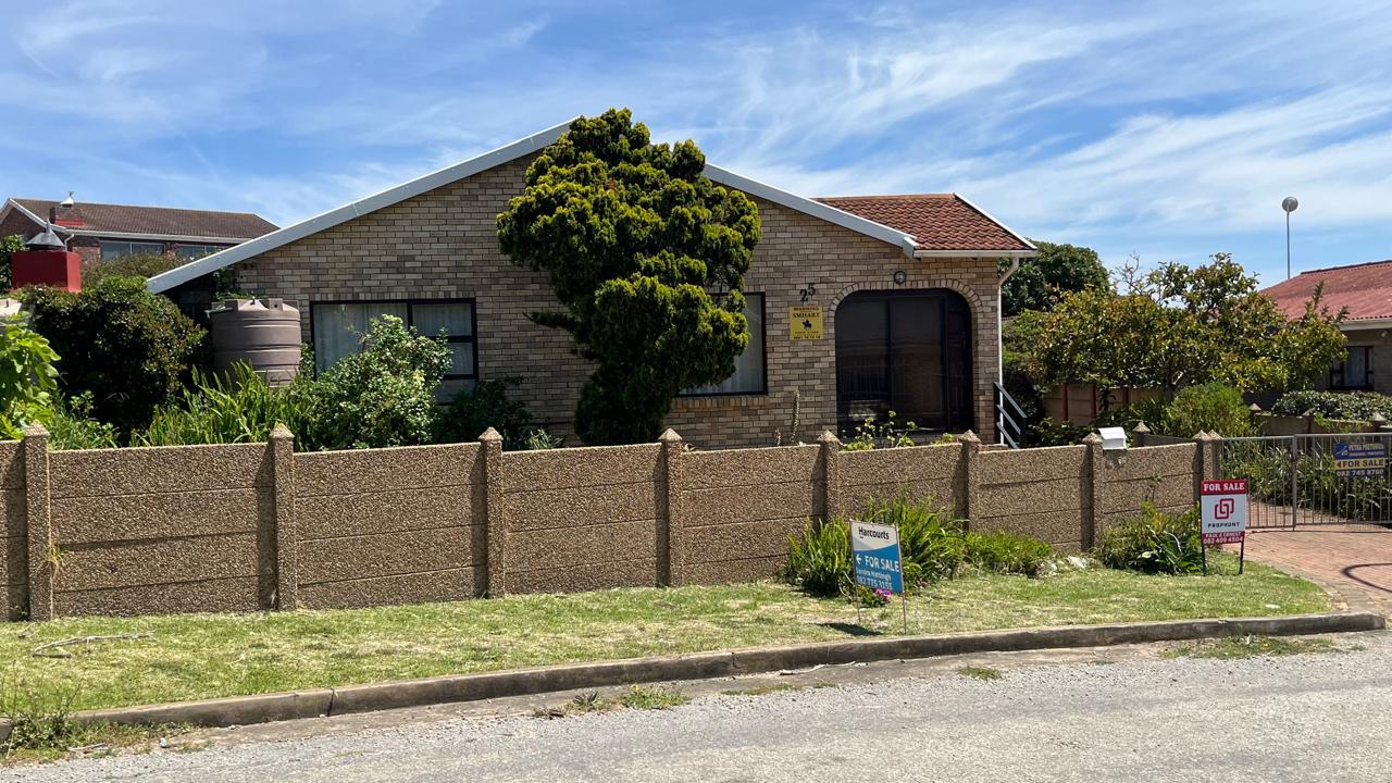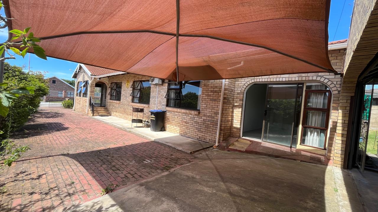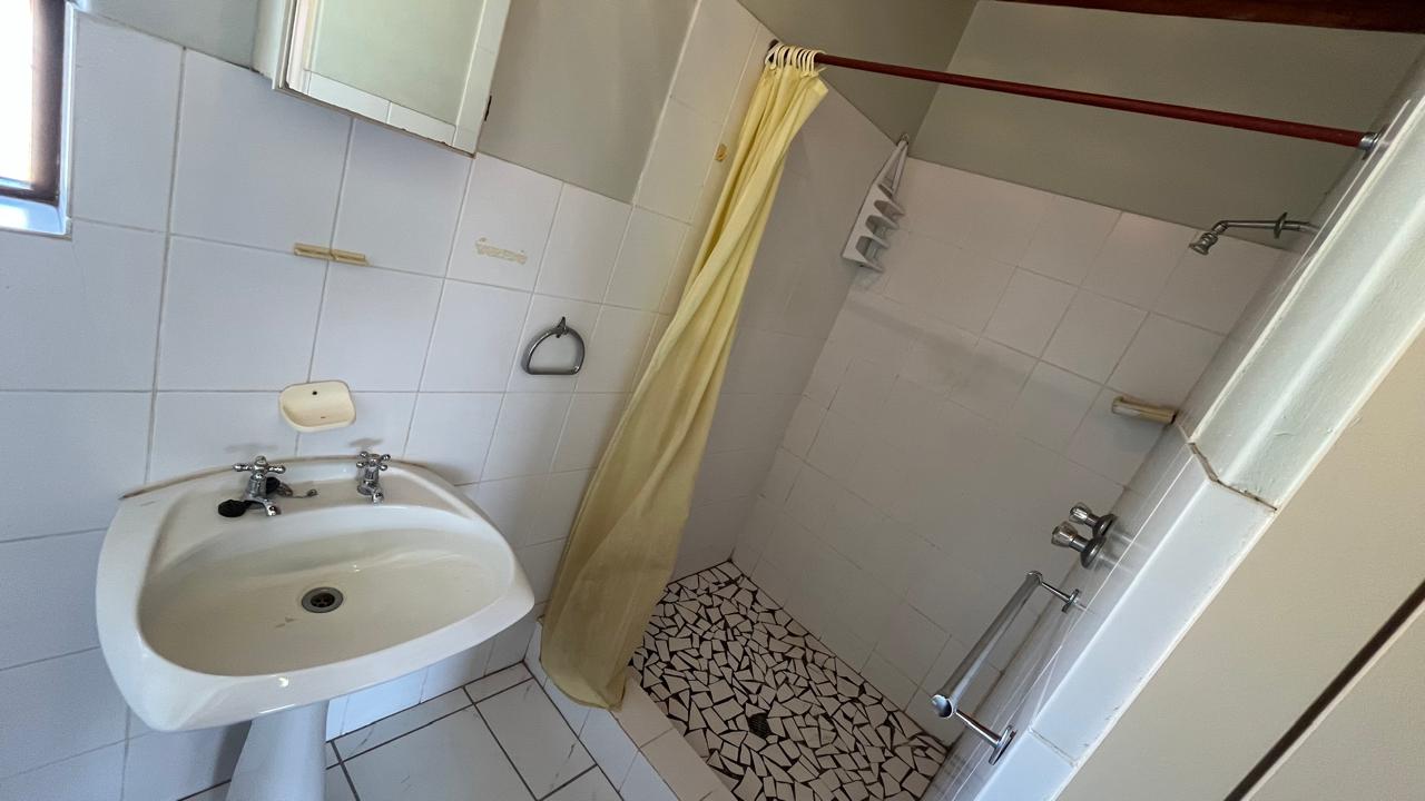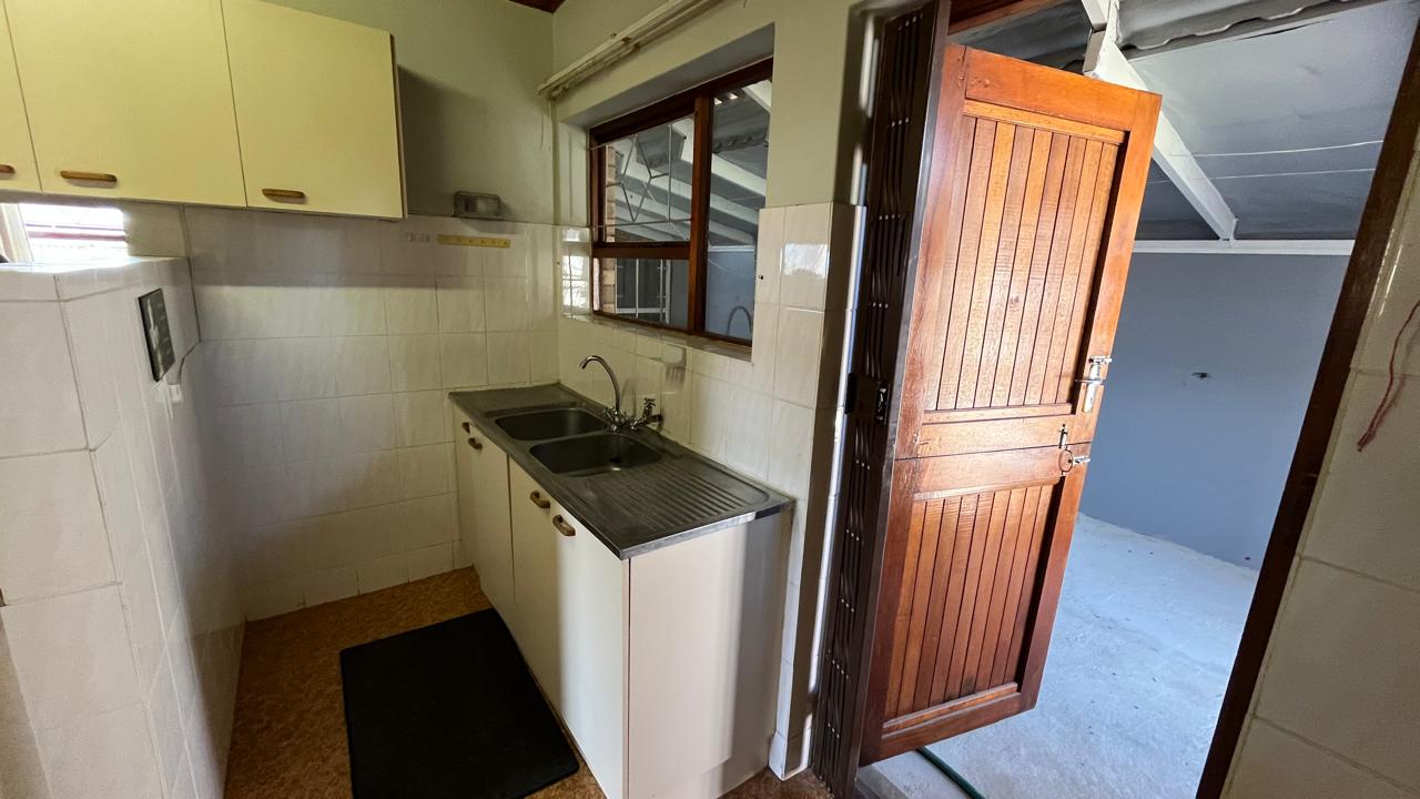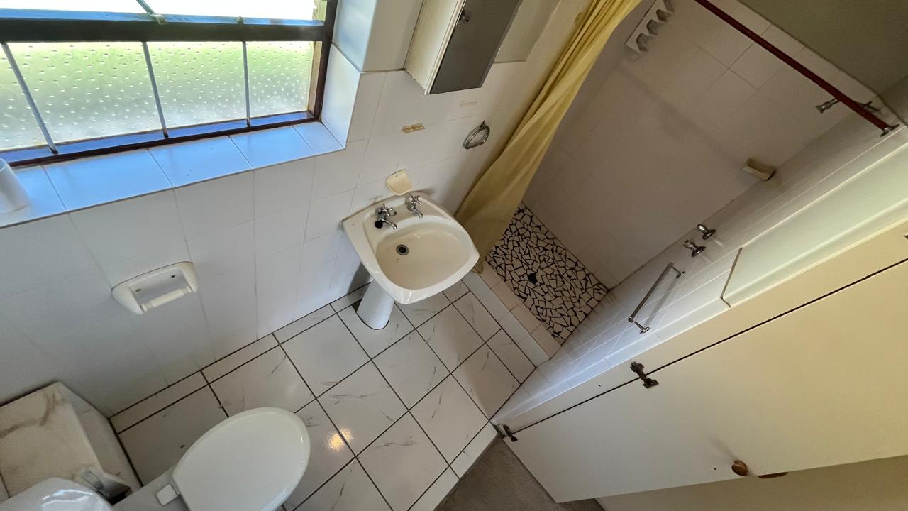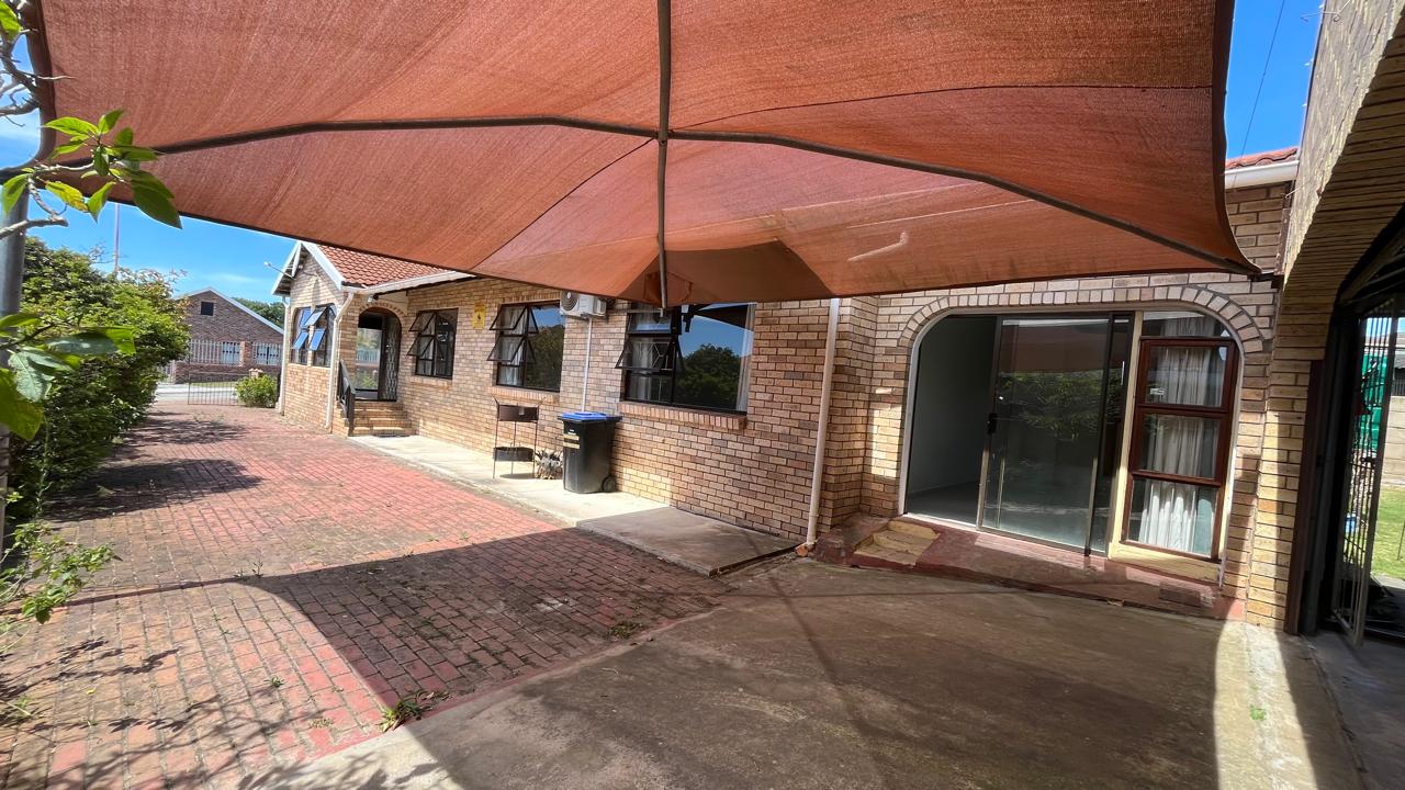 The property continues to impress outdoors with an inviting braai area perfectly positioned for relaxed gatherings. The double garage is fitted with an automated door, and the yard is fully enclosed, offering secure space for pets and children. A 2,500L water tank, supported by additional tanks, ensures practical water storage. There is also a Wendy house, not included on the plans, that provides extra storage for tools or garden equipment. The home is fitted with an alarm system for added peace of mind and features knotty pine ceilings, wooden window frames and comfortable carpeting throughout.