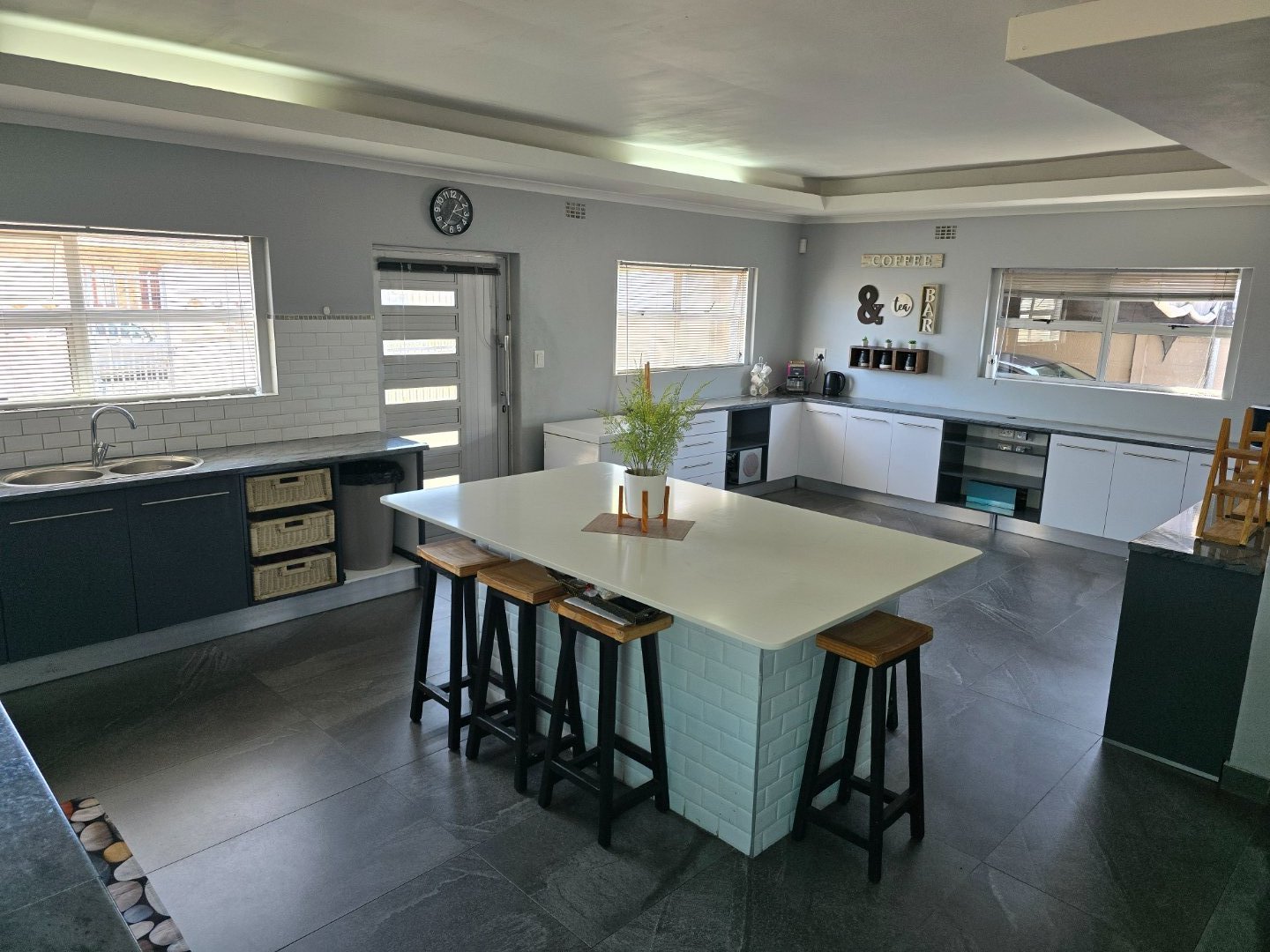 The exceptionally large, modern kitchen is a key feature of the home. Beautifully finished and fully fitted, it offers ample cupboard and counter space, a centre island perfect for family breakfasts or gatherings, a double eye-level oven, gas stove, and extractor fan. Its generous layout makes it ideal for large family events and entertaining.