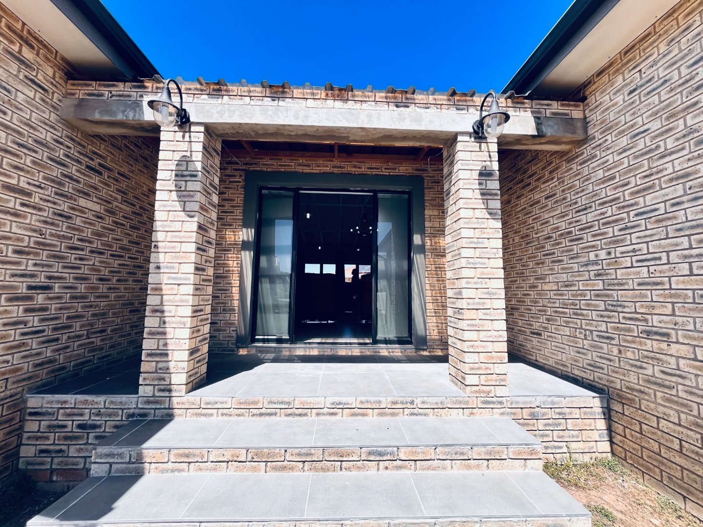 The home welcomes you with a light-filled open-plan layout where the lounge, dining, and entertainment areas flow effortlessly into a modern kitchen — ideal for both everyday living and relaxed entertaining. Exposed rafters enhance the sense of space, while stacker doors open onto a balcony with sweeping views toward Kabeljauws Beach and the rolling breakers.