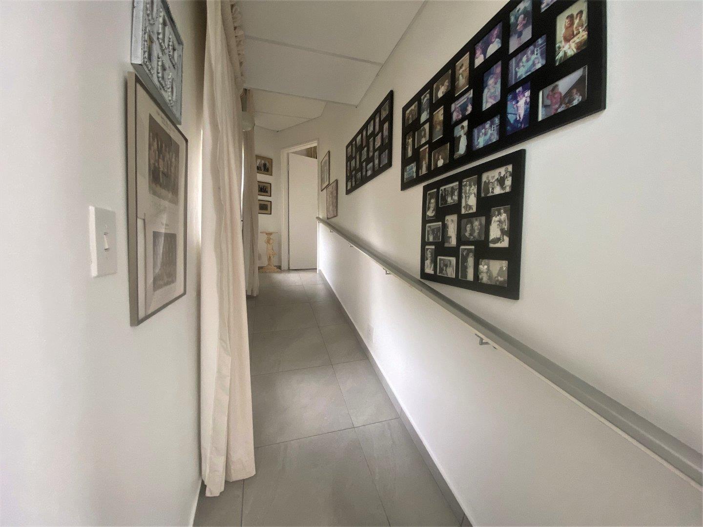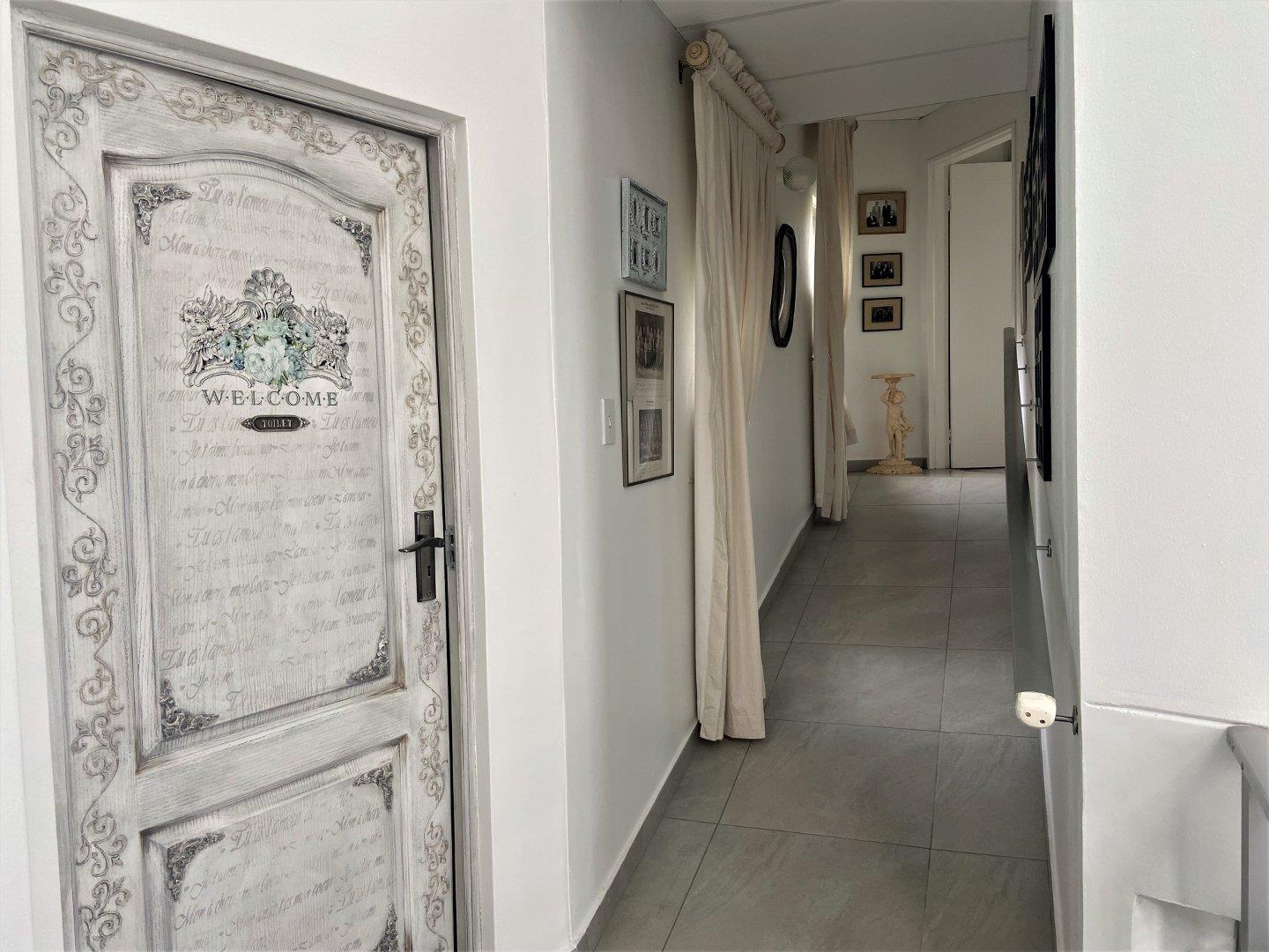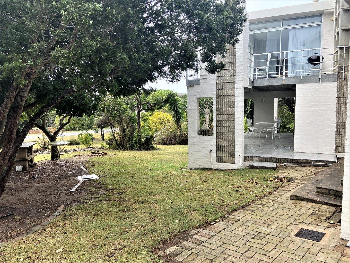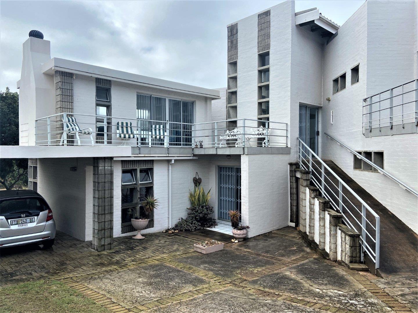 Downstairs, two additional bedrooms, one with its own entrance for potential Airbnb income, and a versatile flatlet await. The property offers a double garage, carport, a beautifully landscaped garden with an outside braai area, and essential security features. An excellent coastal living opportunity.