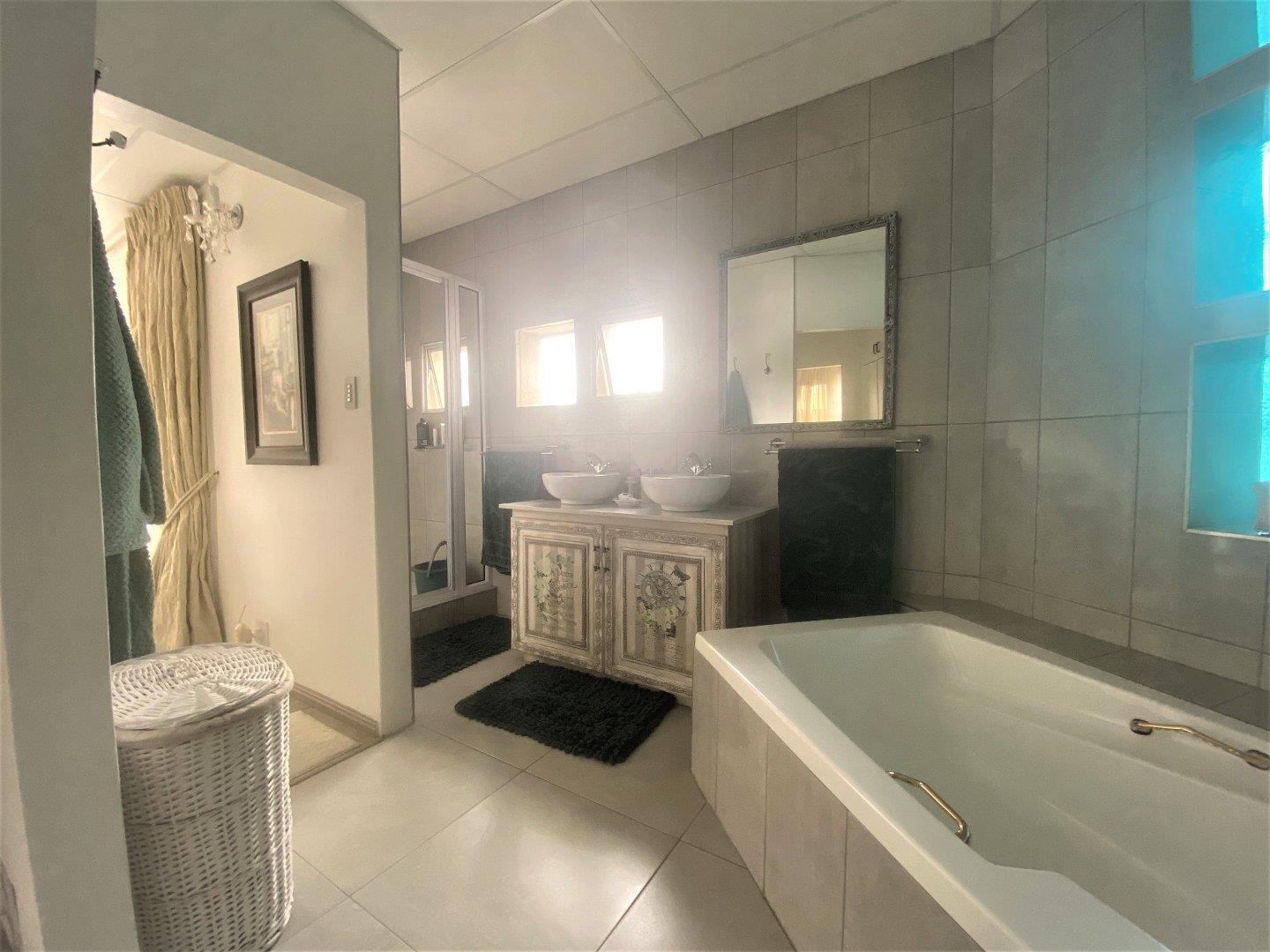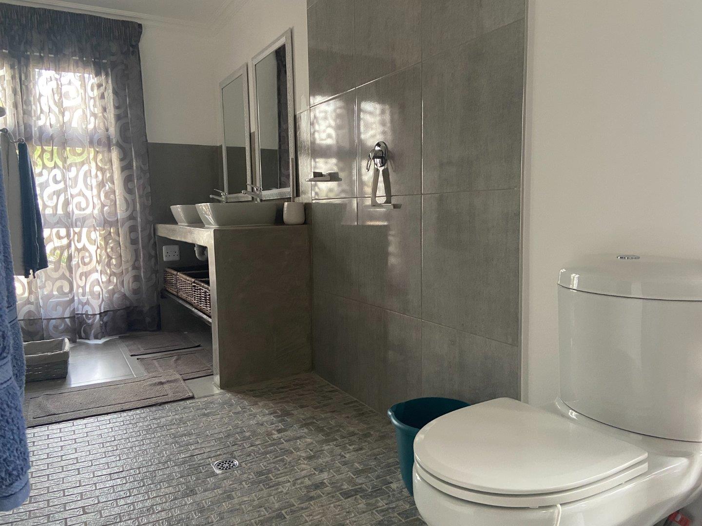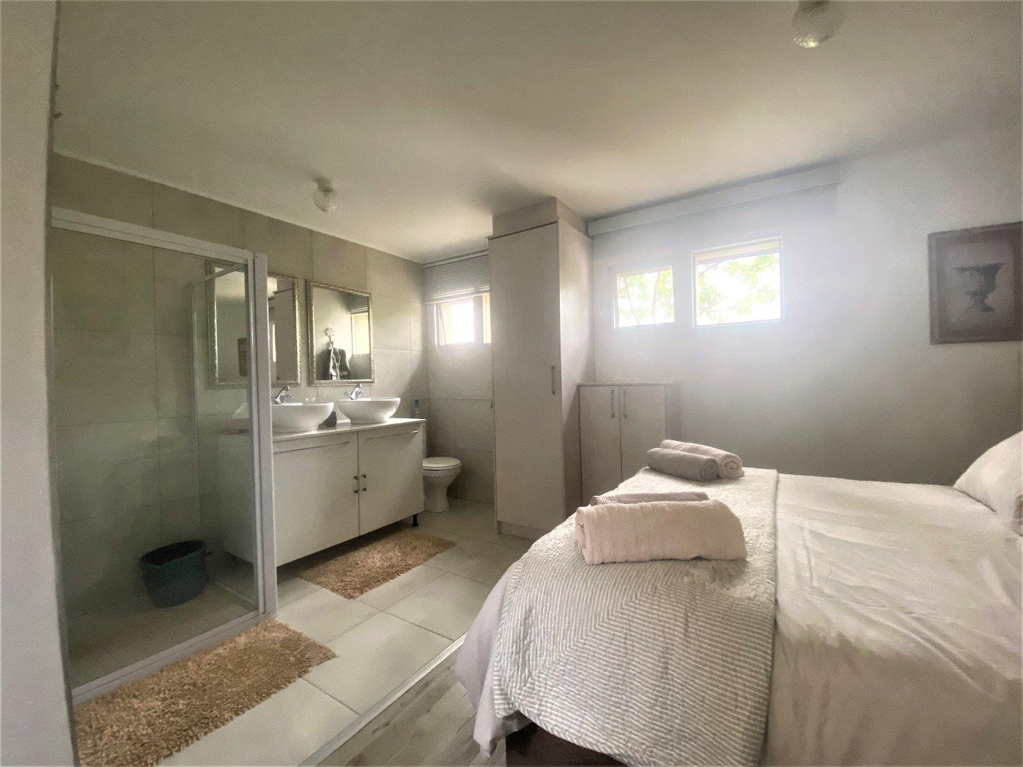 This stunning 3-bedroom double-story home in the sought-after Wave Crest neighborhood. The upper level features an open-plan kitchen, dining room, and a separate lounge with a built-in gas braai and balcony boasting endless sea views. The master bedroom with a luxurious en-suite bathroom is also on this level.
