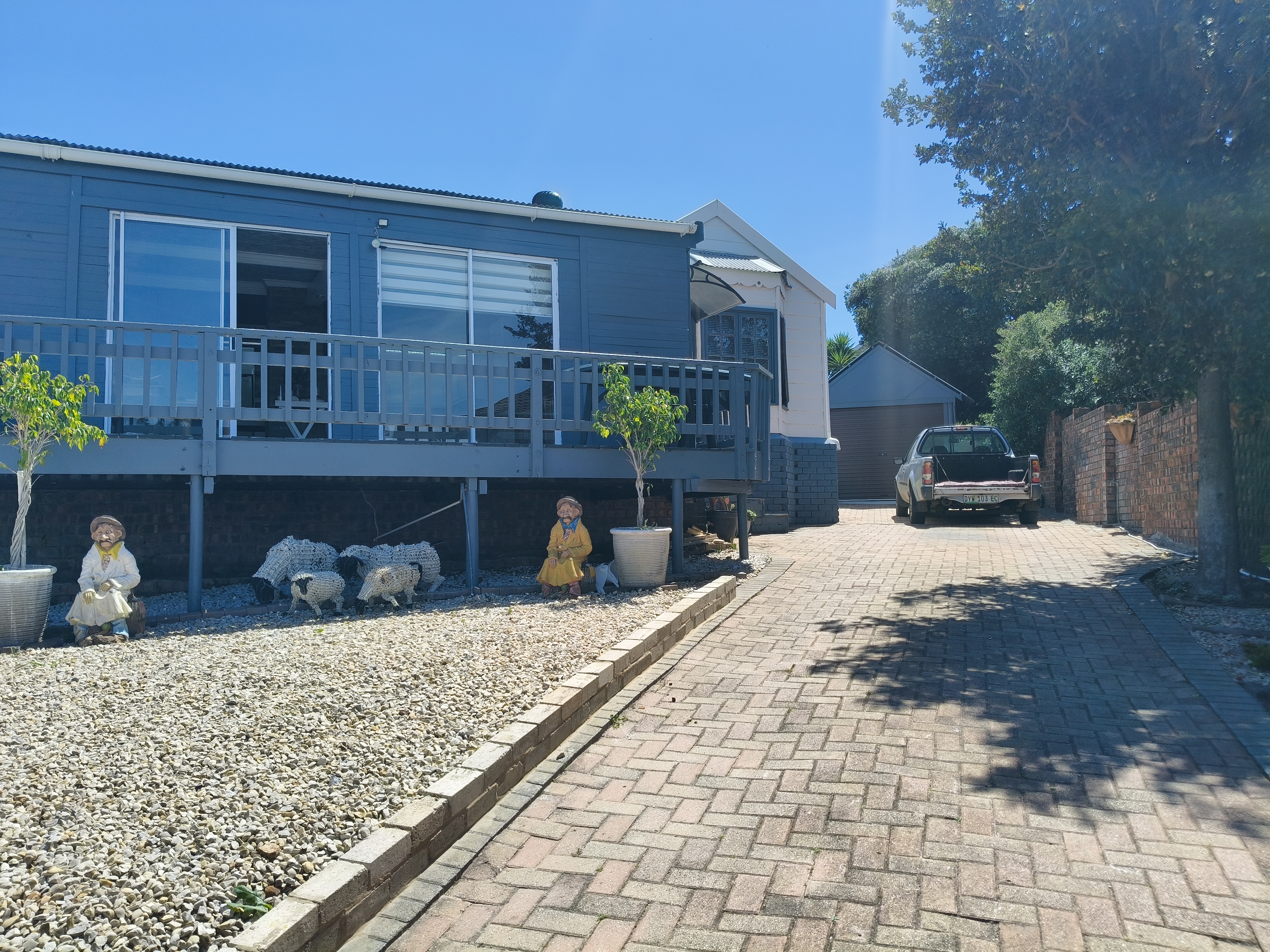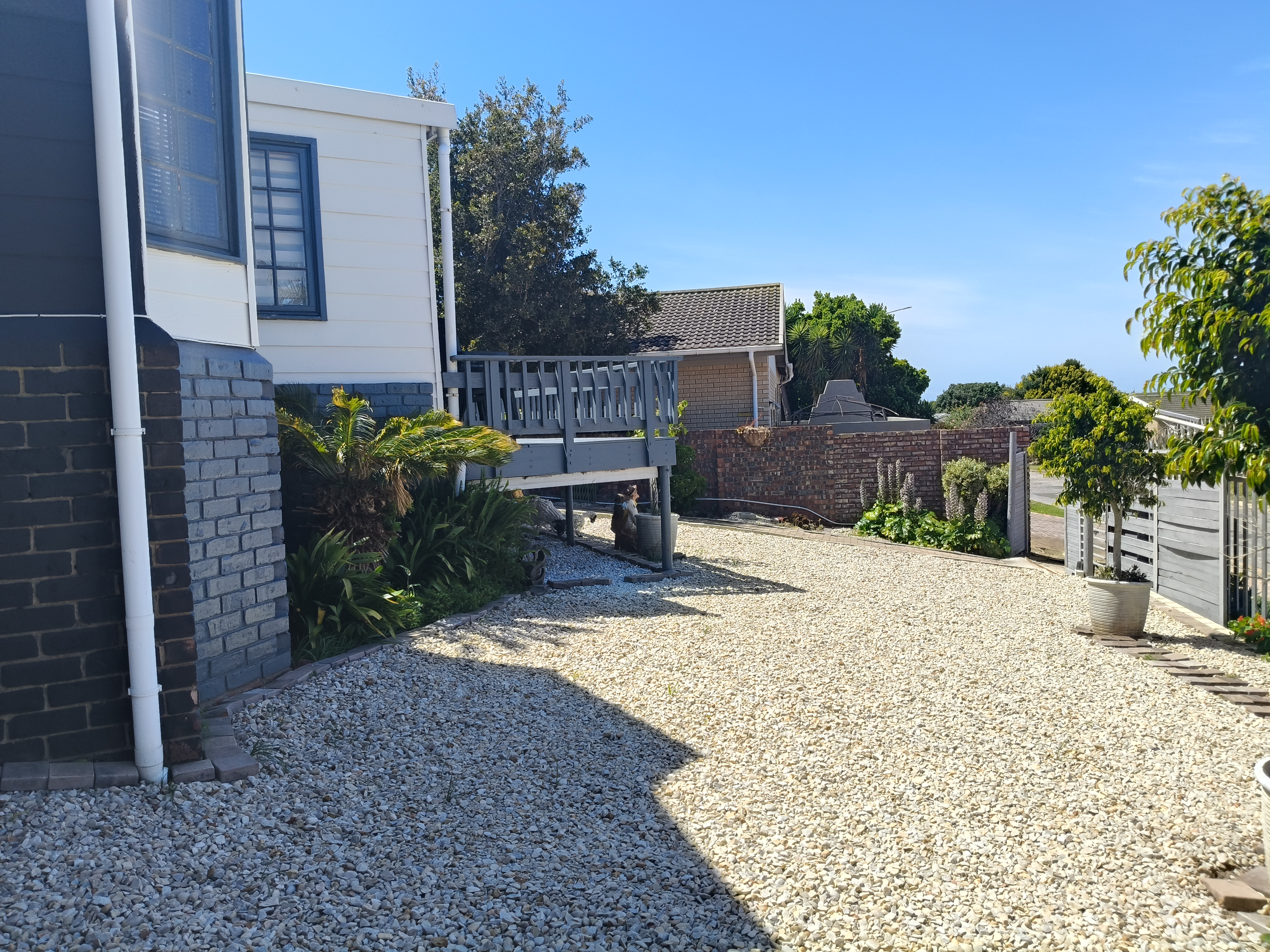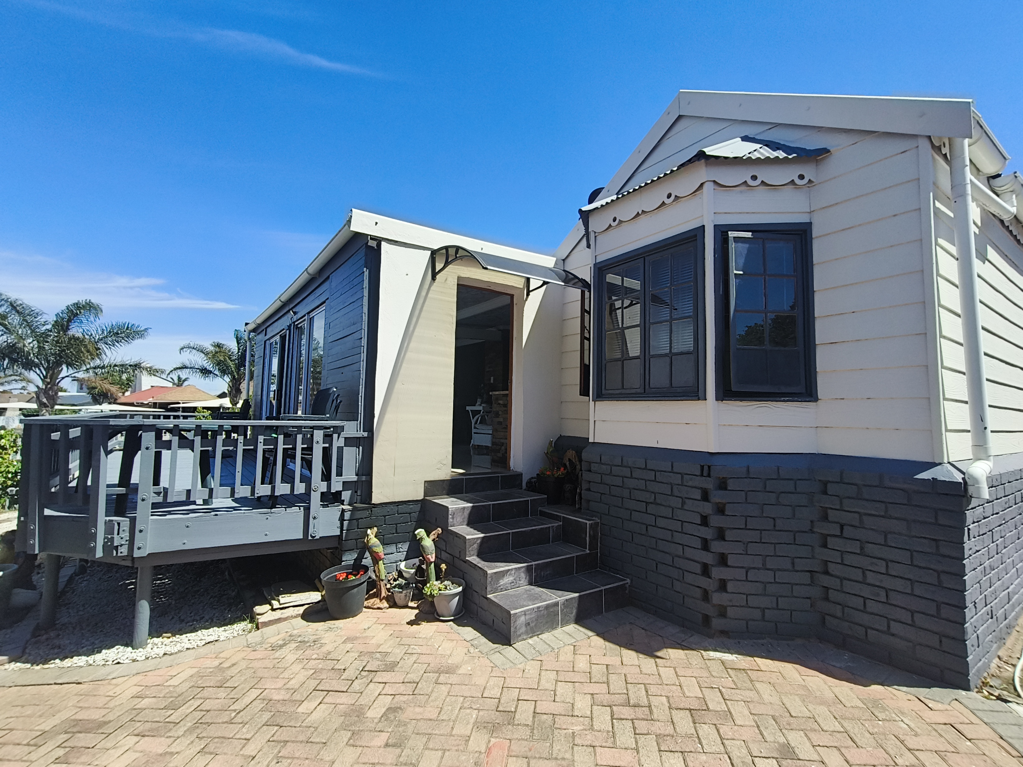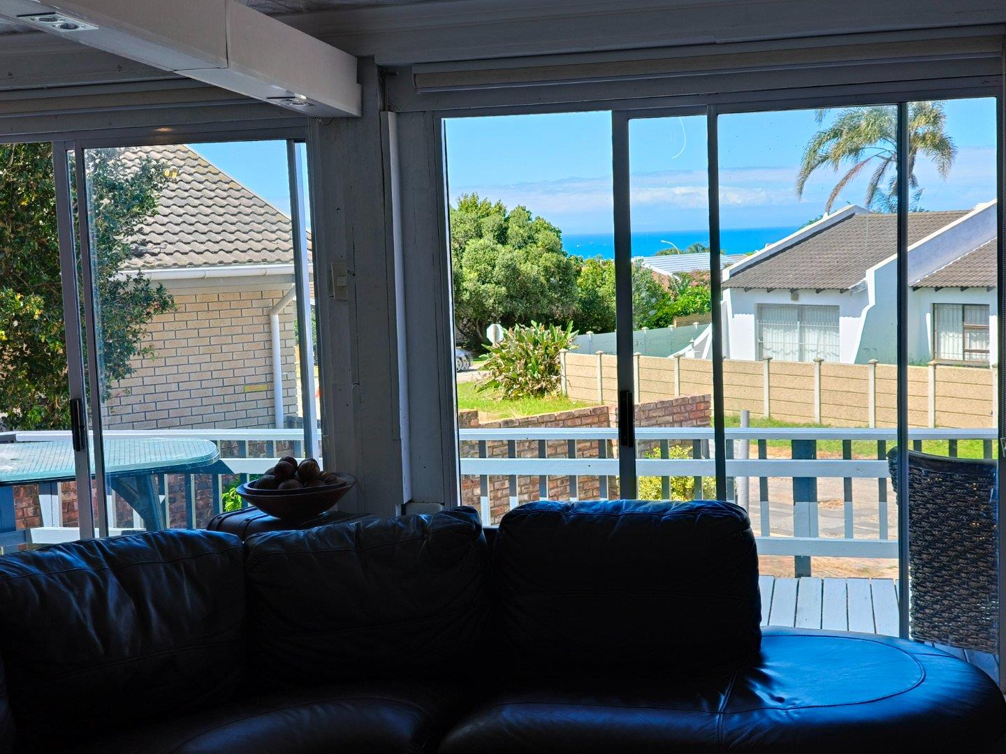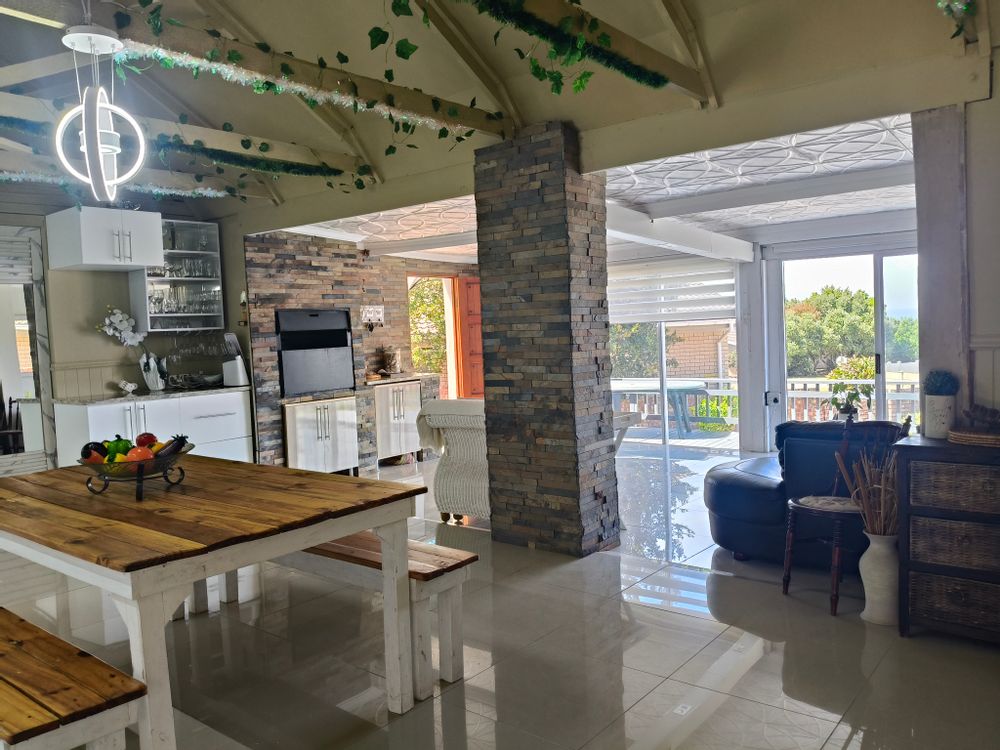 This unique home offers a delightful surprise as you step through the front door. The modern open-plan living area features a beautiful kitchen with a built-in braai, perfect for entertaining. Enjoy sea views from the patio. To the right of the living area, you'll find two bedrooms sharing a family bathroom. To the left of the living area, the main bedroom with an en-suite bathroom and sea view offers a private retreat. A separate single garage for extra security and ease. Furniture available as an optional extra.