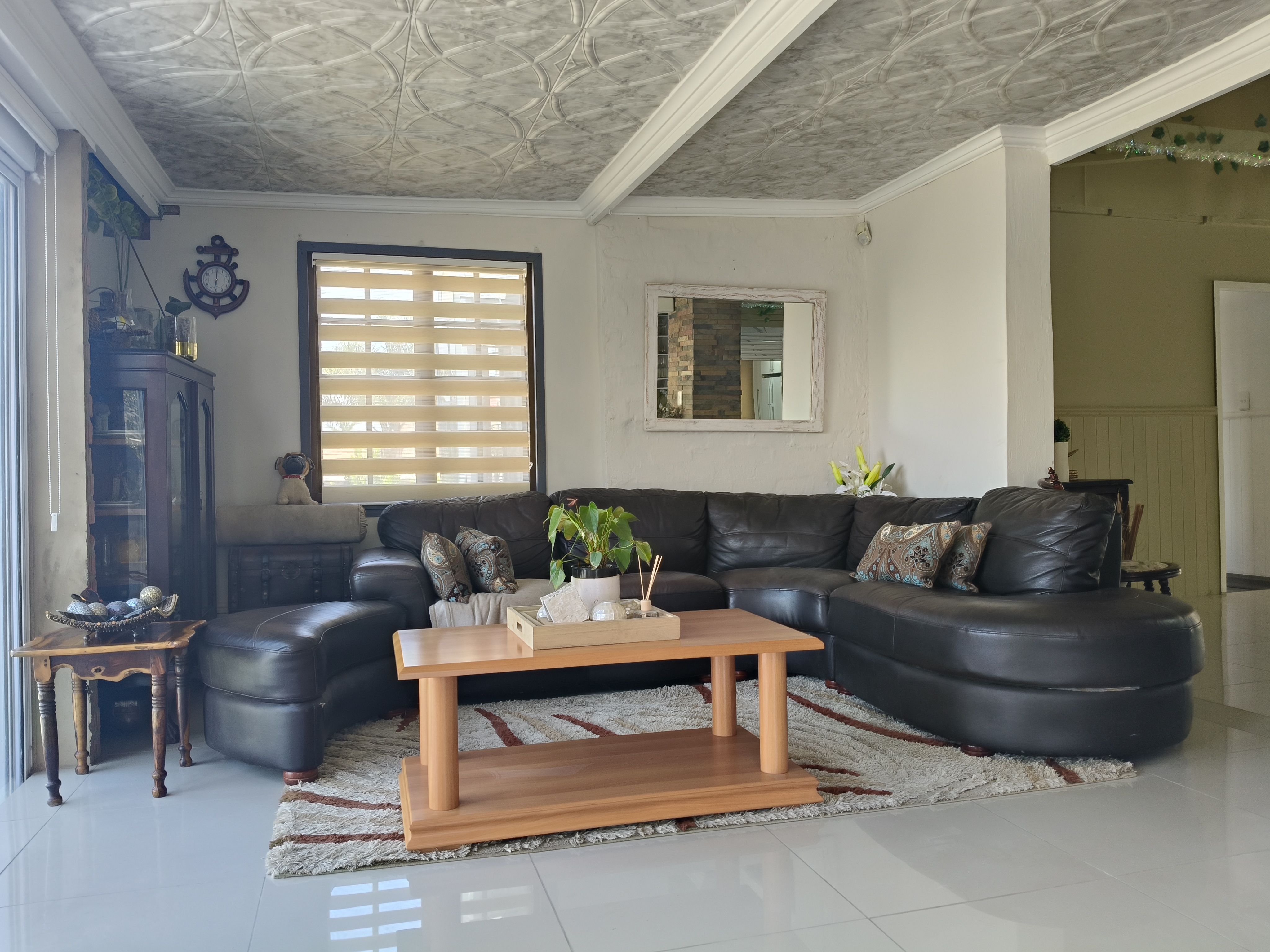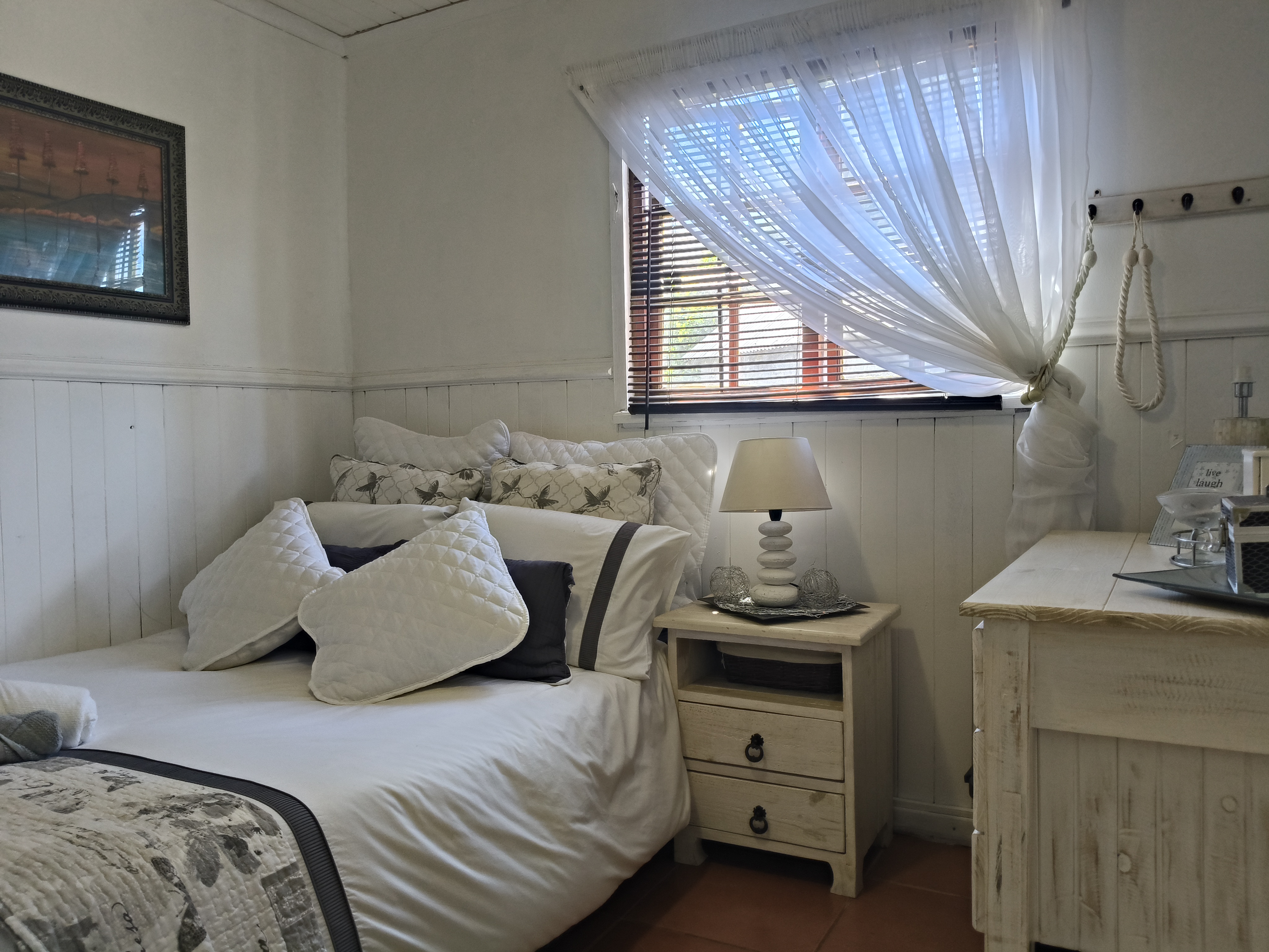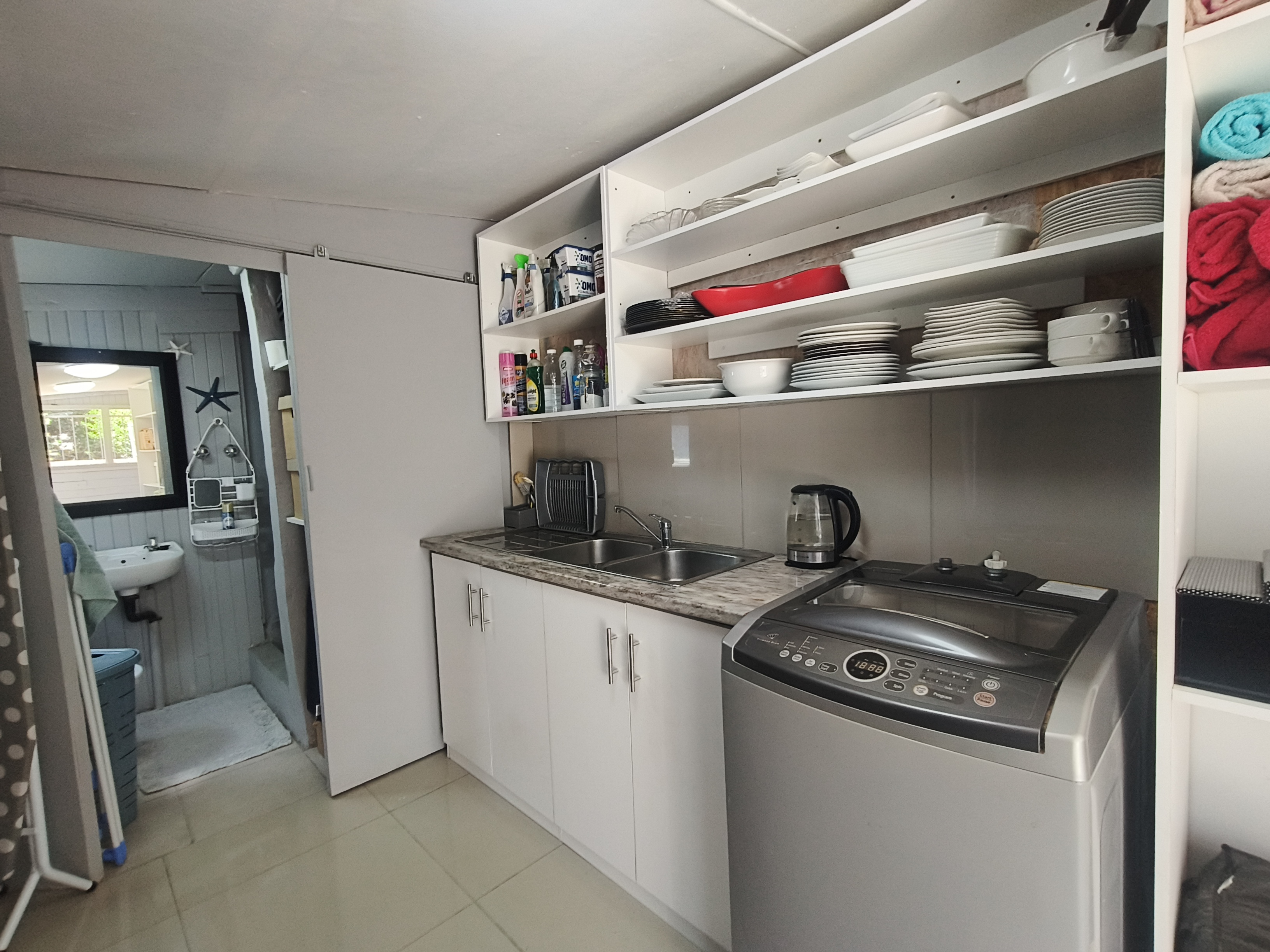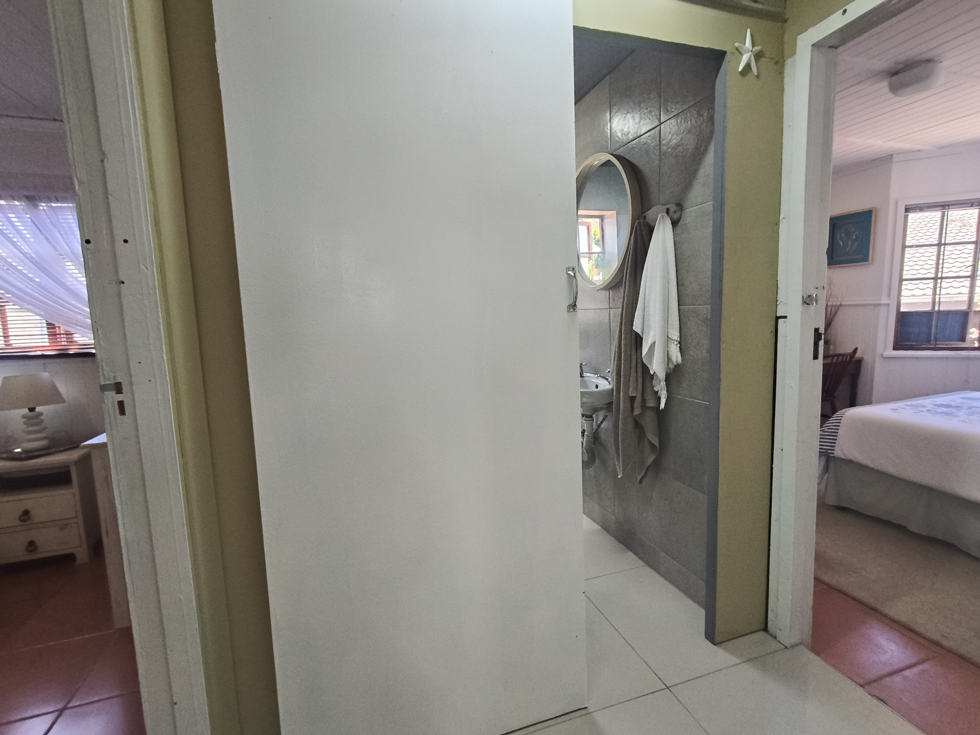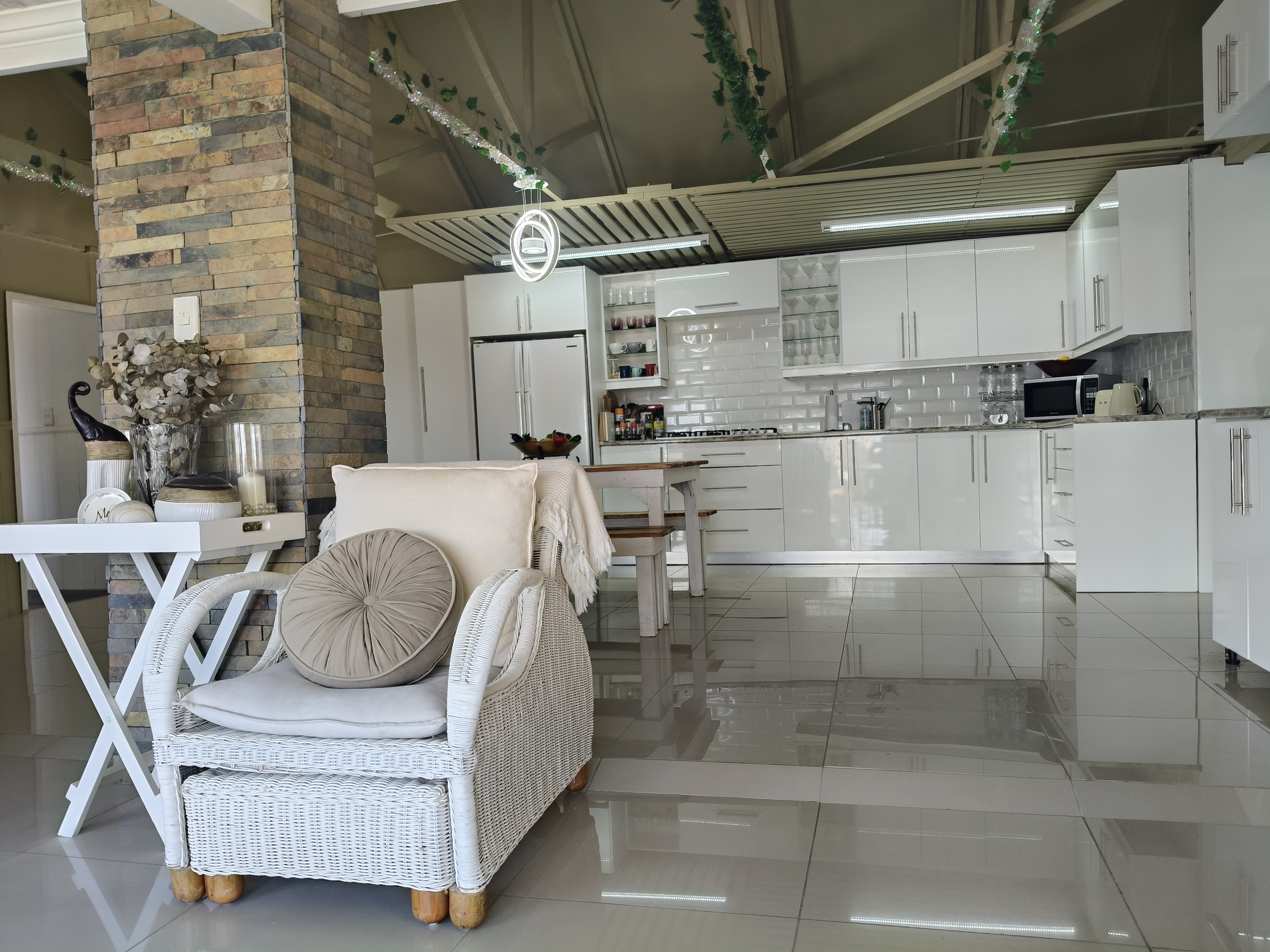This unique home offers a delightful surprise as you step through the front door. The modern open-plan living area features a beautiful kitchen with a built-in braai, perfect for entertaining. Enjoy sea views from the patio. To the right of the living area, you'll find two bedrooms sharing a family bathroom. To the left of the living area, the main bedroom with an en-suite bathroom and sea view offers a private retreat. A separate single garage for extra security and ease. Furniture available as an optional extra.