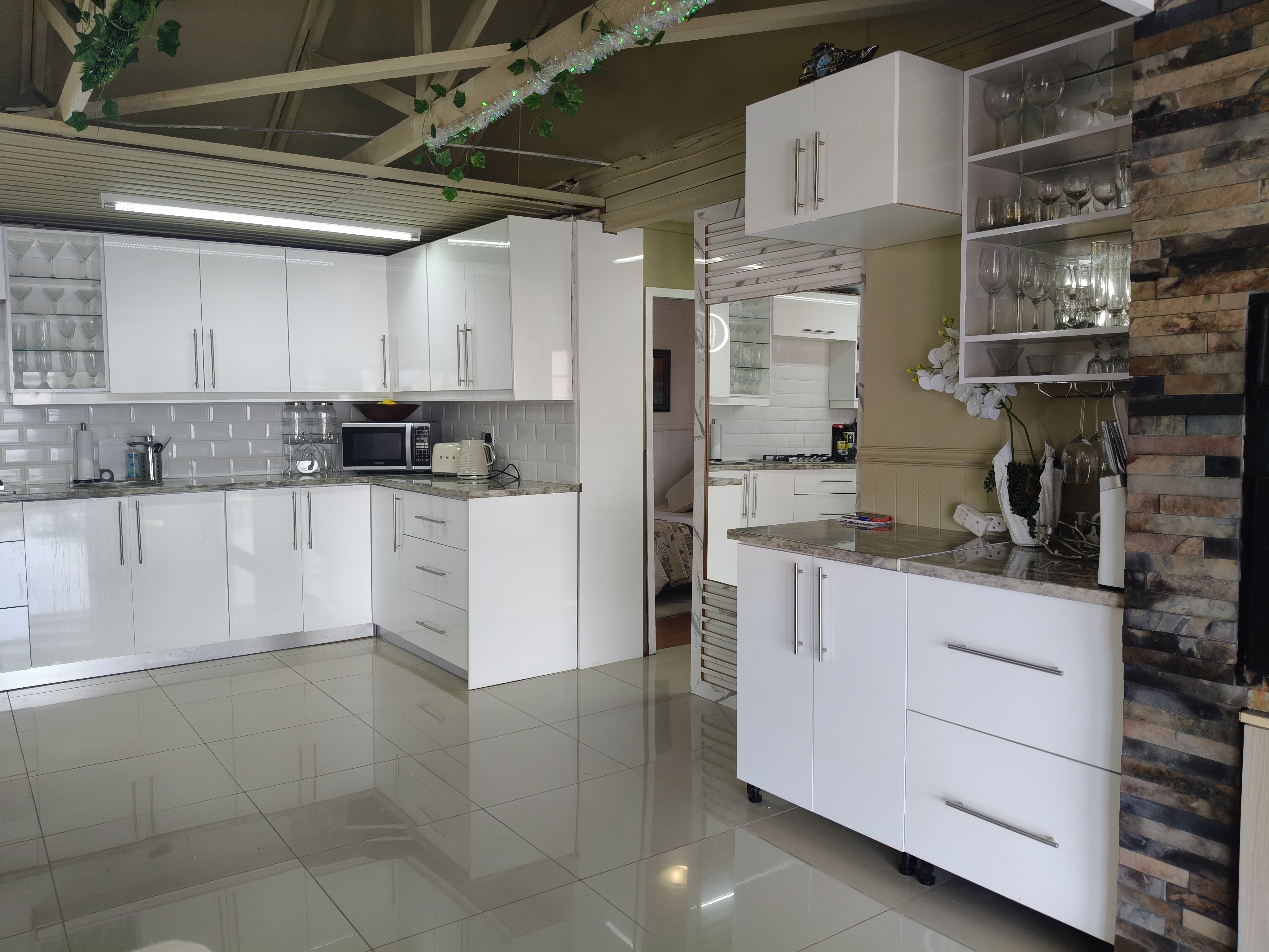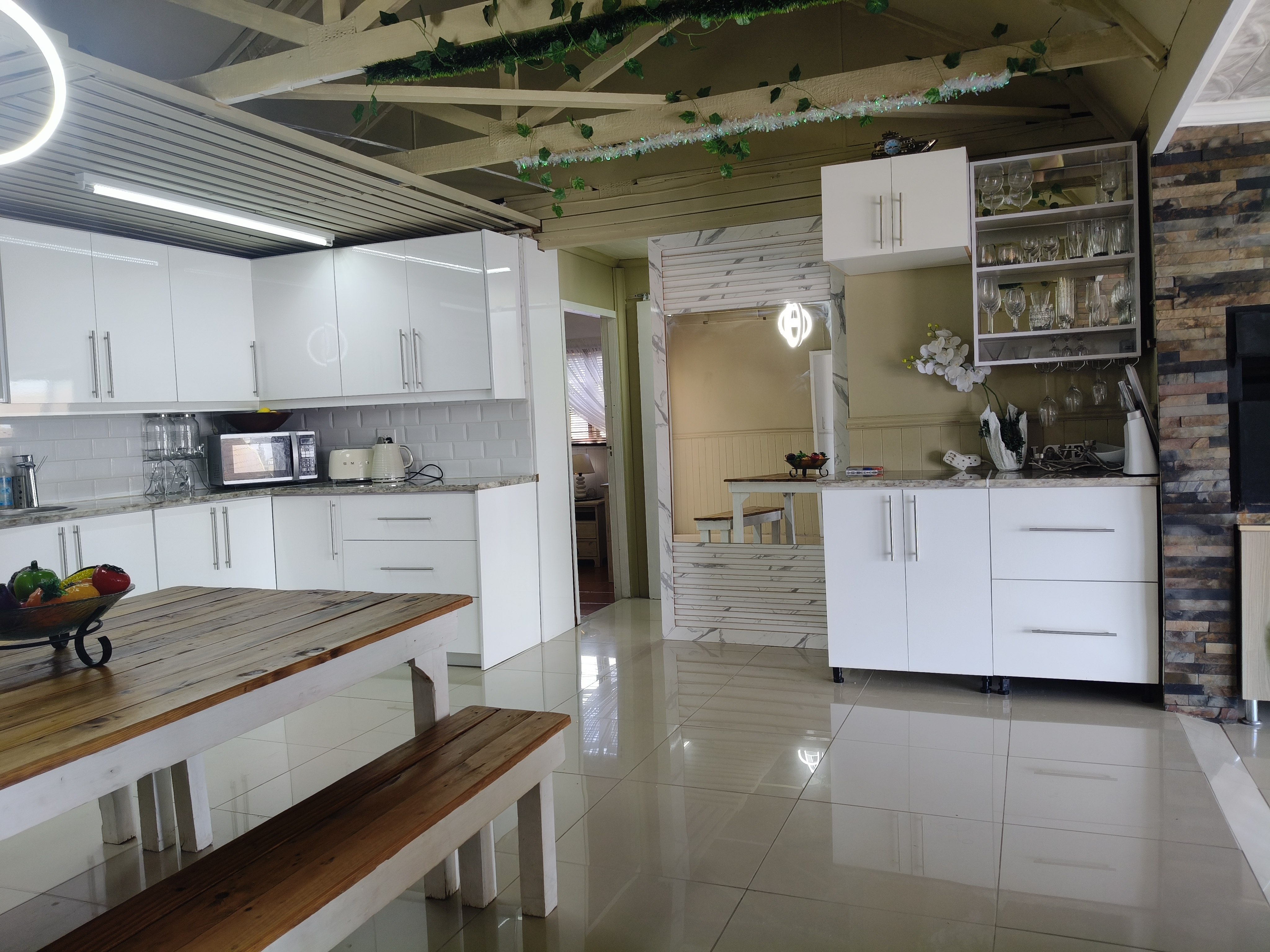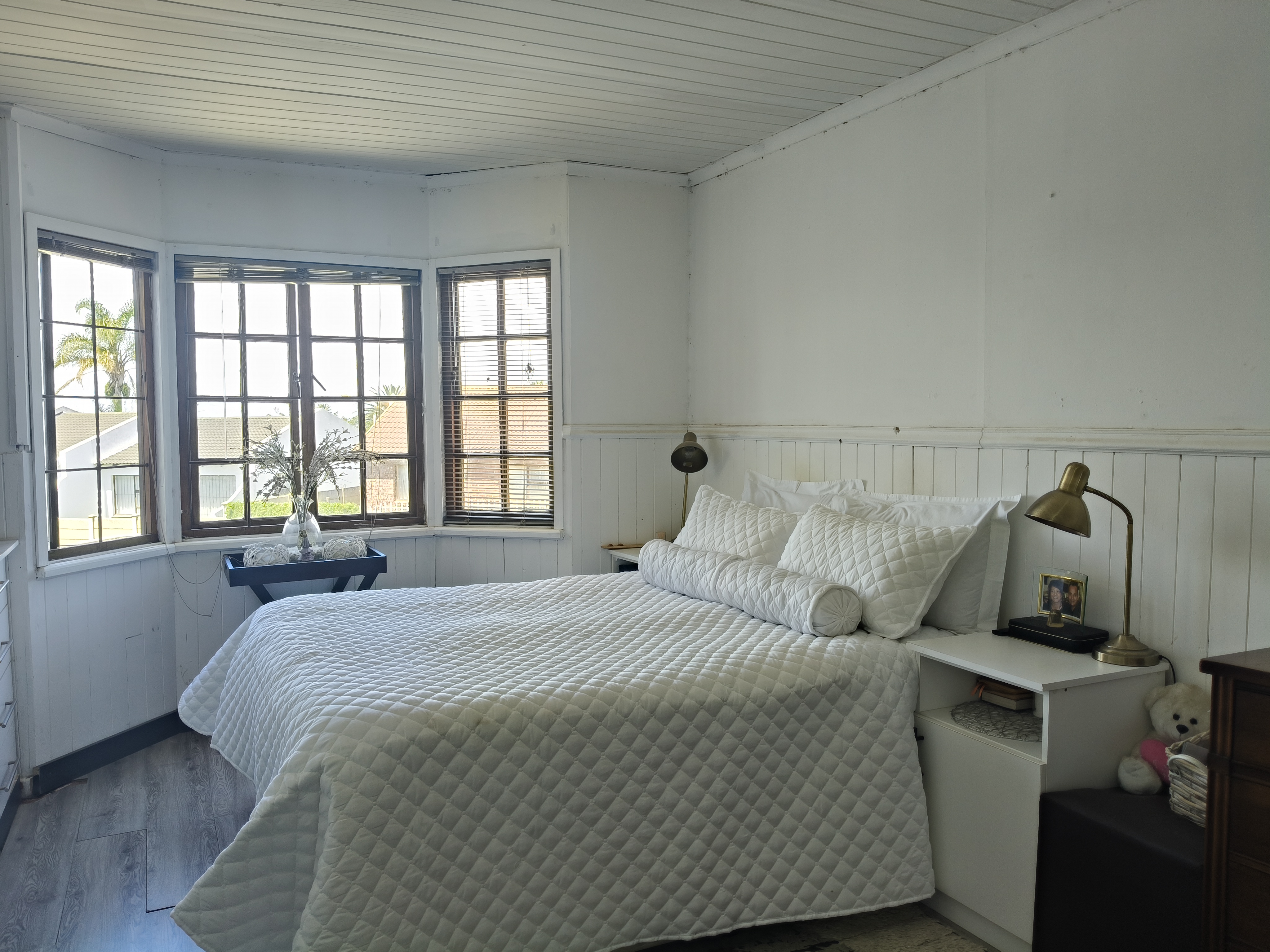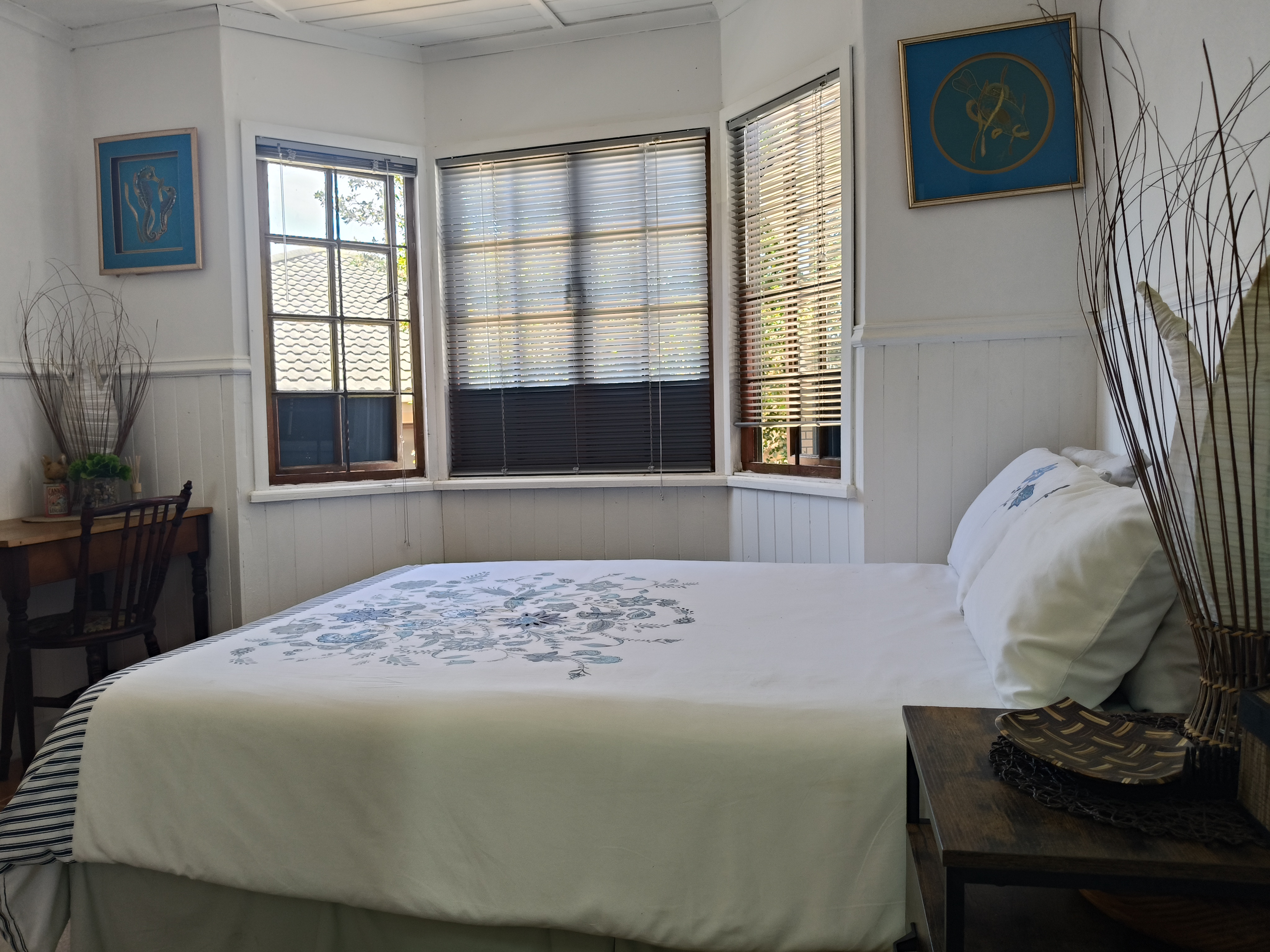 This unique home offers a delightful surprise as you step through the front door. The modern open-plan living area features a beautiful kitchen with a built-in braai, perfect for entertaining. Enjoy sea views from the patio. To the right of the living area, you'll find two bedrooms sharing a family bathroom. To the left of the living area, the main bedroom with an en-suite bathroom and sea view offers a private retreat. A separate single garage for extra security and ease. Furniture available as an optional extra.