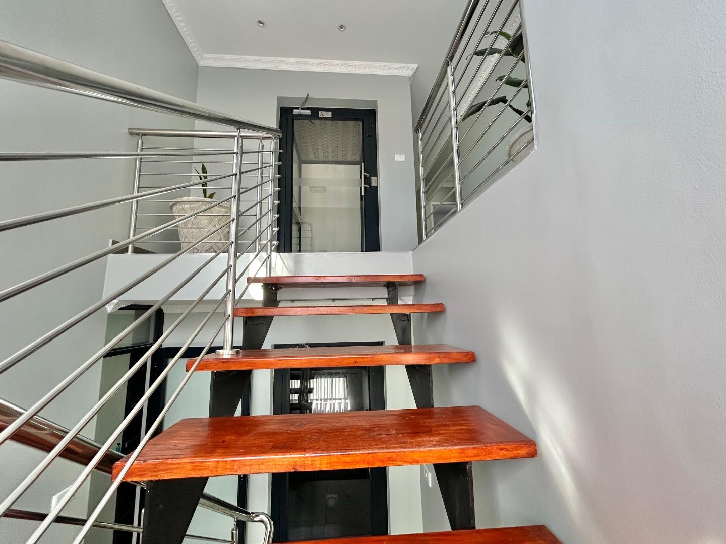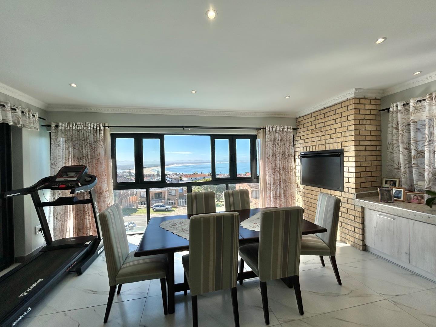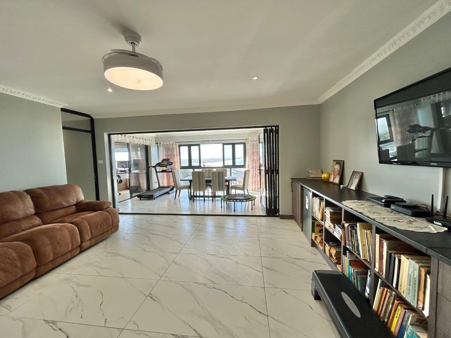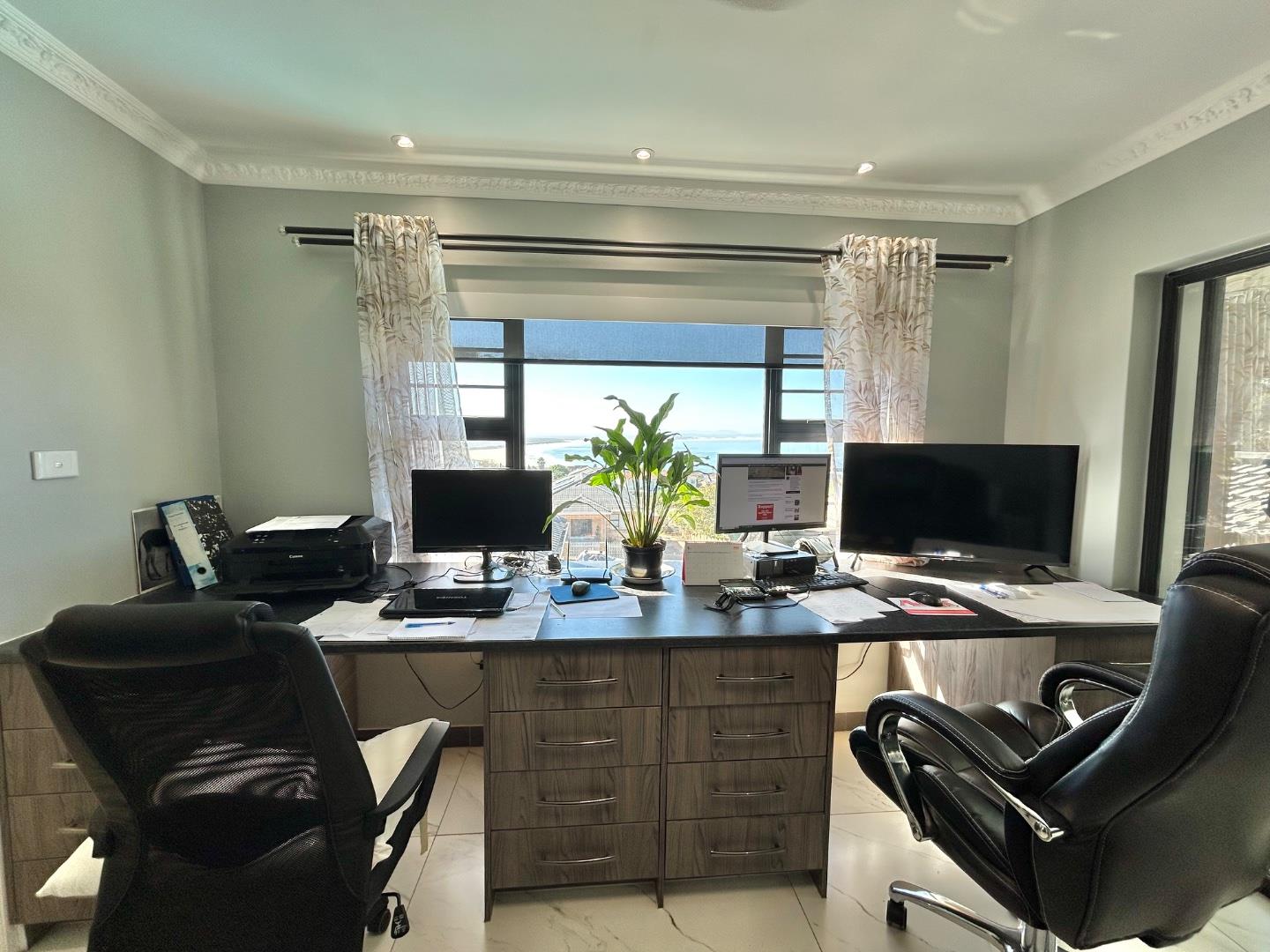 The top floor offers privacy and versatility, featuring two bedrooms serviced by a bathroom, plus a study with its own en-suite, which can double as an additional bedroom. This floor opens onto yet another braai area, where mesmerizing ocean views set the scene for relaxation. A spacious living area rounds off this level, ideal for entertaining guests or quality family time.
