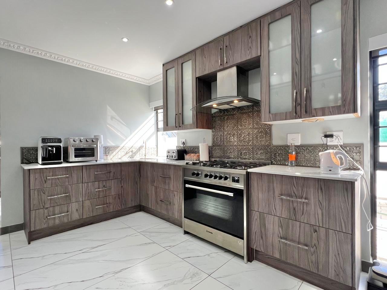 The modern kitchen features ample cupboard space and a separate scullery, ensuring effortless meal preparation. The open-plan living area seamlessly connects to the braai area and pool, thanks to expansive stacking doorsâcreating a perfect indoor-outdoor entertainment experience.