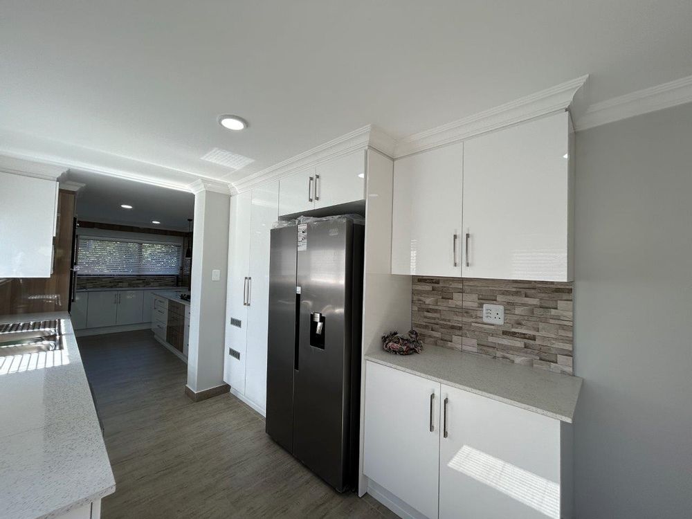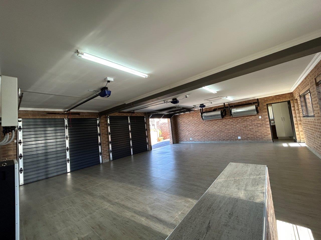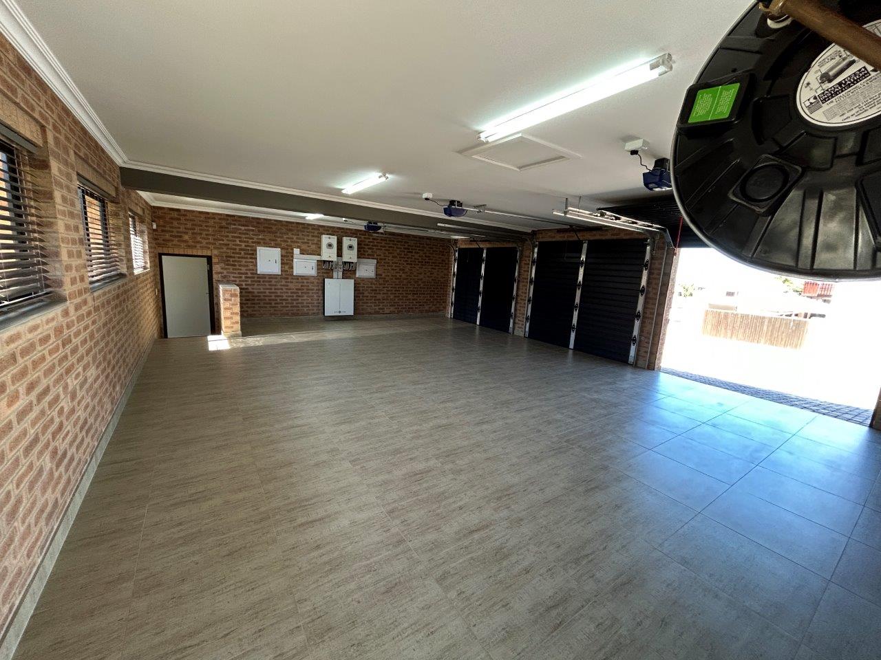 All bedrooms include built-in cupboards, and the entire home is finished with high-end quartz countertops and beautiful cabinetry. The property includes three spacious, fully tiled automated garages, with a dedicated laundry room in one side. There's also secure parking for four vehicles in total, behind the garages.
