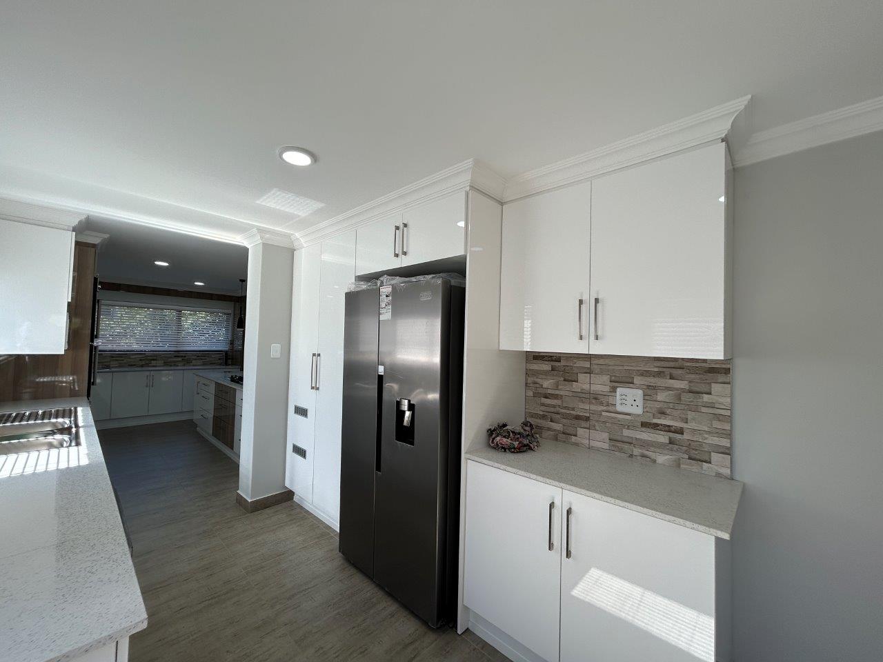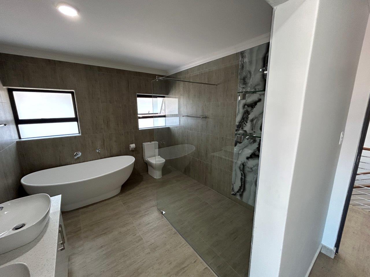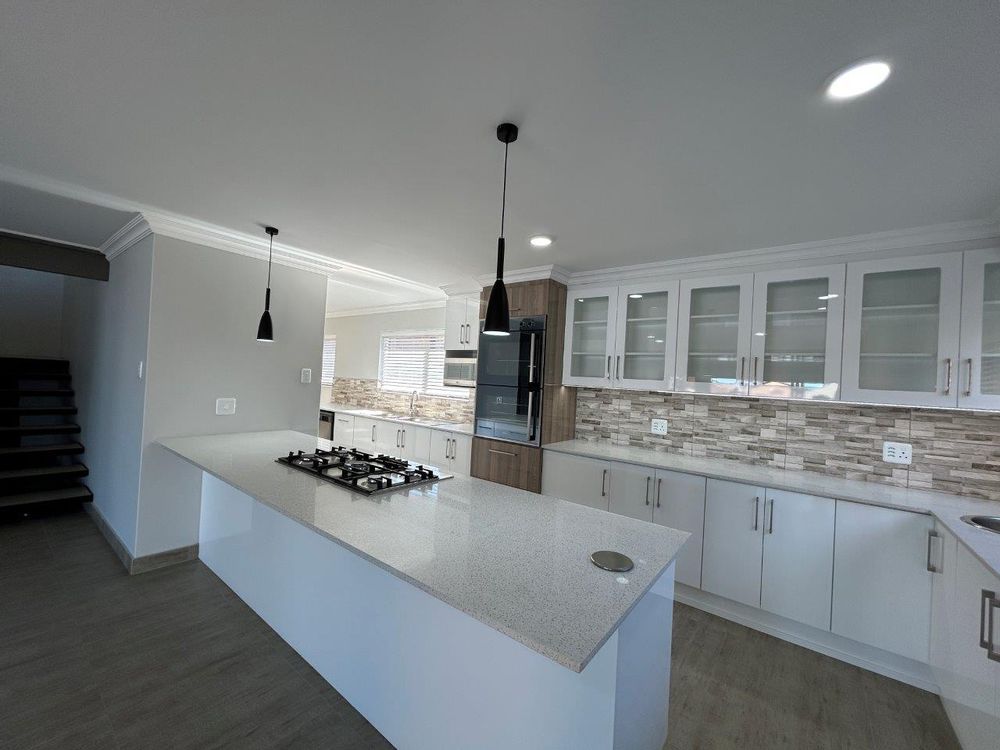 As you step inside the ground floor, you're welcomed by a generous open-plan lounge and dining area that seamlessly extends onto a wrap-around undercover balcony --perfect for entertaining. The balcony features a prep bowl and a built-in braai, all while taking in sweeping sea views. The heart of the home is a stunning modern kitchen, complete with sleek quartz countertops, two pop-up electrical units, a built-in gas hob, two electric ovens, a prep bowl, and a pantry cupboard. There's ample space for a large fridge, and to top it off, the home comes equipped with a brand-new high-end dishwasher and fridge. A separate scullery provides connections for a dishwasher, keeping the main kitchen area clutter-free.
