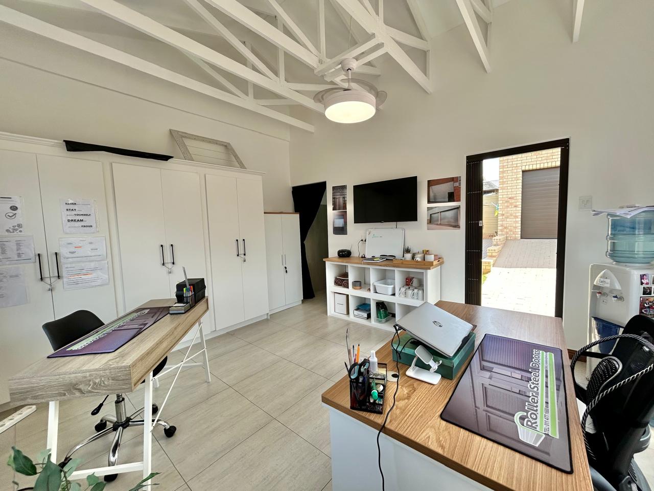 The main house includes three spacious bedrooms and two bathrooms, along with a separate outside servant’s toilet. In addition, there is a separate outside building that serves as a versatile fourth bedroom with its own bathroom. This space is perfect as a private guest suite, a home office or study, or can easily be converted into a fully self-contained flatlet. An inviting indoor braai room with beautiful sea views provides the ideal setting for year-round entertaining.