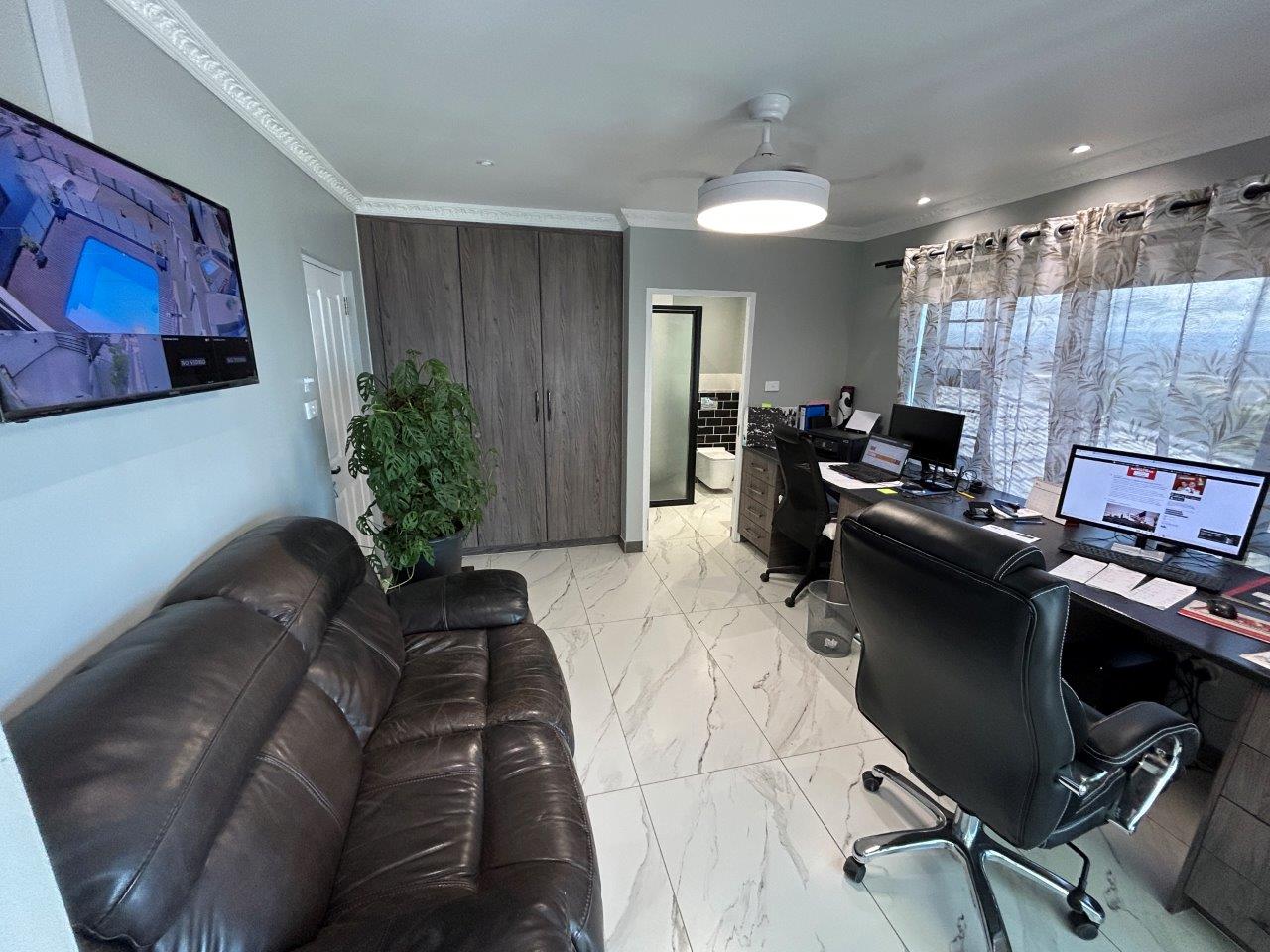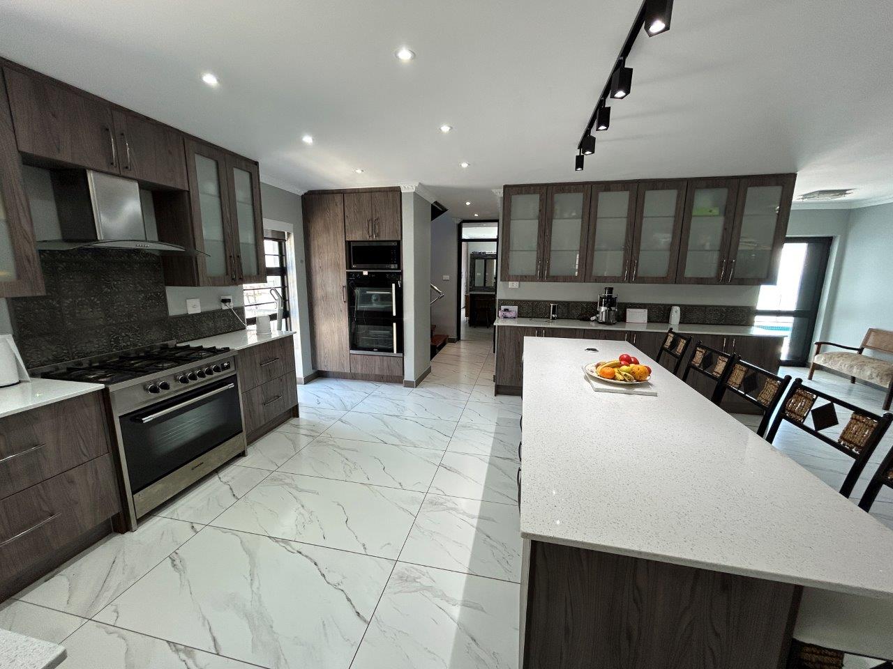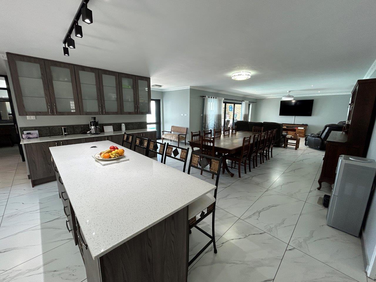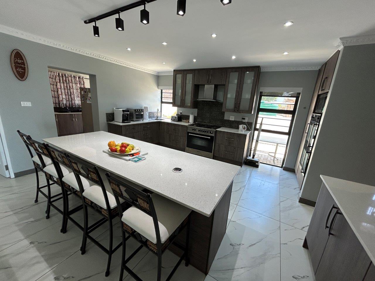 This beautifully designed 438 m2 family residence, set on a 711 m2 stand, features a practical, flowing layout with top-quality finishes throughout. The home is fully tiled and surrounded by a paved driveway for easy maintenance, while the property itself is completely walled for privacy and security.