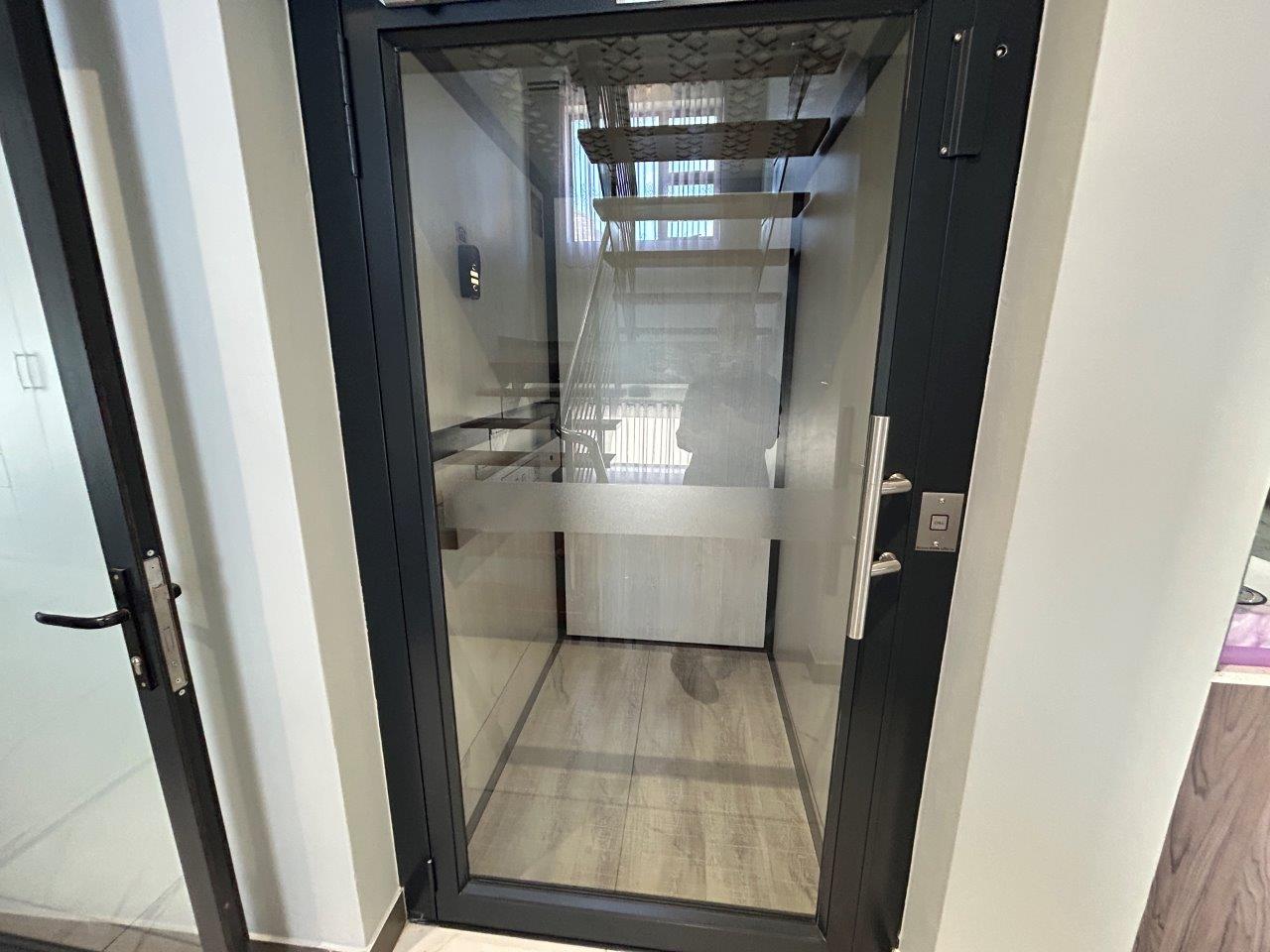 A double automated garage provides direct access to the home, along with additional storage rooms. The property is equipped with an 8Kva Deye inverter system and two Hubble batteries, and 18 solar panels, ensuring uninterrupted power supply. From here, you can access either the elegant staircase or the high-end three-phase lift.