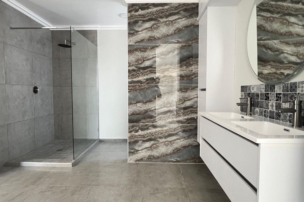 The kitchen is a contemporary masterpiece, showcasing sleek lines, a fitted hob, and high-end finishes. Two generously sized bedrooms, each with stylish en-suite bathrooms, ensure comfort and privacy. The second bedroom leads directly to the patio, ideal for indoor-outdoor flow. These bedrooms guarantee comfort for family and guests alike.