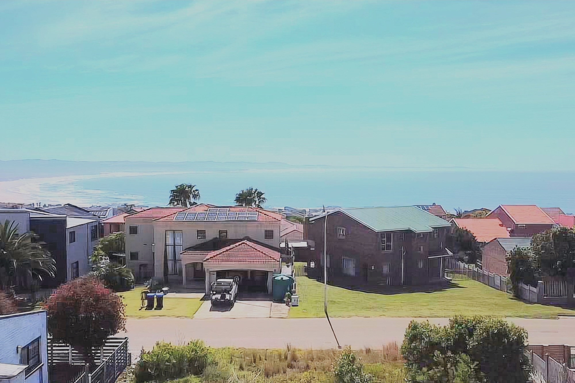 The ground floor boasts an expansive living area that flows effortlessly into an open-plan kitchen, equipped with a gas stove, high-end engineered stone or quartz countertops, glass splash backs, and a dedicated coffee station. Large aluminum sliding doors open onto a covered patio, extending to a covered braai area for outdoor entertaining. Adjacent to the garage, there’s a convenient indoor laundry room and a guest toilet.