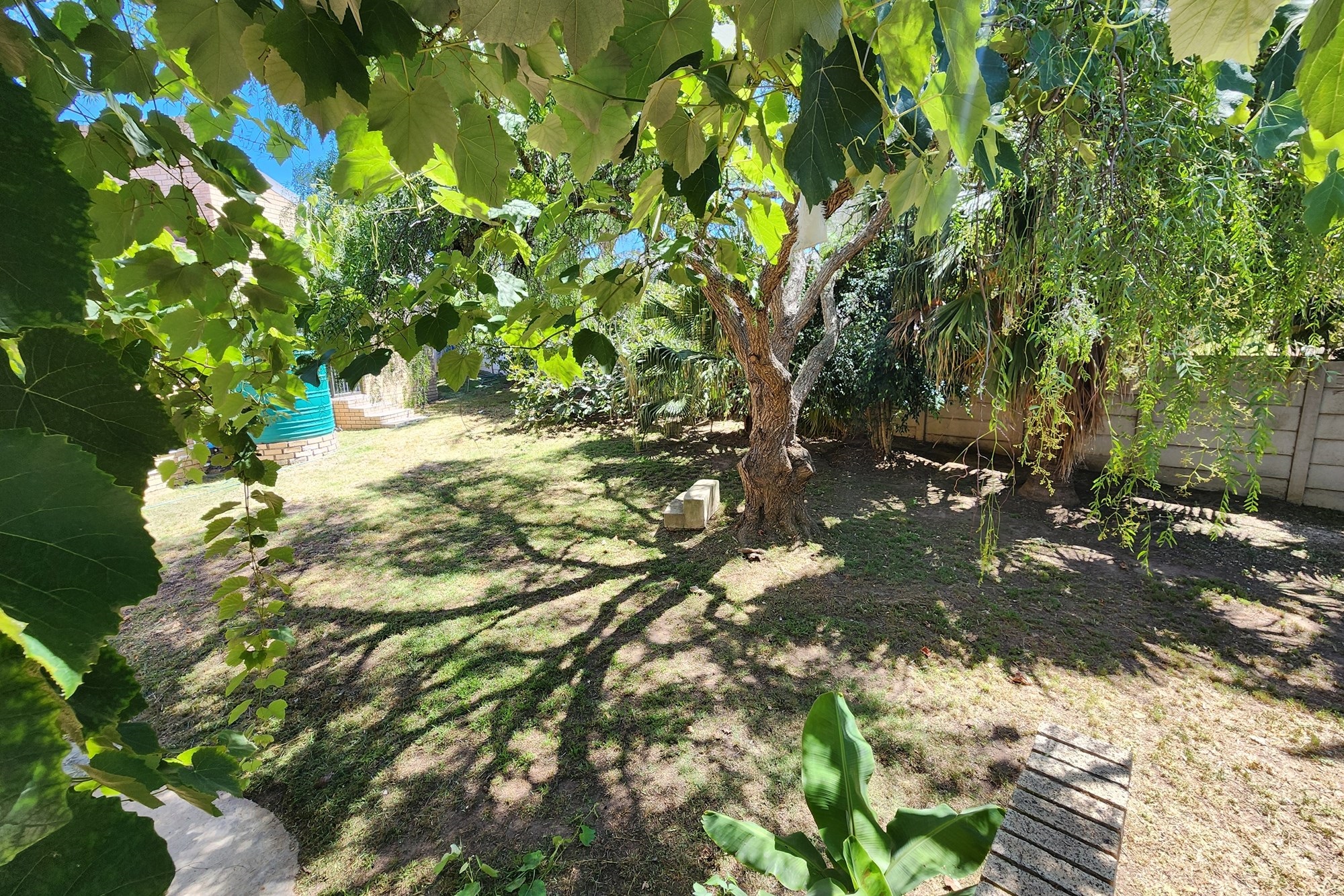 Expansive Backyard Sanctuary to enjoy a tranquil, fully enclosed garden shaded by mature trees, including fruit trees for a touch of nature’s bounty.