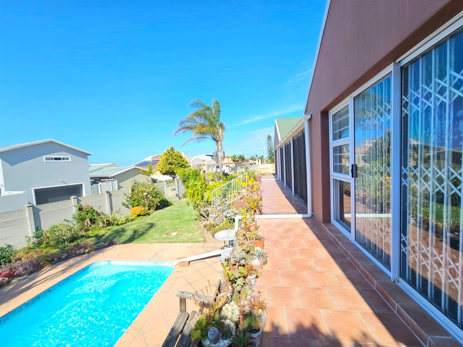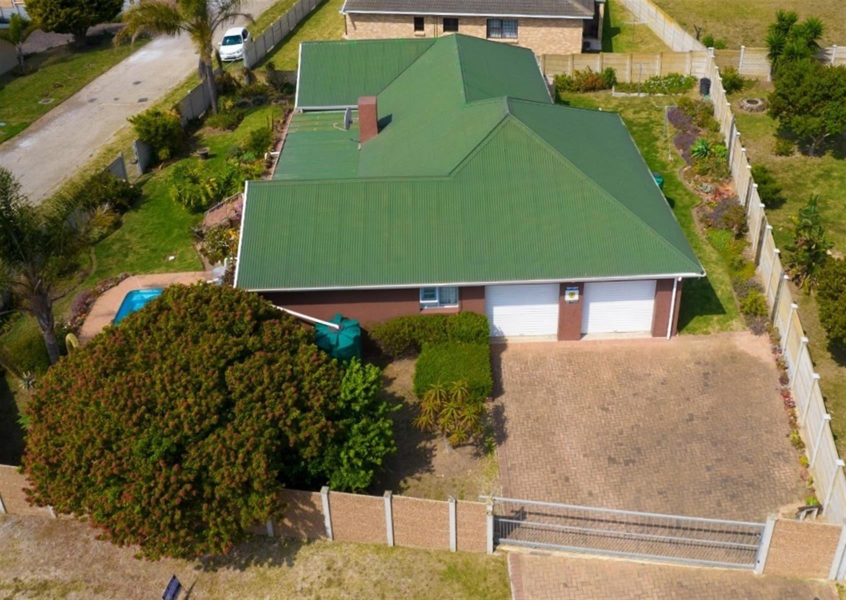 At a glance: 3 Bedrooms | 2 Bathrooms (main en-suite) | Double Garage | Covered Stoep/Patio | Pool | Built-in Braai | Fully Walled | Trellidor & ClearGuard | 3 Water Tanks (±7,100 L) | AZ200 Roof Sheeting