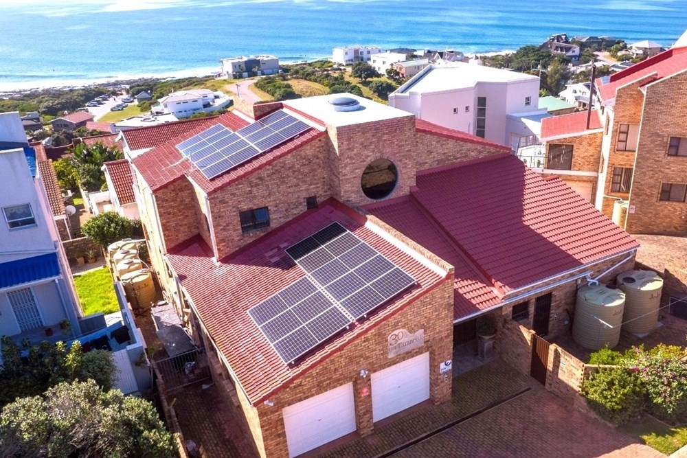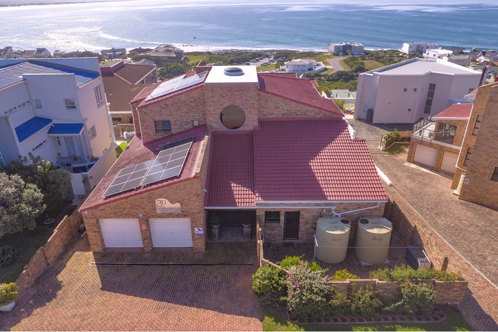 5 Bedroom House for Sale in Jeffreys Bay — Discover modern coastal living in the well-known Tamarisk Square. This spacious 530 m2 family home offers uninterrupted sea views, effortless indoor-outdoor flow, and serious off-grid capability, all on a 630 m2 erf.
