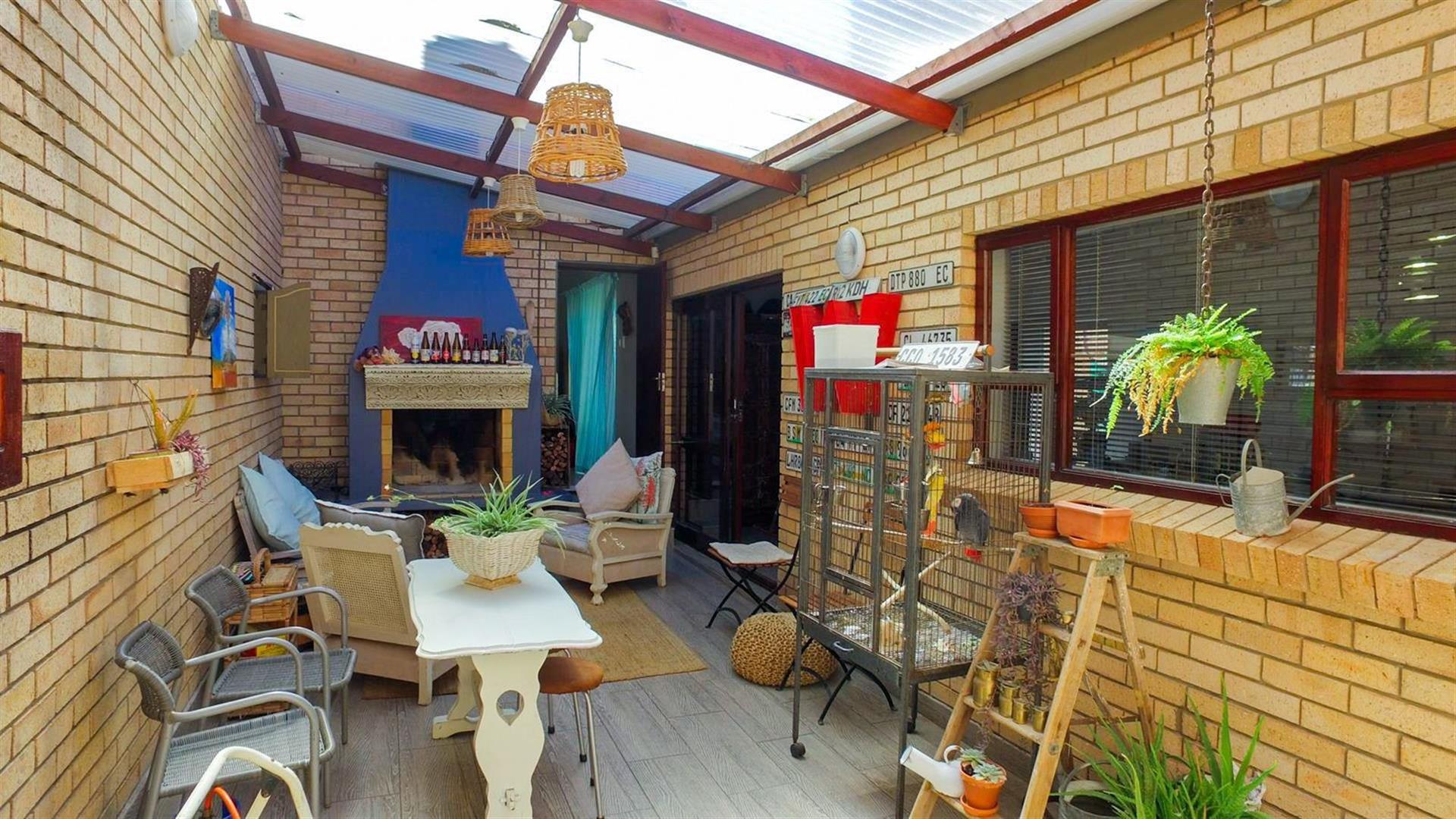 Outside: Sparkling pool with lapa, JoJo water tank, double garage with storage, double shaded carport + guest parking, and CCTV security.