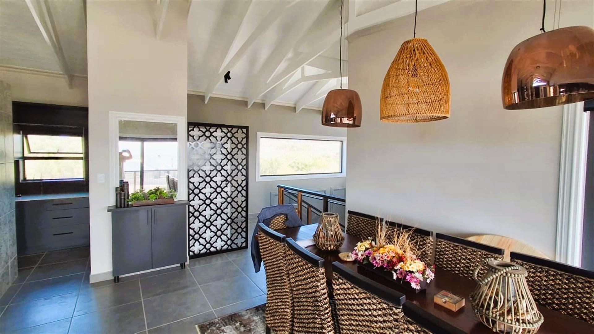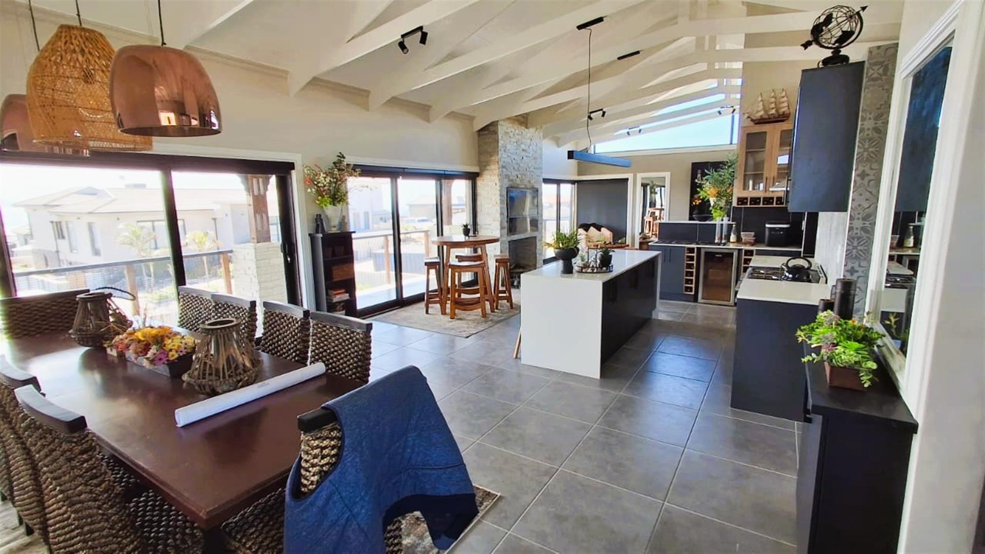 Experience refined coastal living in this immaculate, recently completed double-storey residence located in the prestigious Blue Waters Security Estate. Designed to maximise comfort, privacy, and breathtaking views, this contemporary home seamlessly blends modern elegance with relaxed seaside lifestyle.
