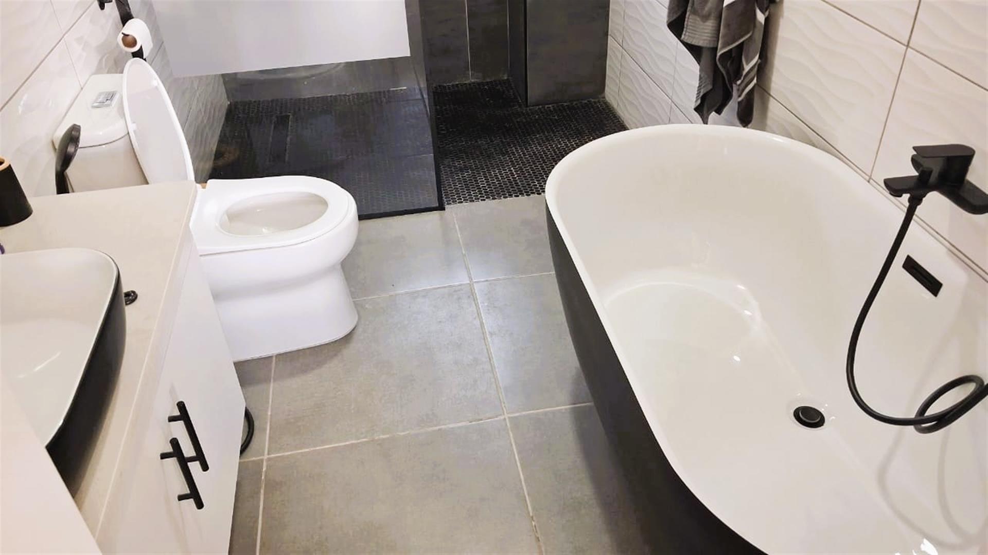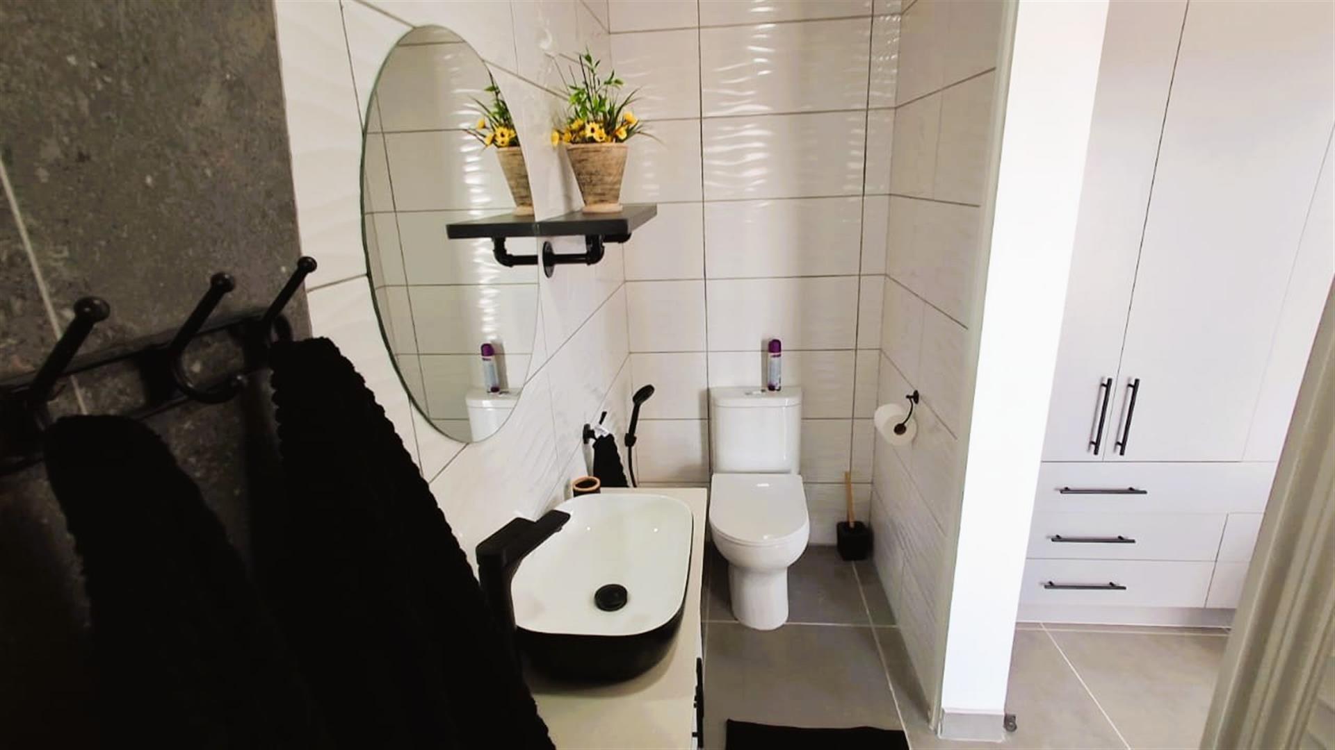 - Two bathrooms with shower, basin, and toilet, plus a full main en-suite