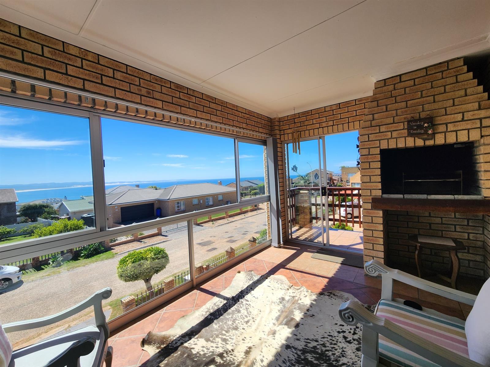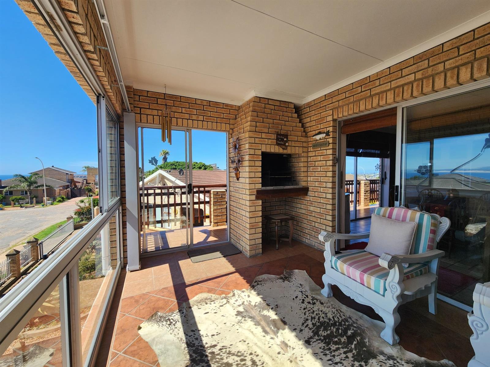 One of the standout features of this property is the separate two-bedroom flatlet, which has its own private entrance and offers excellent flexibility. The flat includes two spacious bedrooms, a bathroom, and an open-plan living area with a kitchen. A balcony with beautiful sea views, air-conditioning, and a private braai area makes this space perfect for guests, extended family, or as an income-generating rental unit.