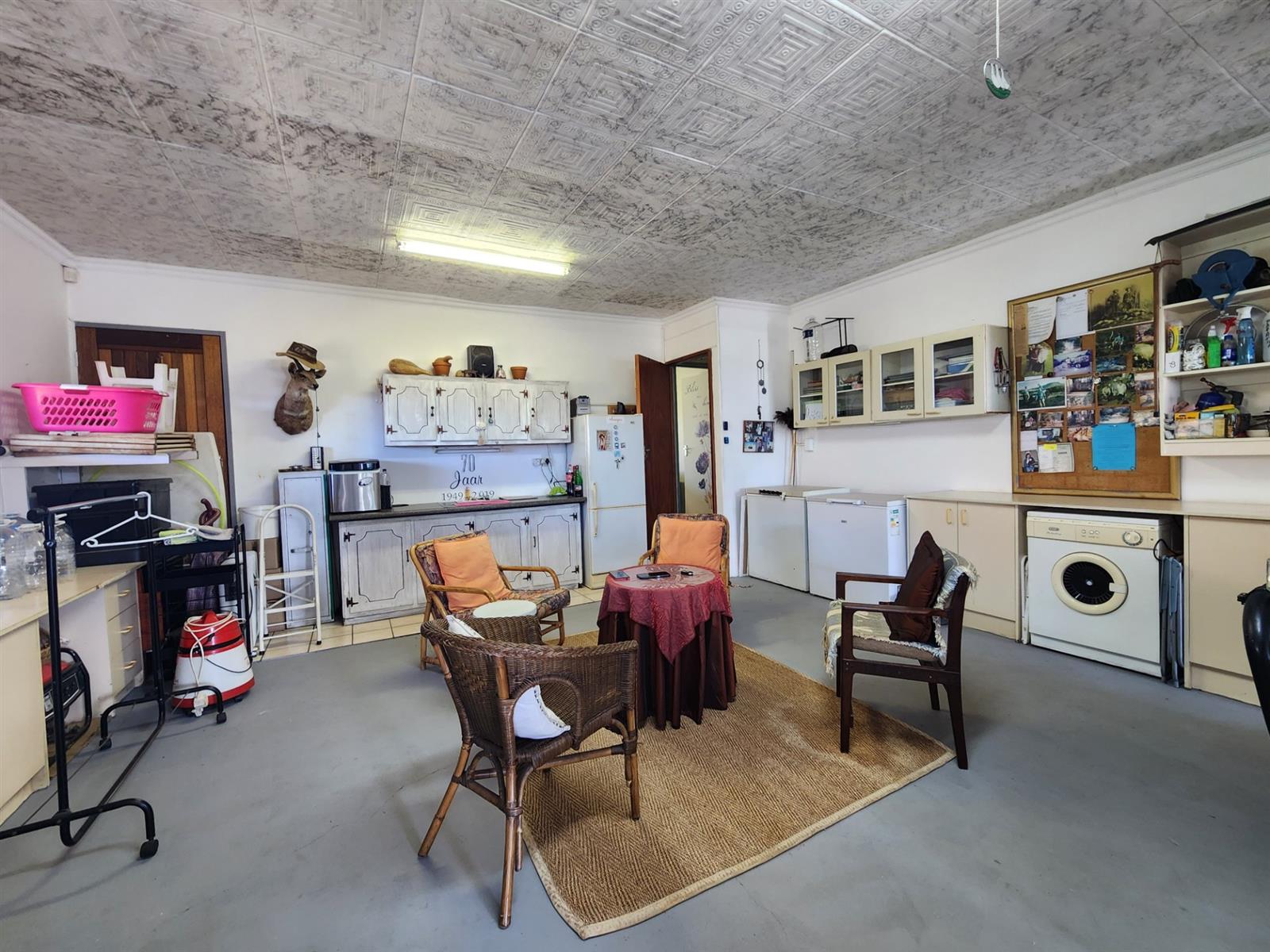 For added practicality, the home also includes an ironing room and two tandem garages, offering ample parking and storage space.