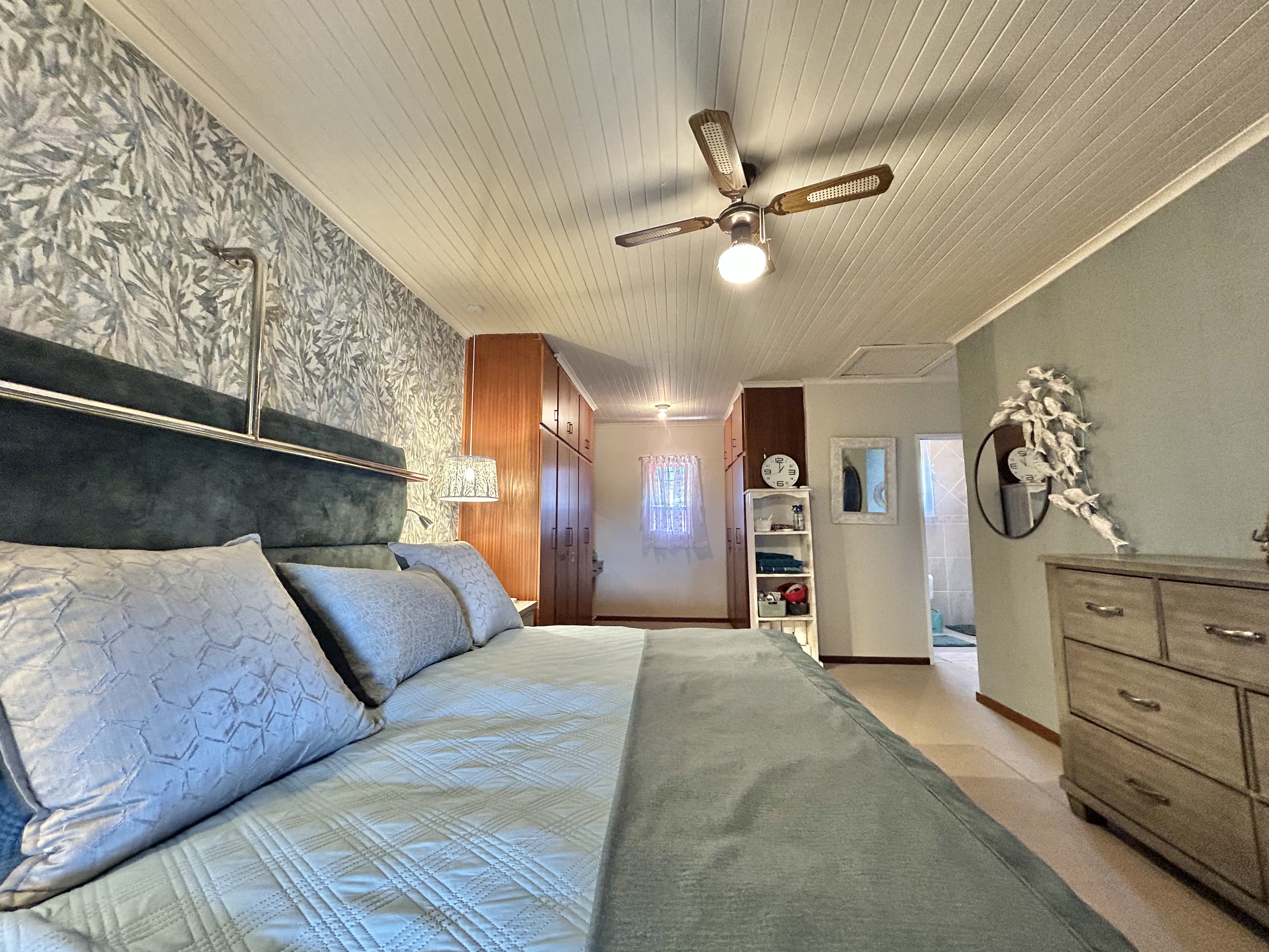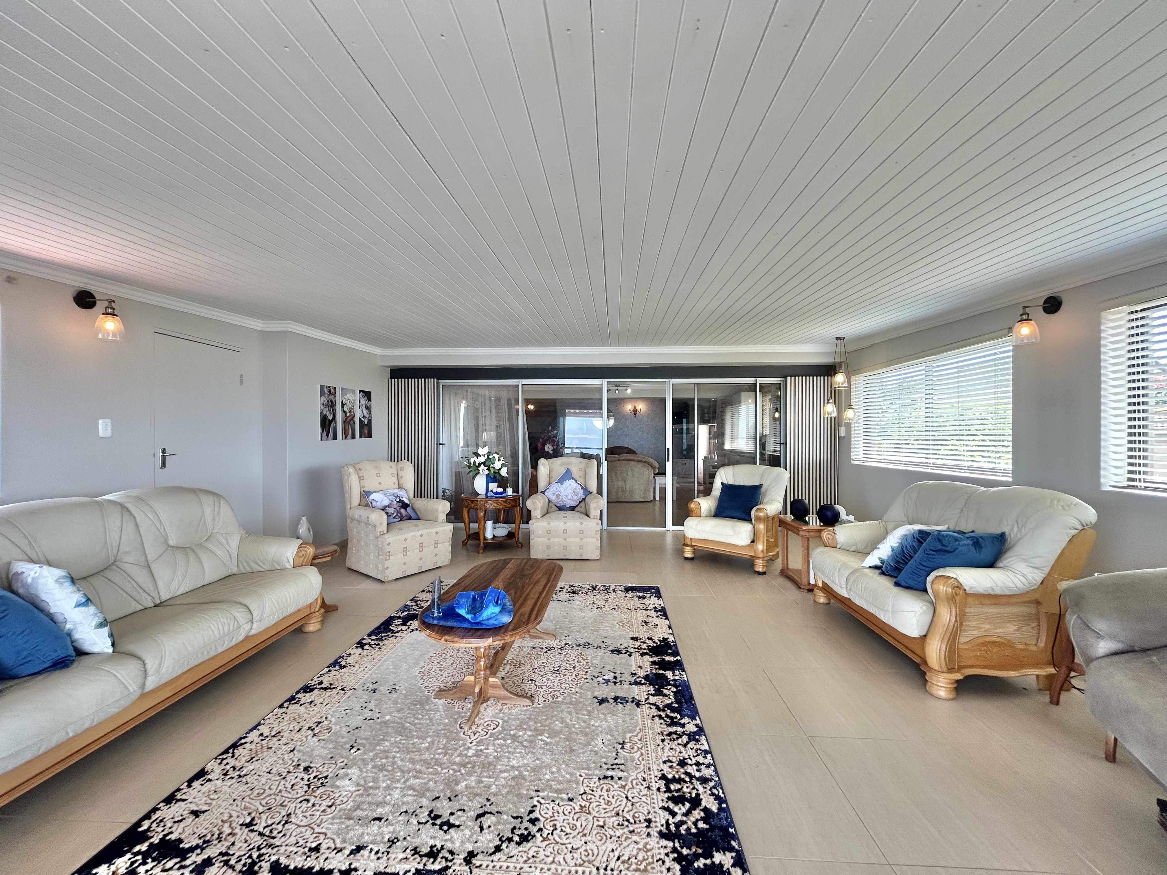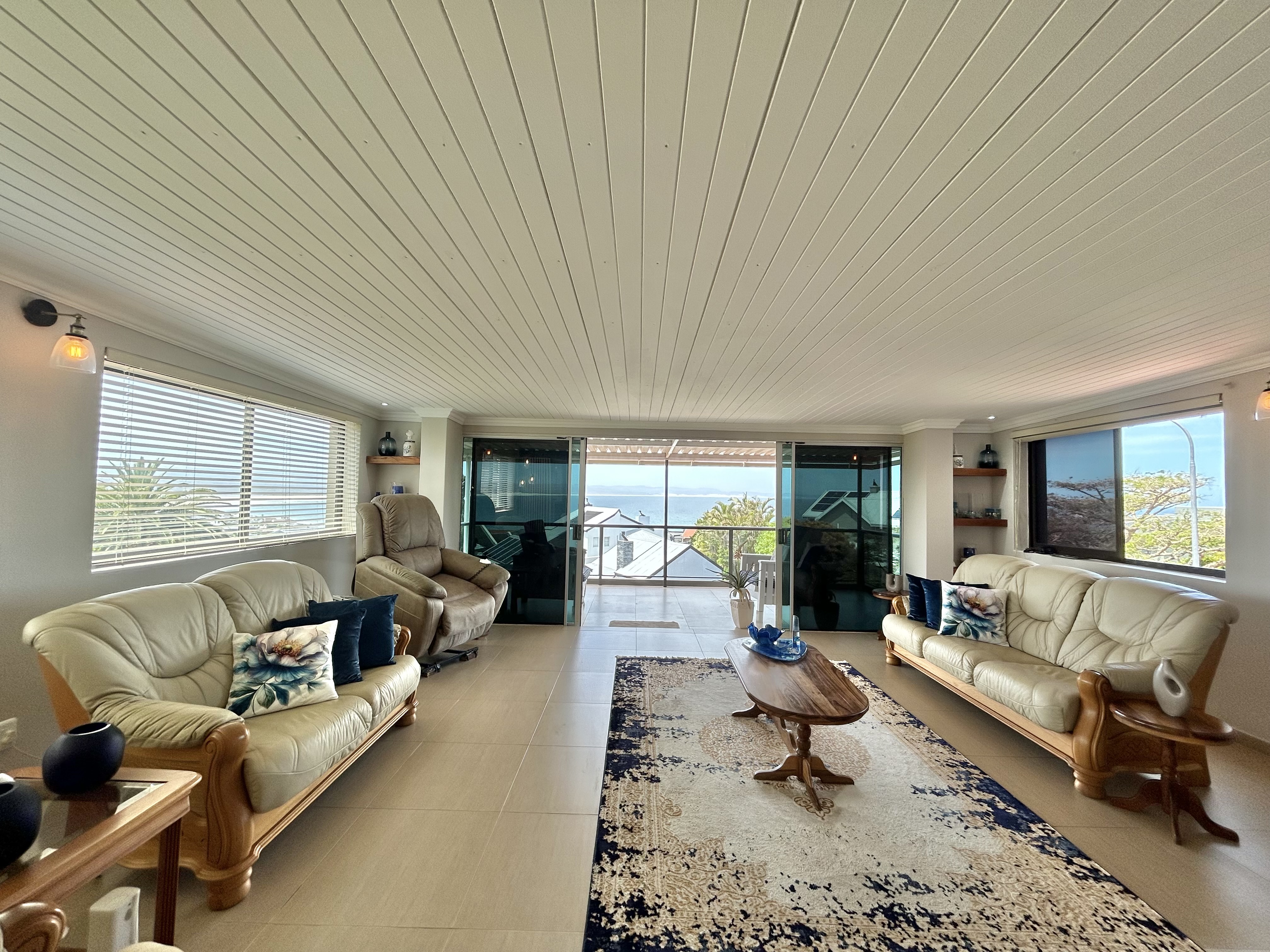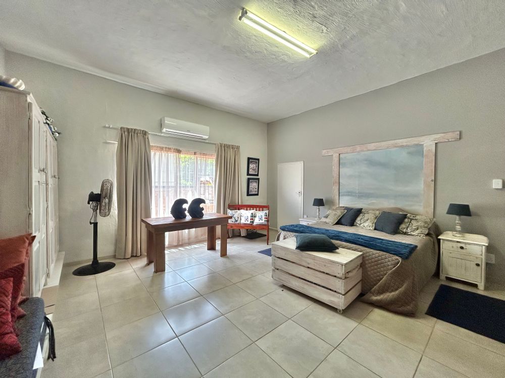 Upstairs, four bedrooms await — three with sliding doors to the stoep, where mornings begin with coffee and ocean views. The layout offers endless potential: create a private en-suite with lounge and kitchenette, or keep it open for family relaxation.