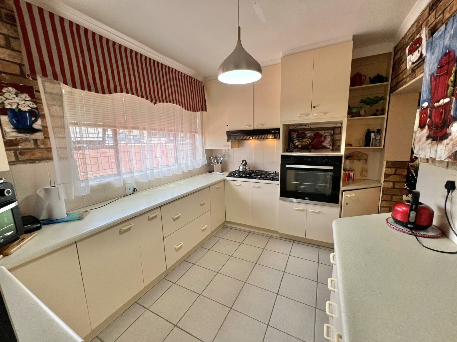 A modern kitchen with ample storage, gas stove, and scullery makes everyday meals and festive occasions a pleasure.