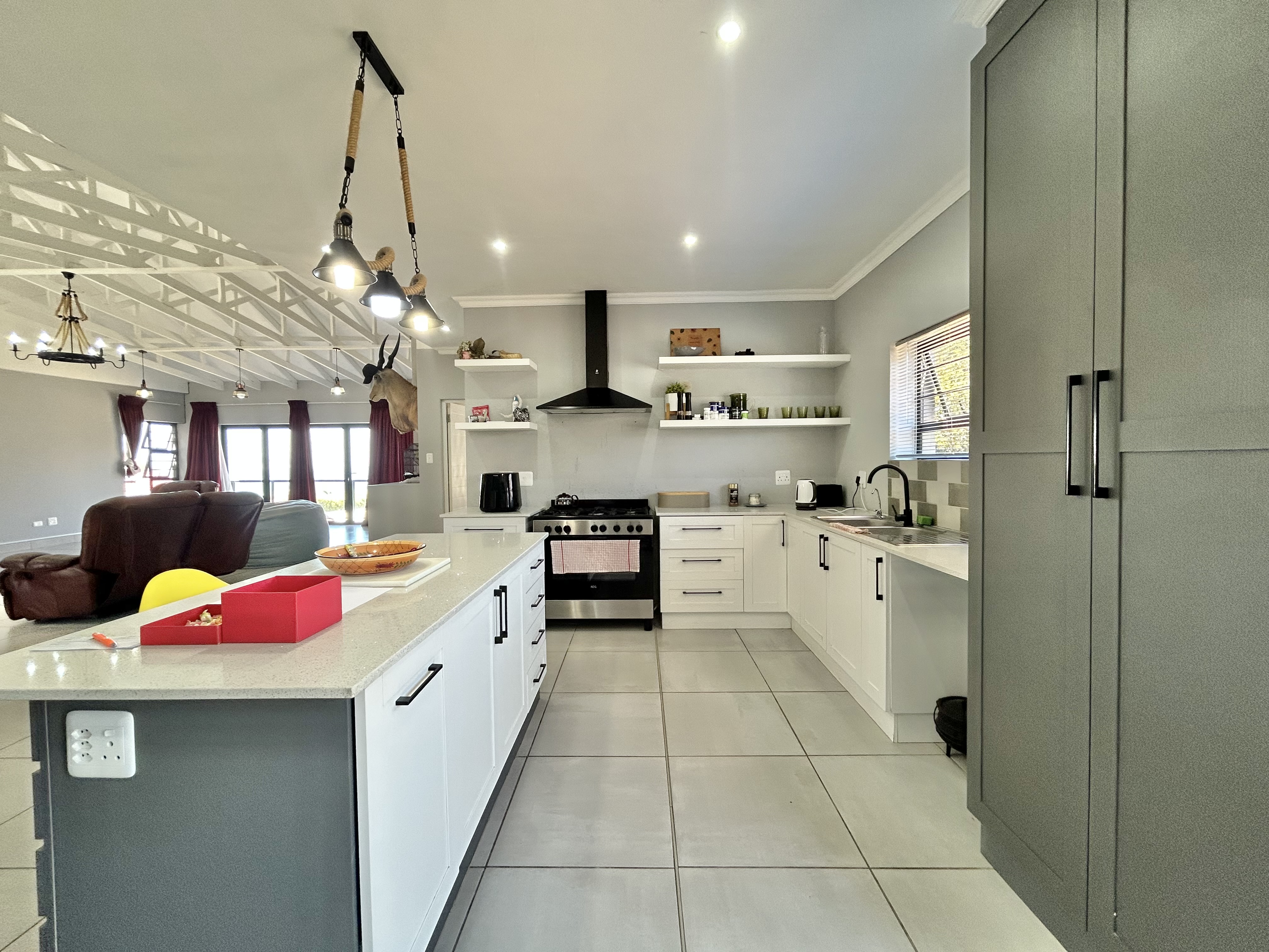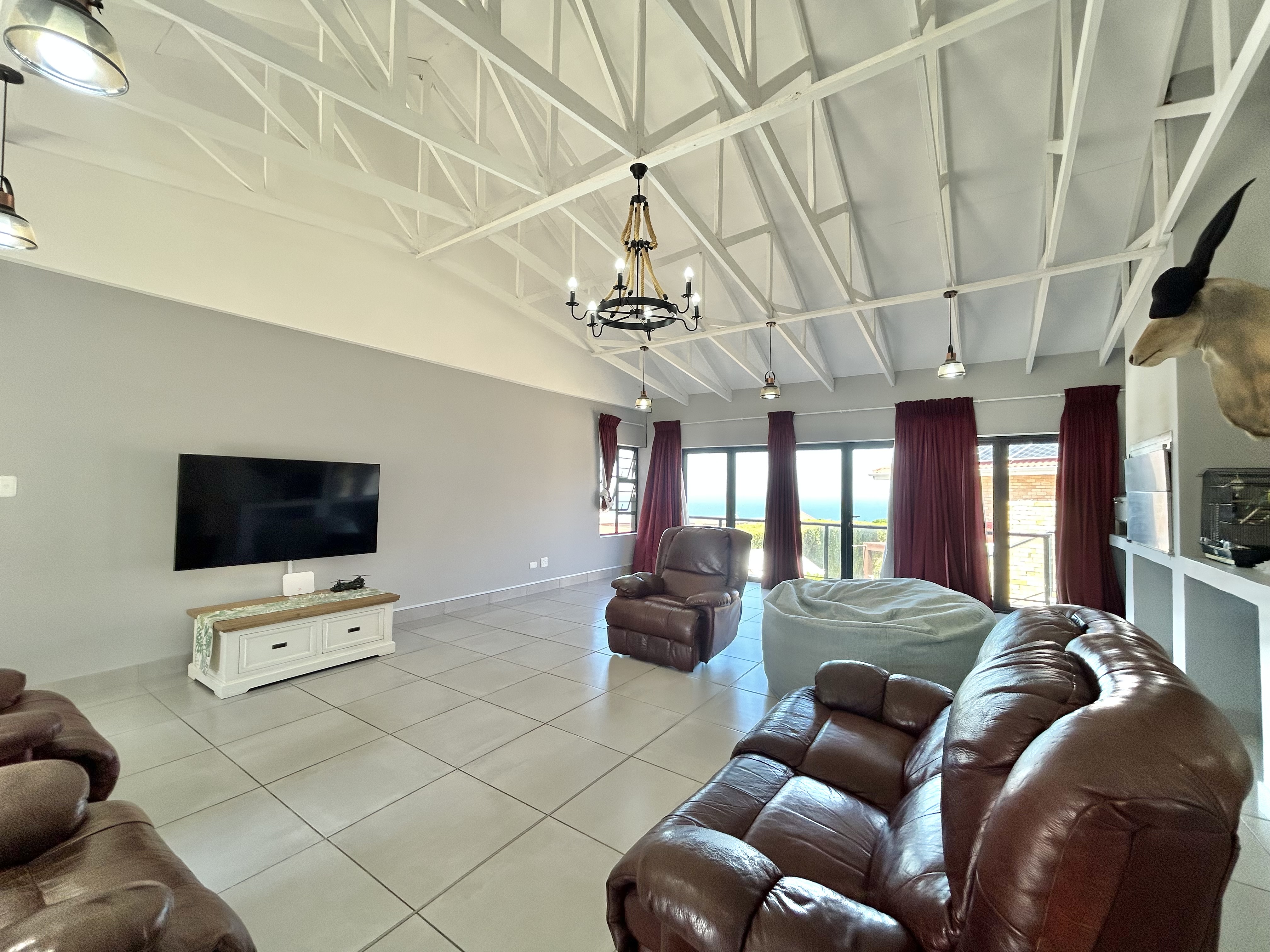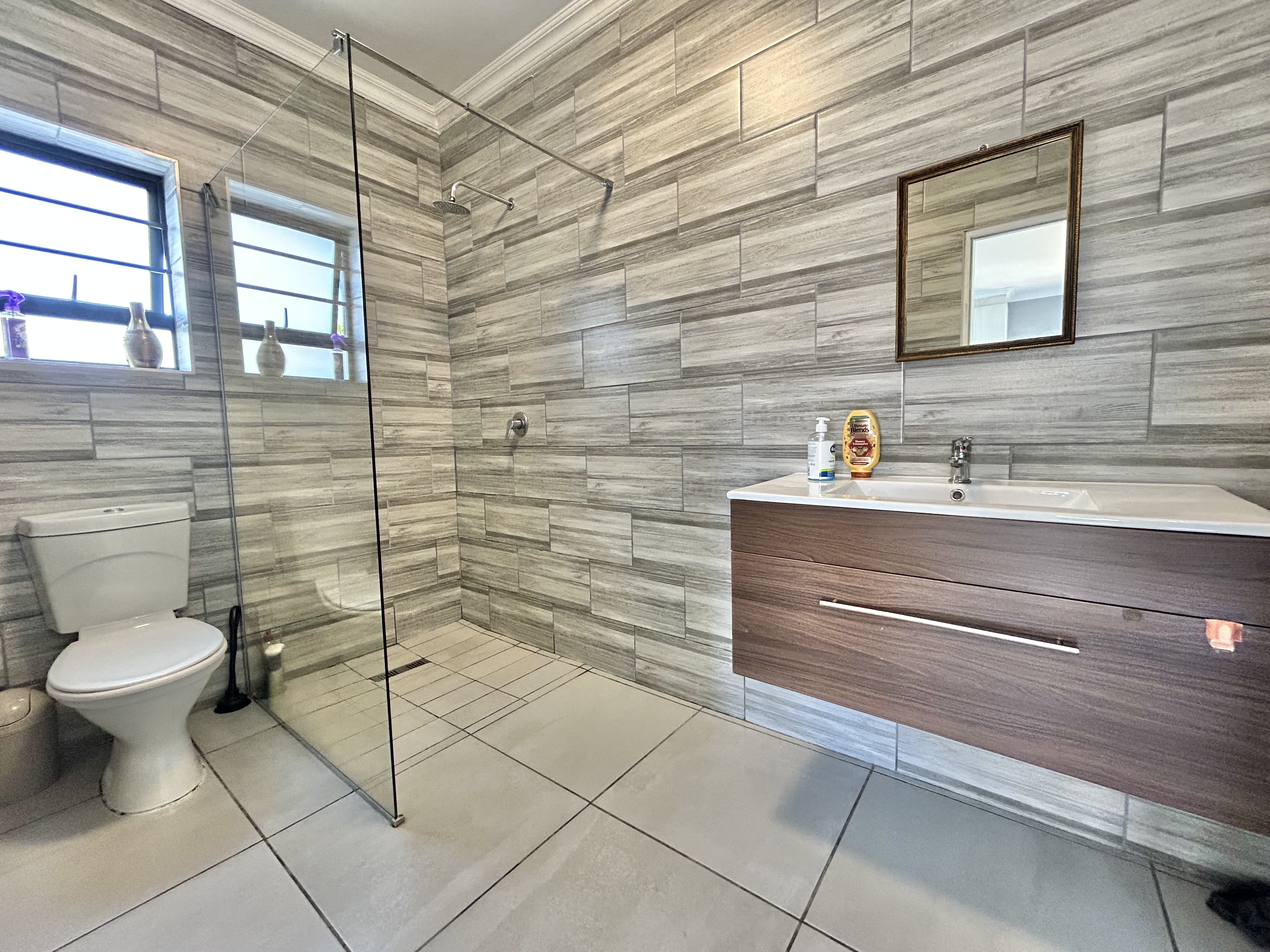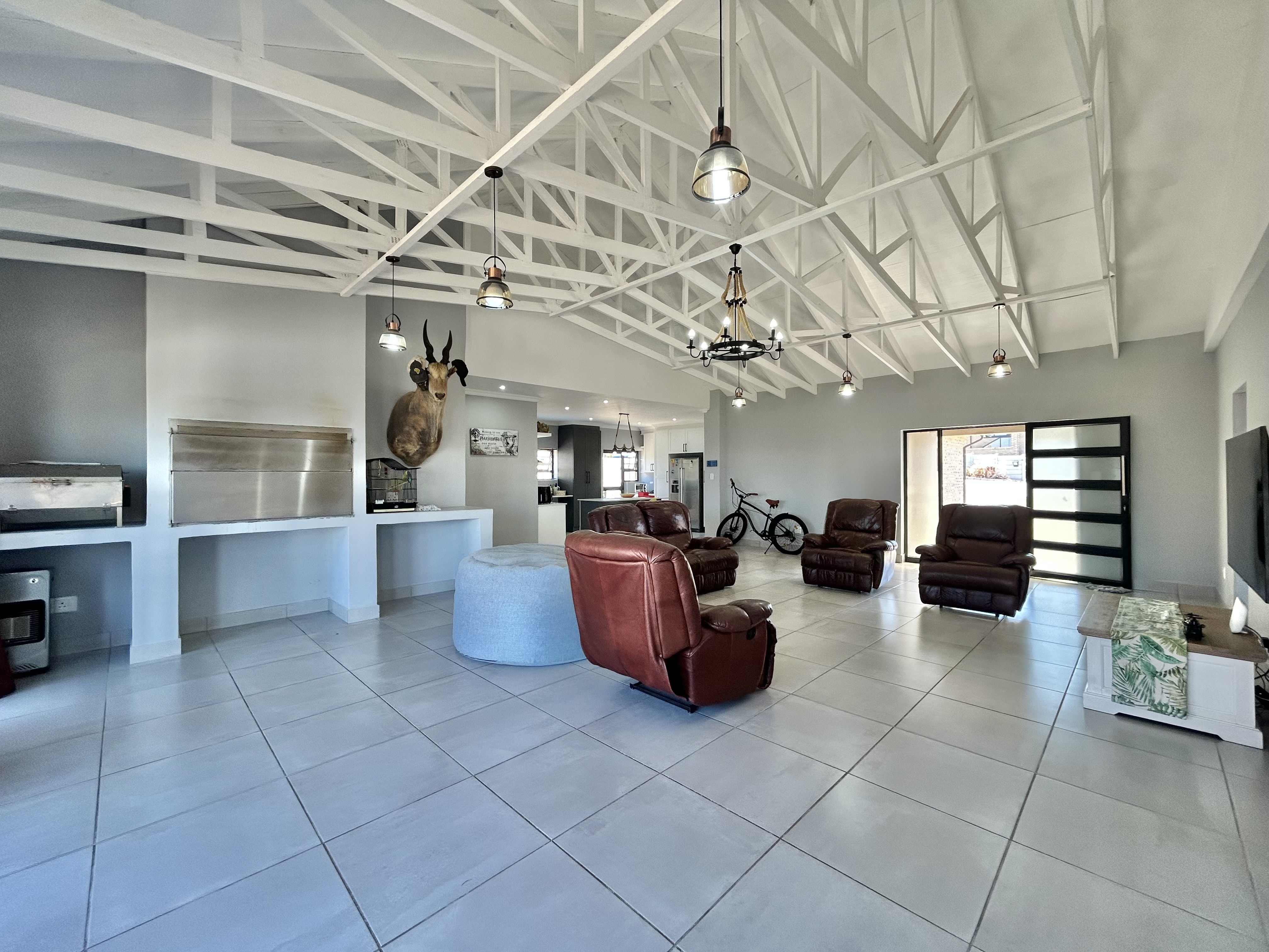 This beautiful home offers generous space for both comfortable living and effortless entertaining. At its heart lies a thoughtfully designed open-plan layout, where the living, dining, and entertainment areas seamlessly connect with the modern kitchen. Exposed rafters add to the sense of openness, while shutter doors invite you onto a balcony that frames sweeping views of Kabeljauws Beach and the rolling breakers beyond.