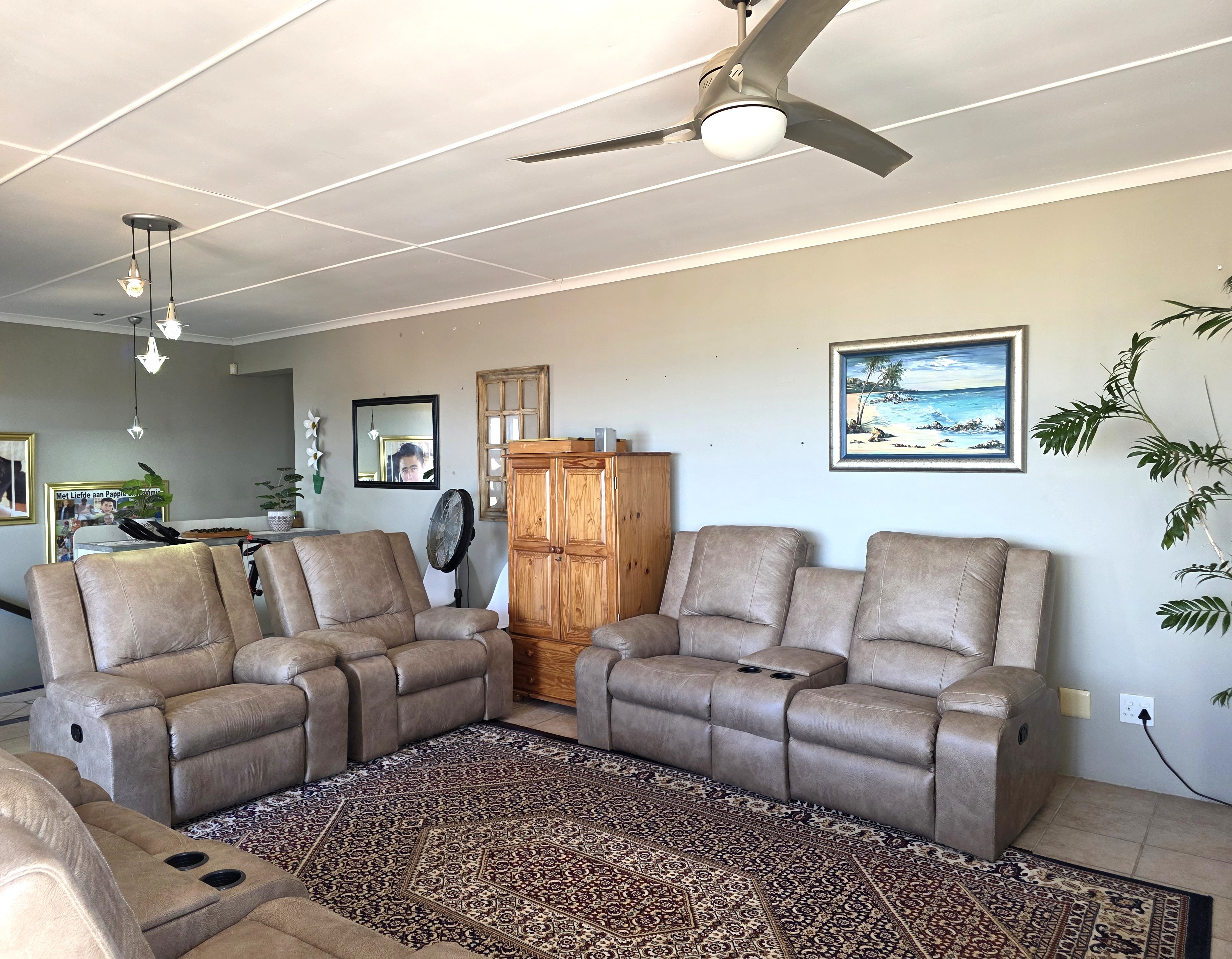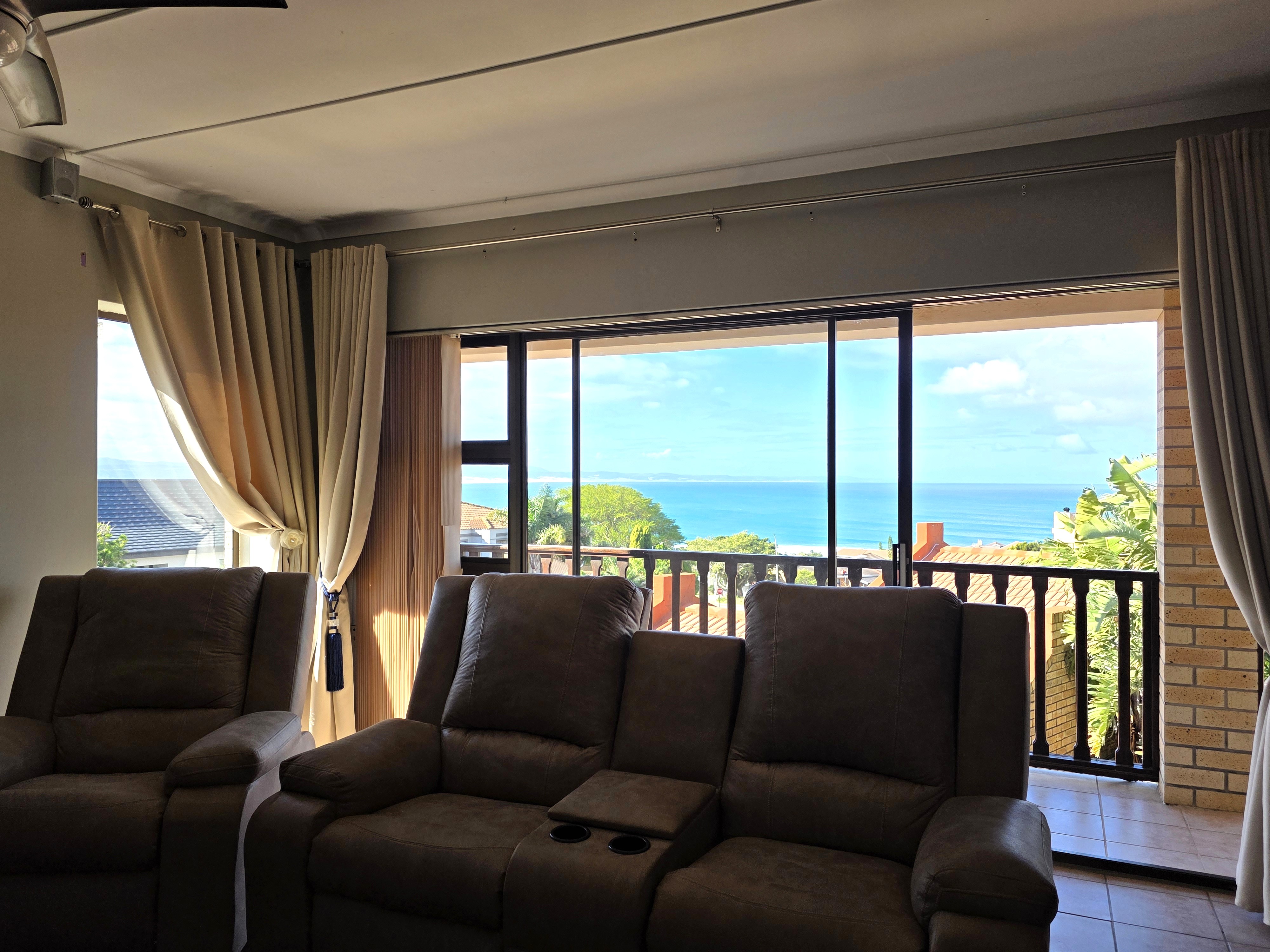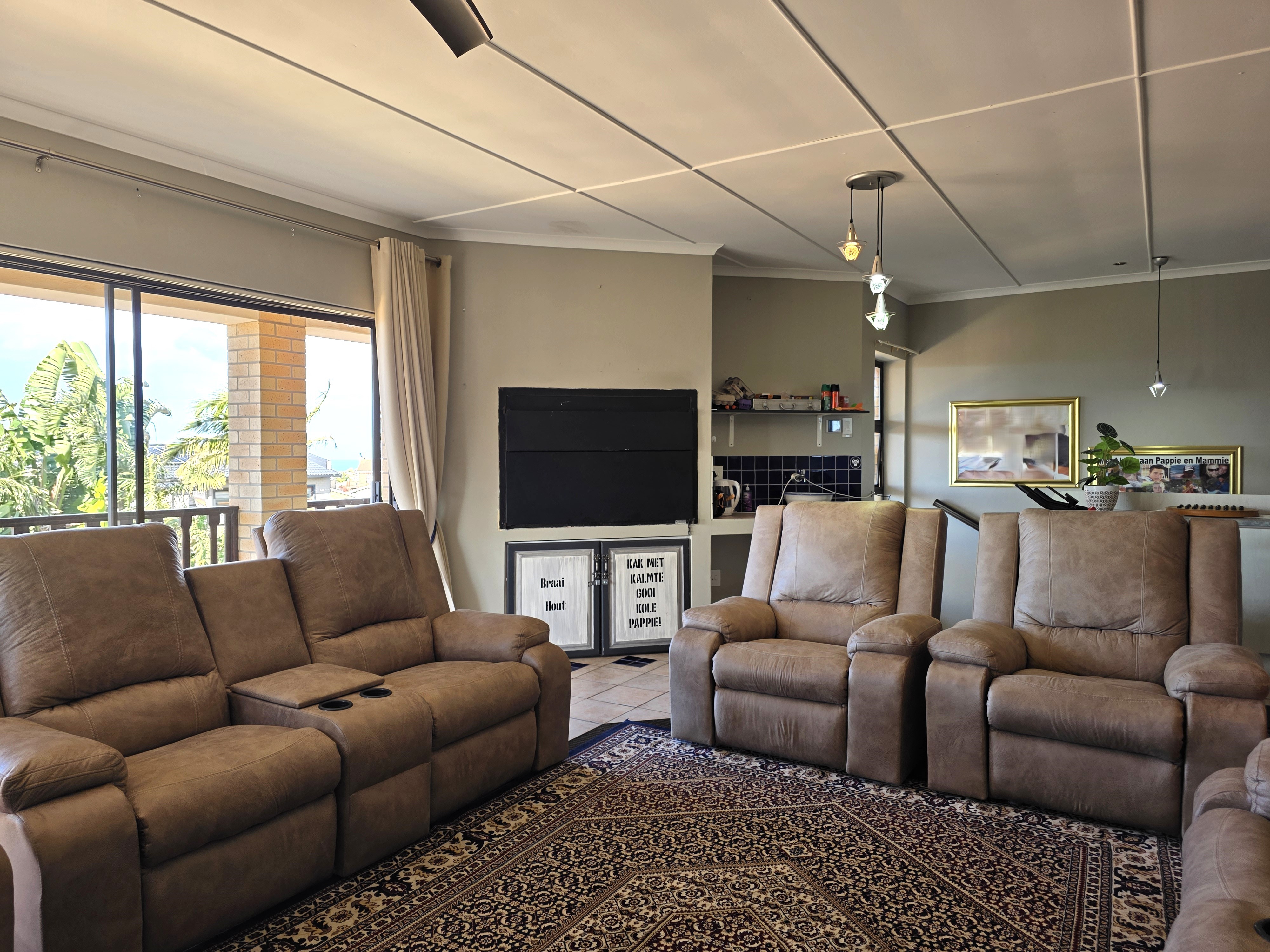 Upstairs, you'll discover yet another generous living area—perfect for cozy movie nights or enjoying the ambiance of a built-in braai on cooler evenings. This inviting space flows effortlessly onto a balcony, offering sweeping views of the ocean.