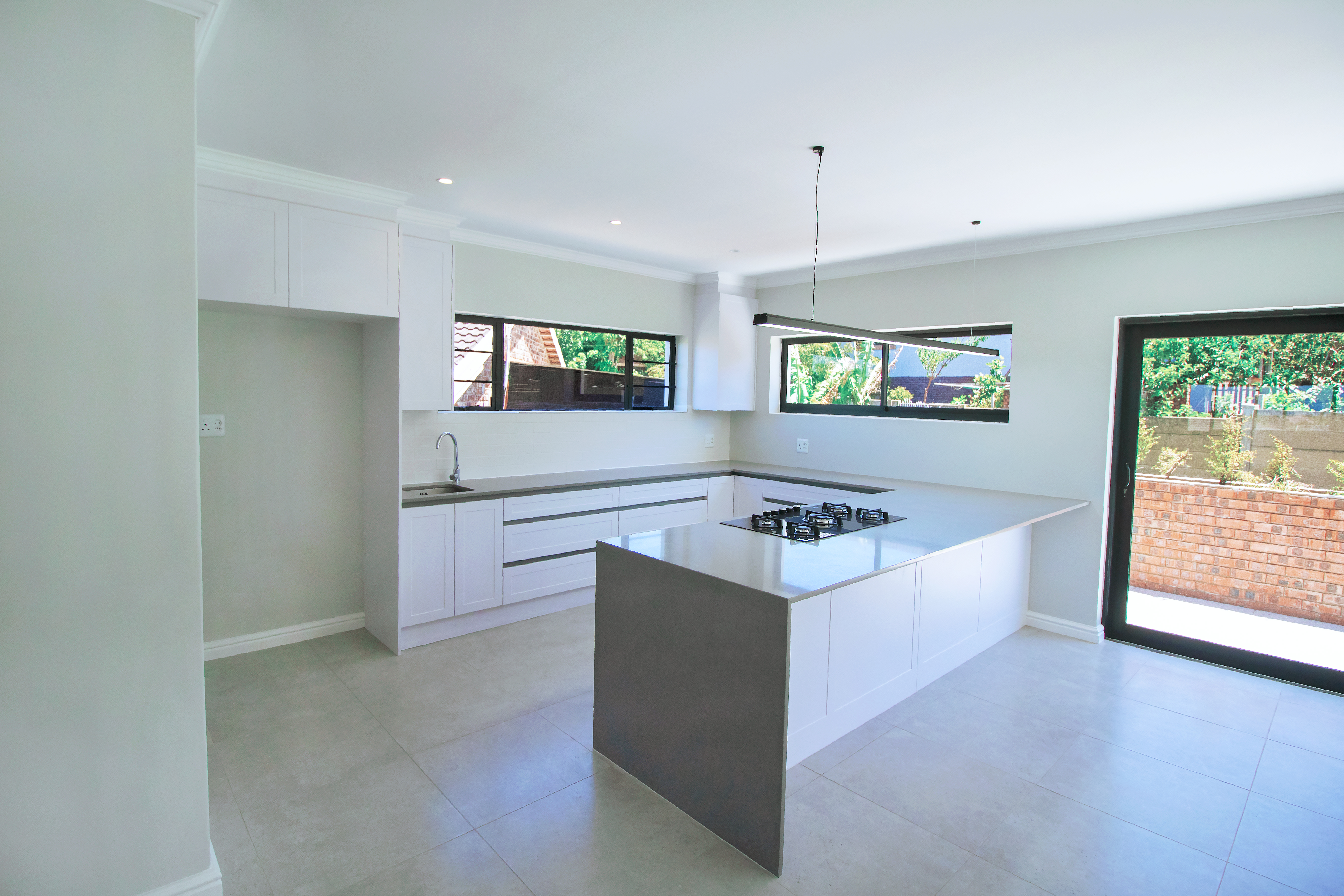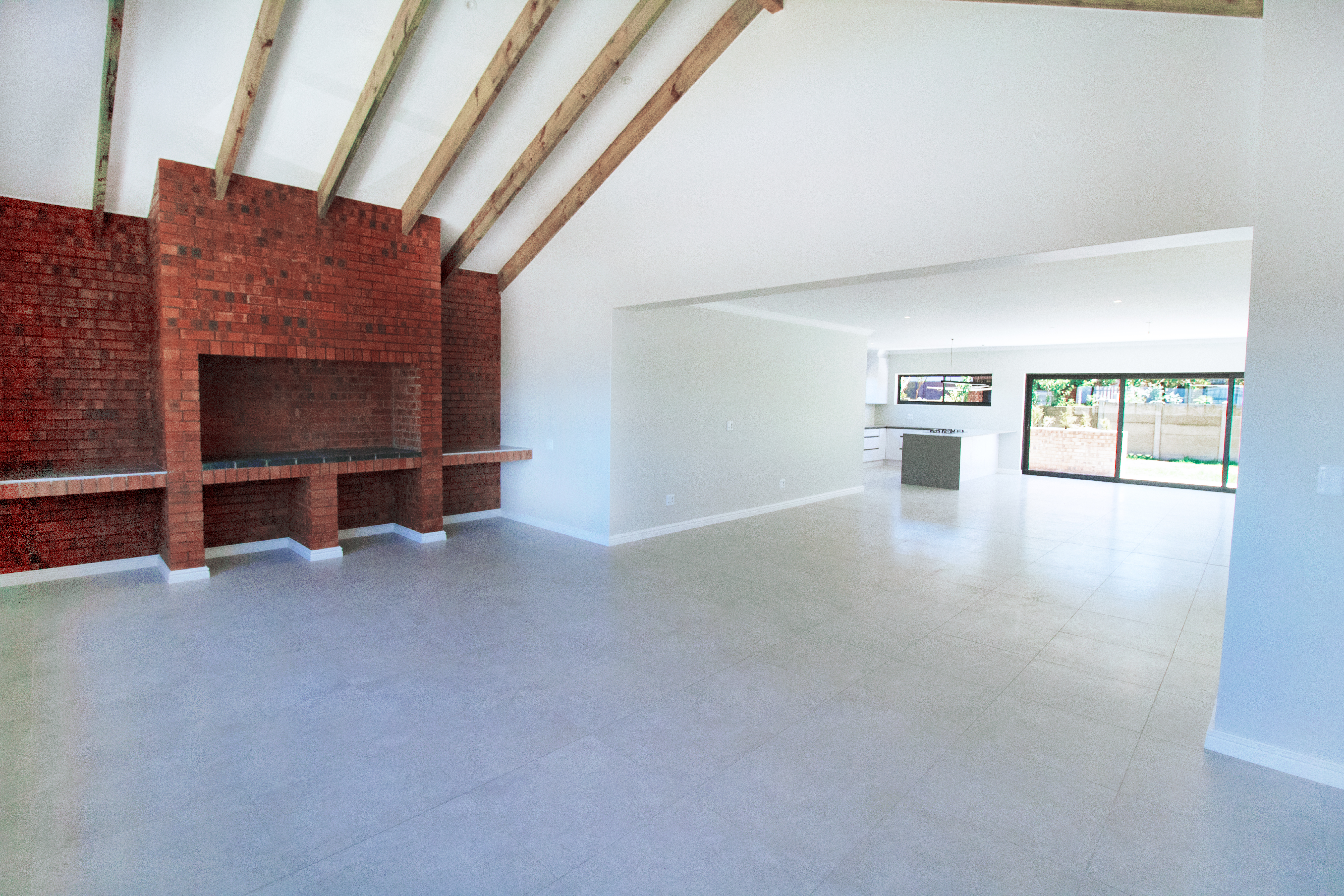 Set on a 601 sqm plot within a quiet, well-established crescent, the home offers a thoughtfully planned layout with quality finishes throughout. It features three generously sized bedrooms, two beautifully appointed bathrooms, and a spacious open-plan living and dining area that seamlessly integrates with the indoor braai room. The stylish, high-end kitchen includes premium finishes and a separate scullery for added convenience.