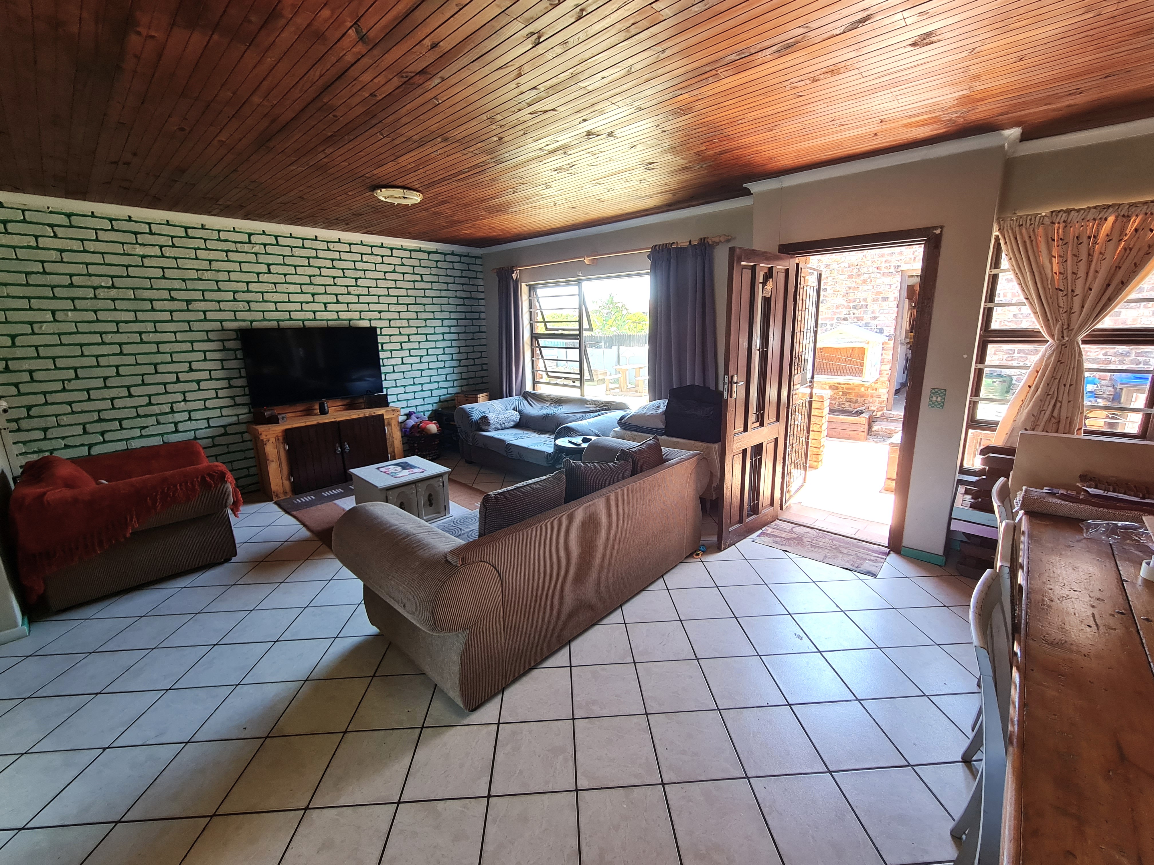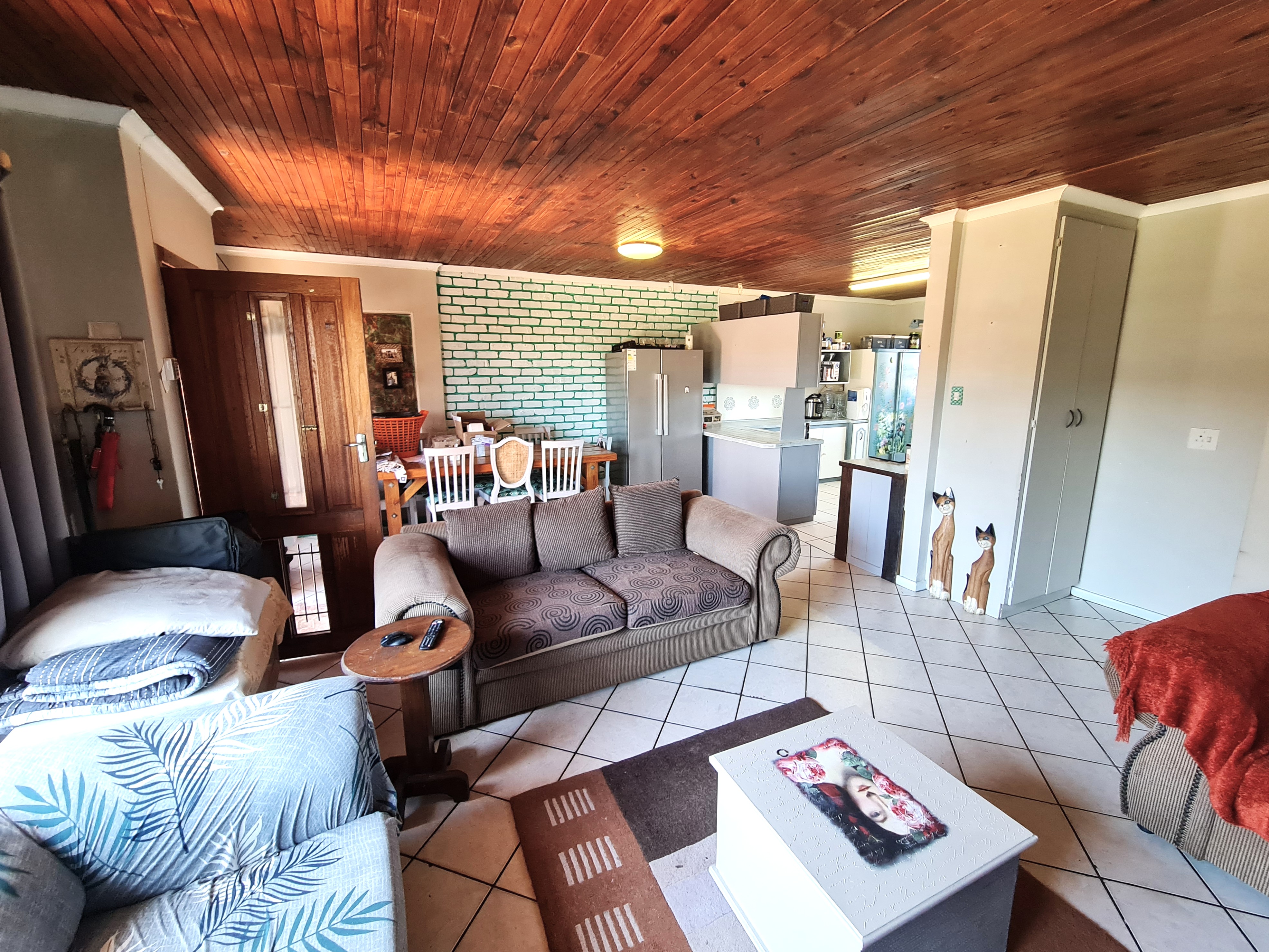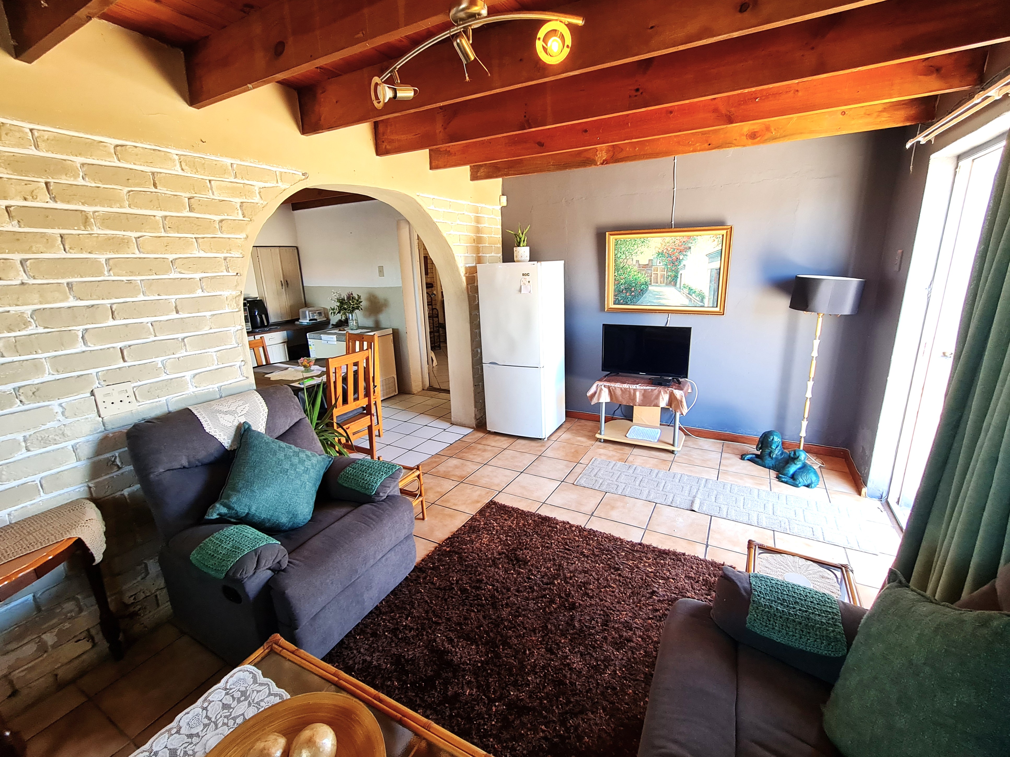 Main house has 3 bedrooms and 2 bathrooms (mes). Lounge and dining area, and an enclosed braai area. Single garage and ample parking.