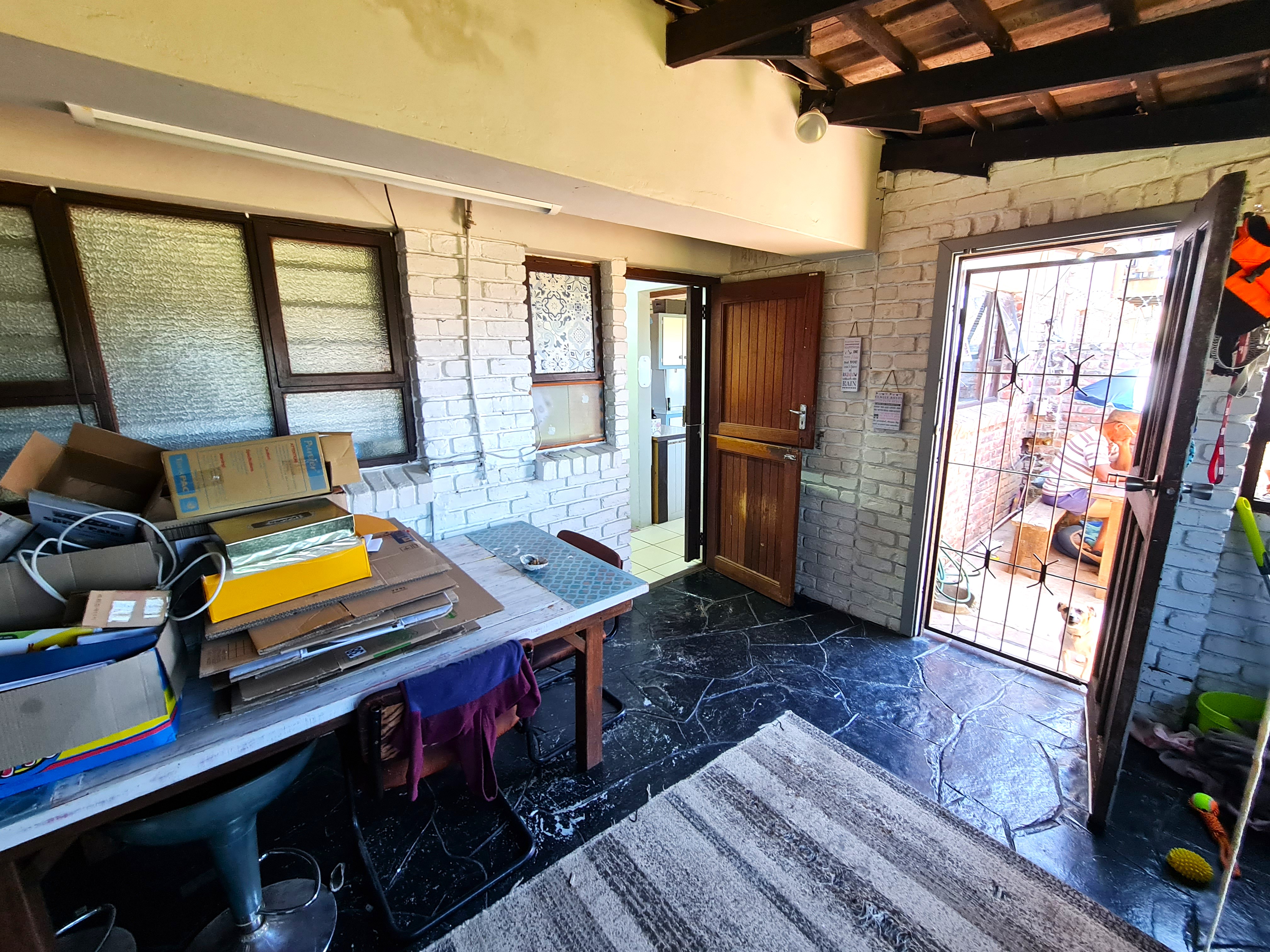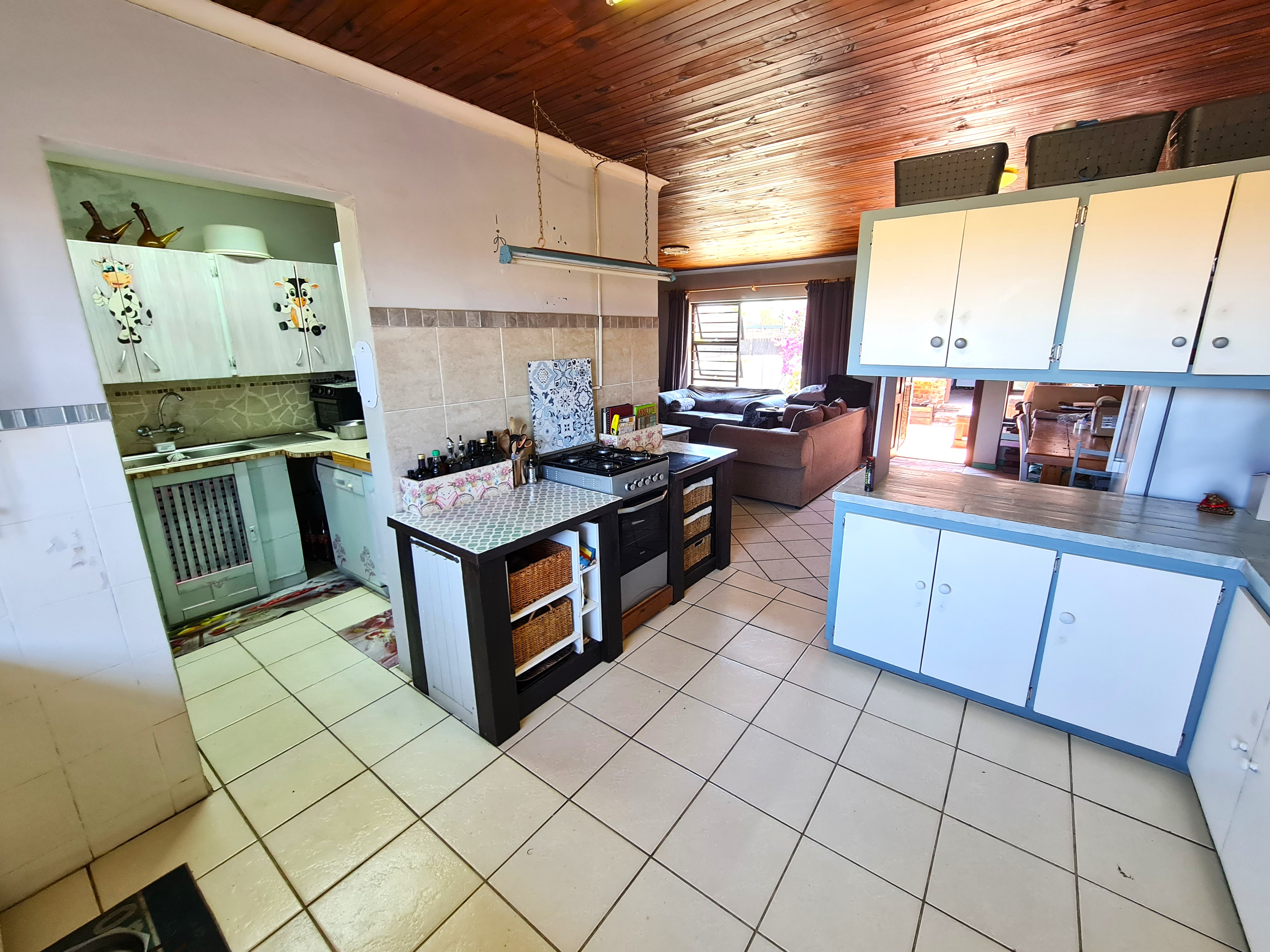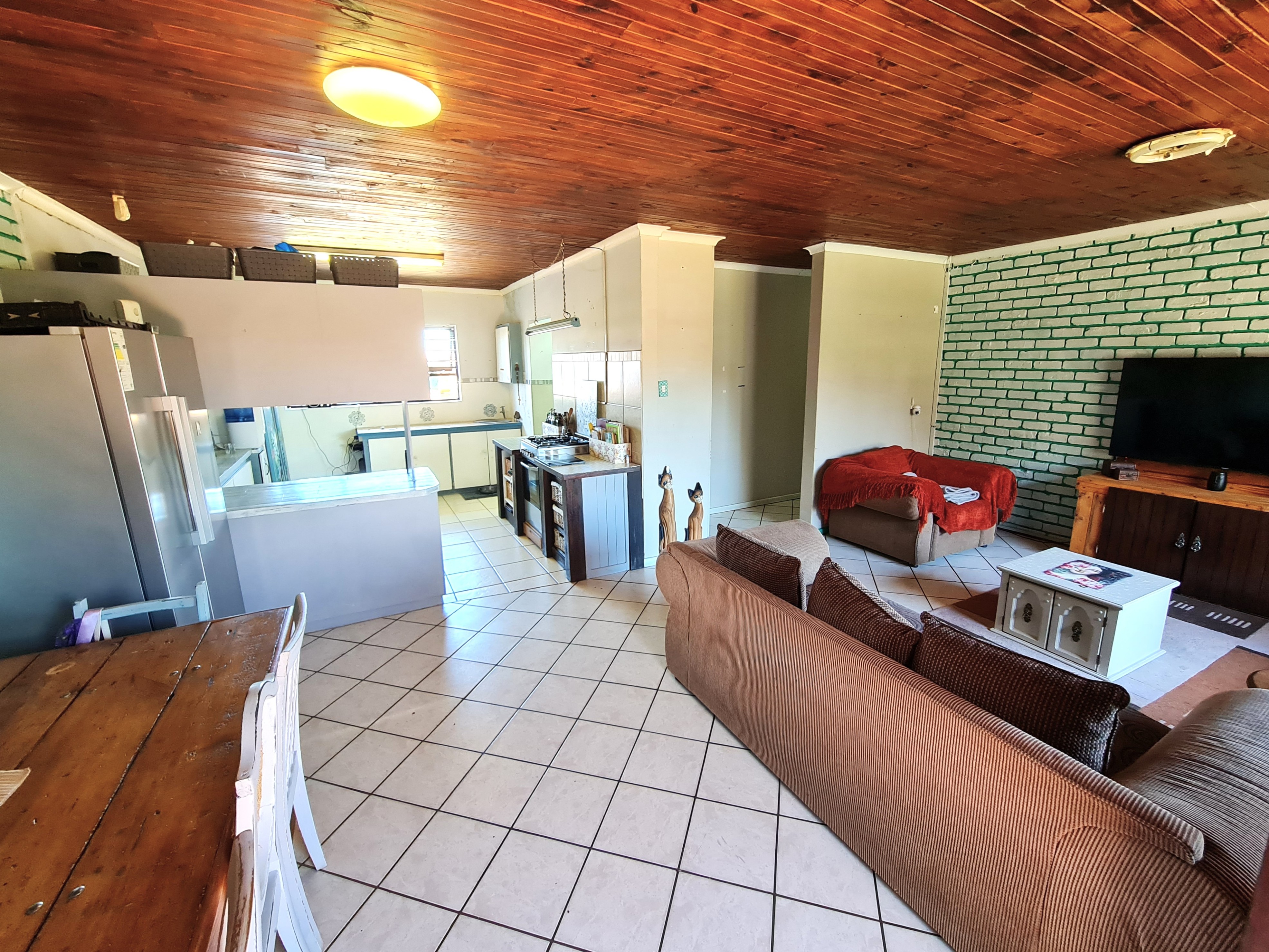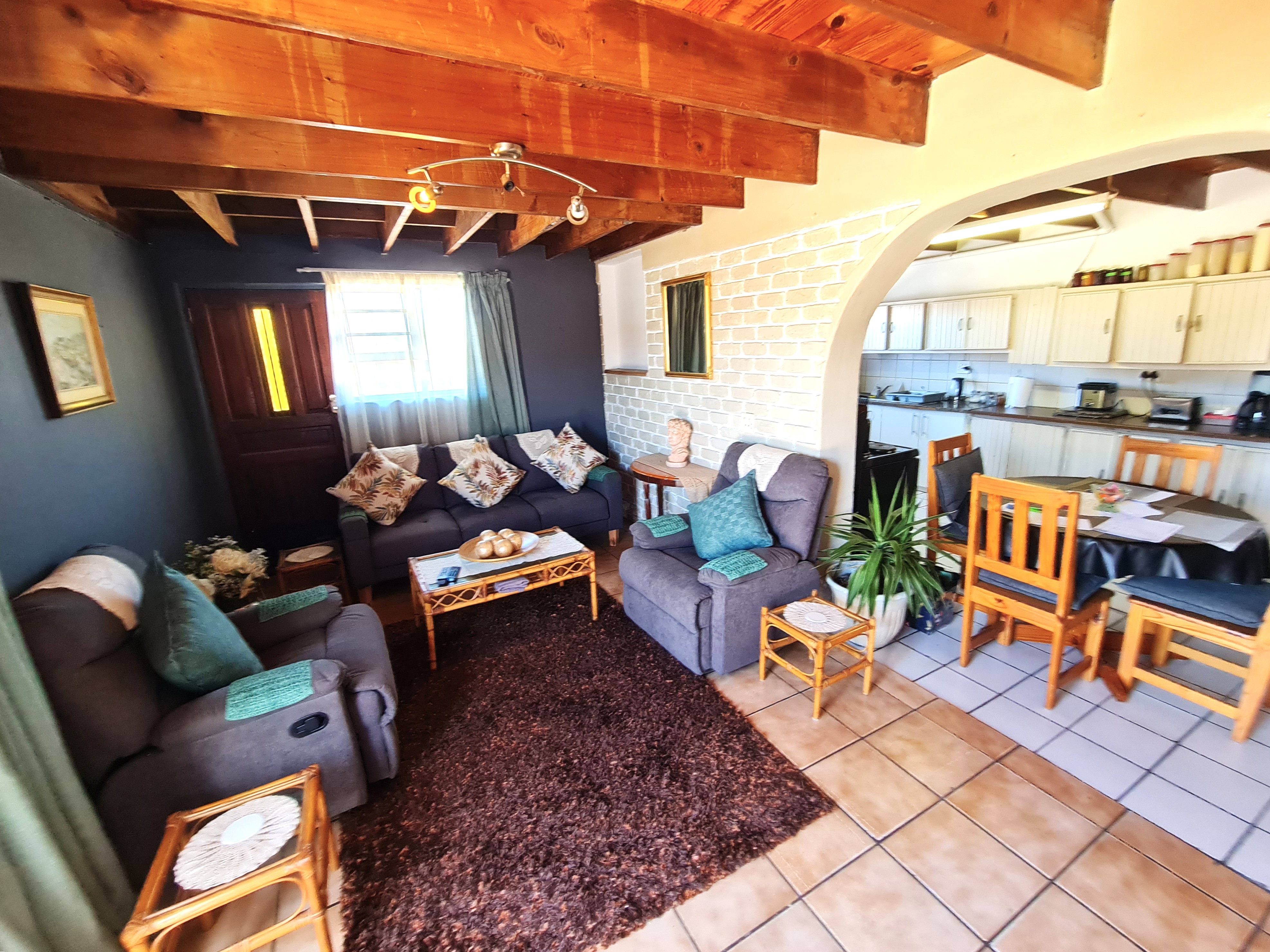 Main house has 3 bedrooms and 2 bathrooms (mes). Lounge and dining area, and an enclosed braai area. Single garage and ample parking.