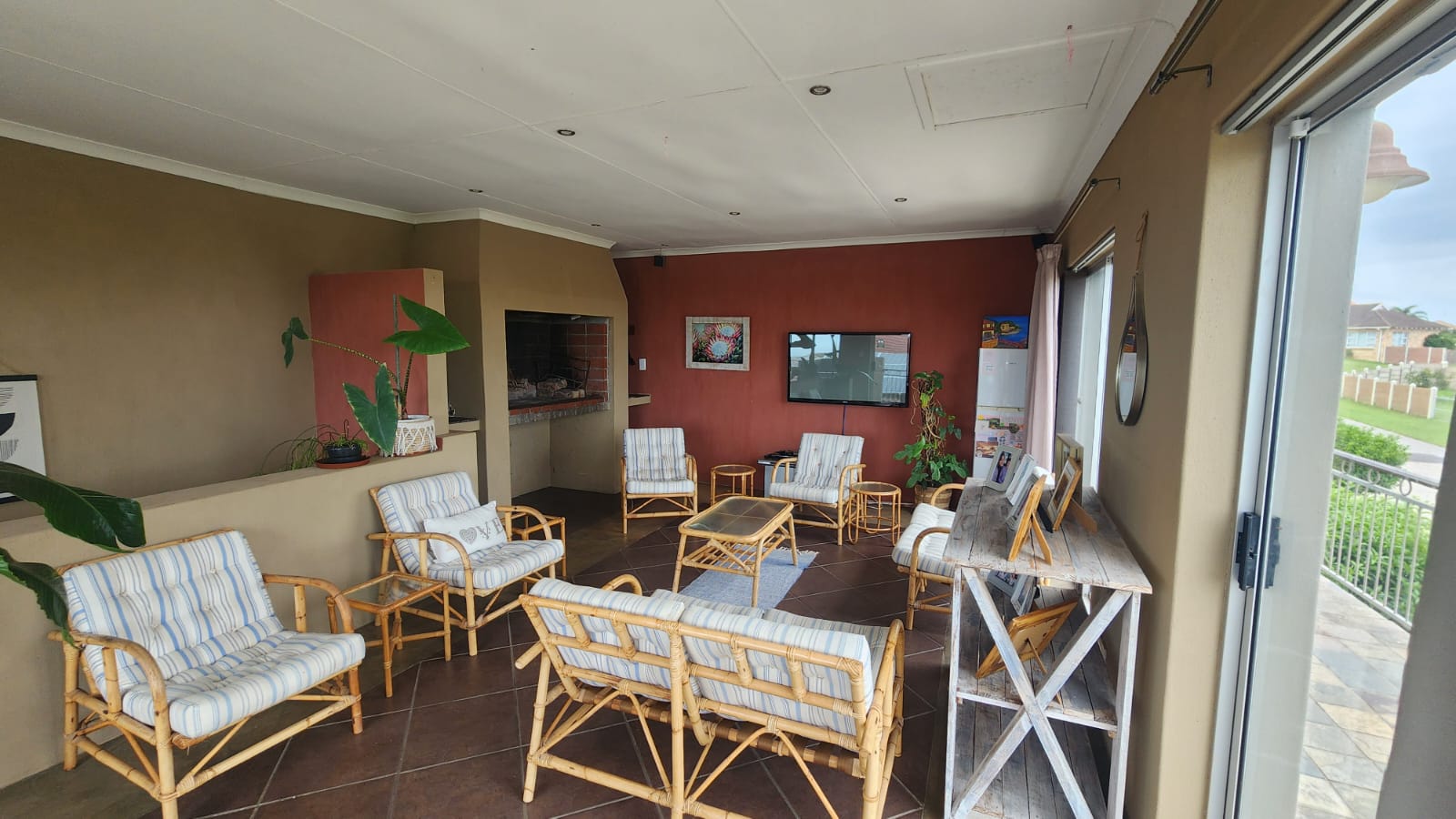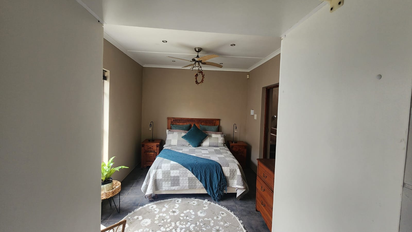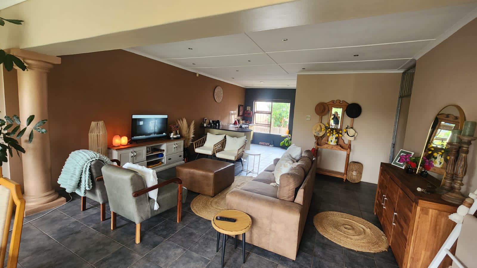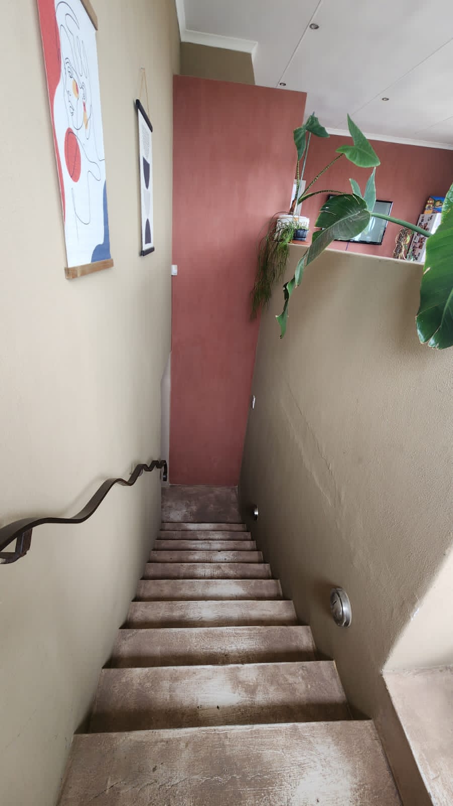 From a small living area, the stairs will take you to the upper level, consisting of a very spacious braai room with sliding doors opening onto a wraparound balcony with outside braai.