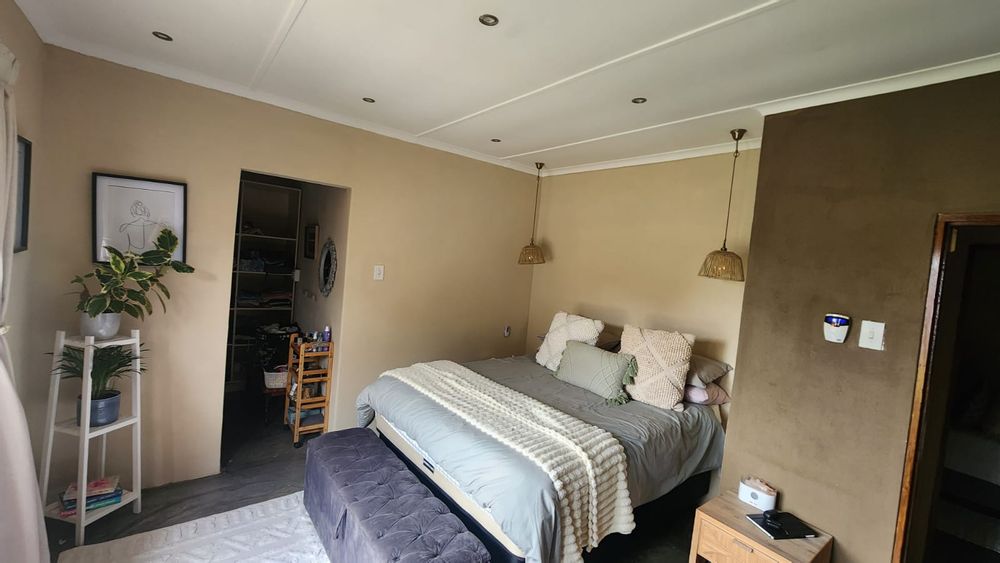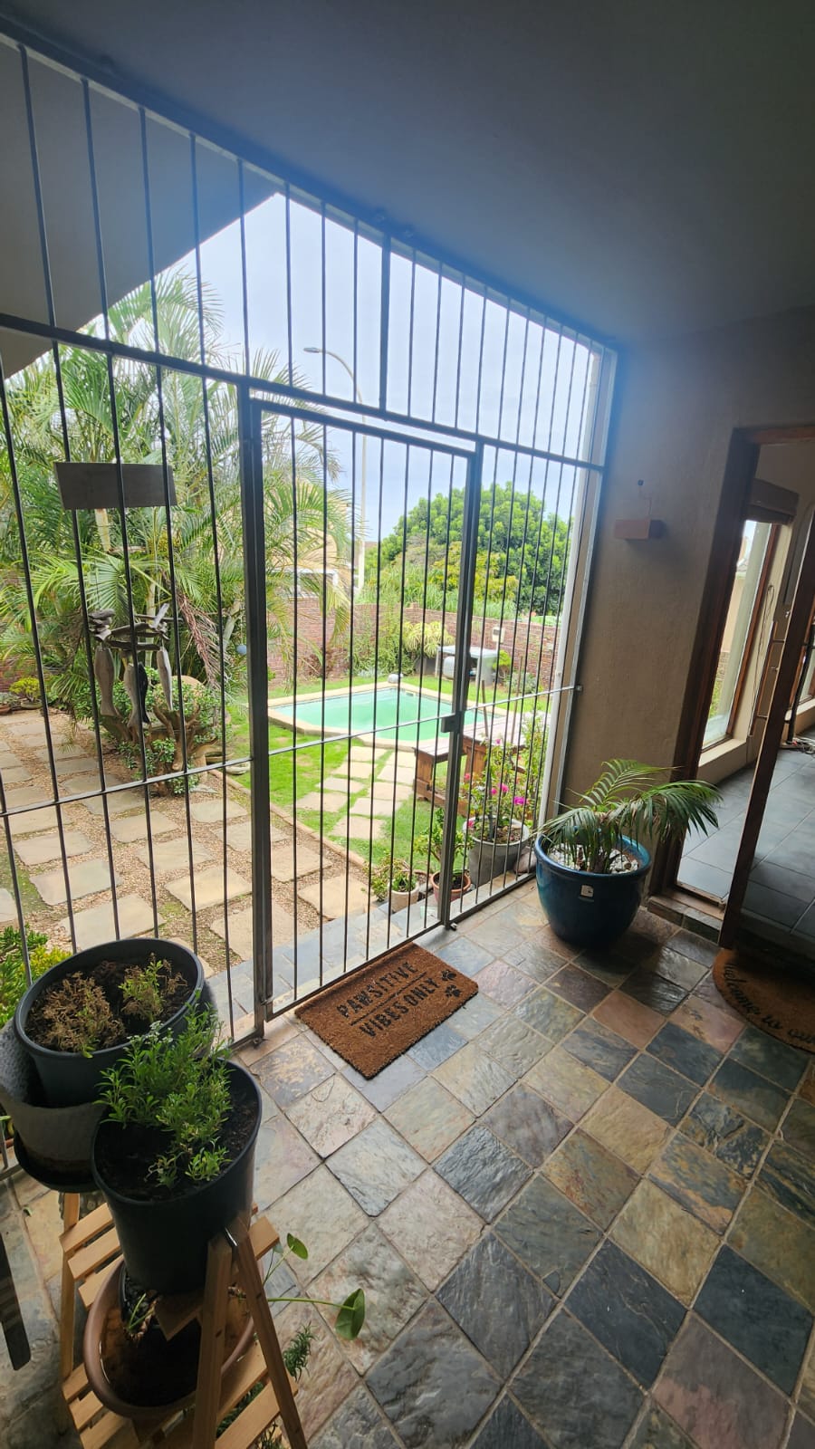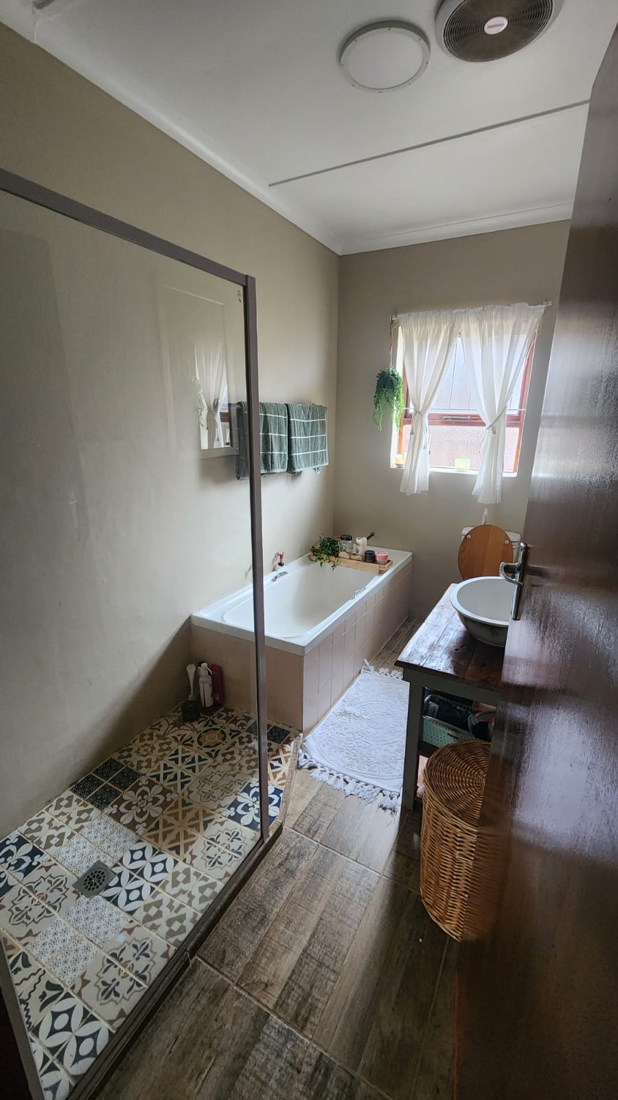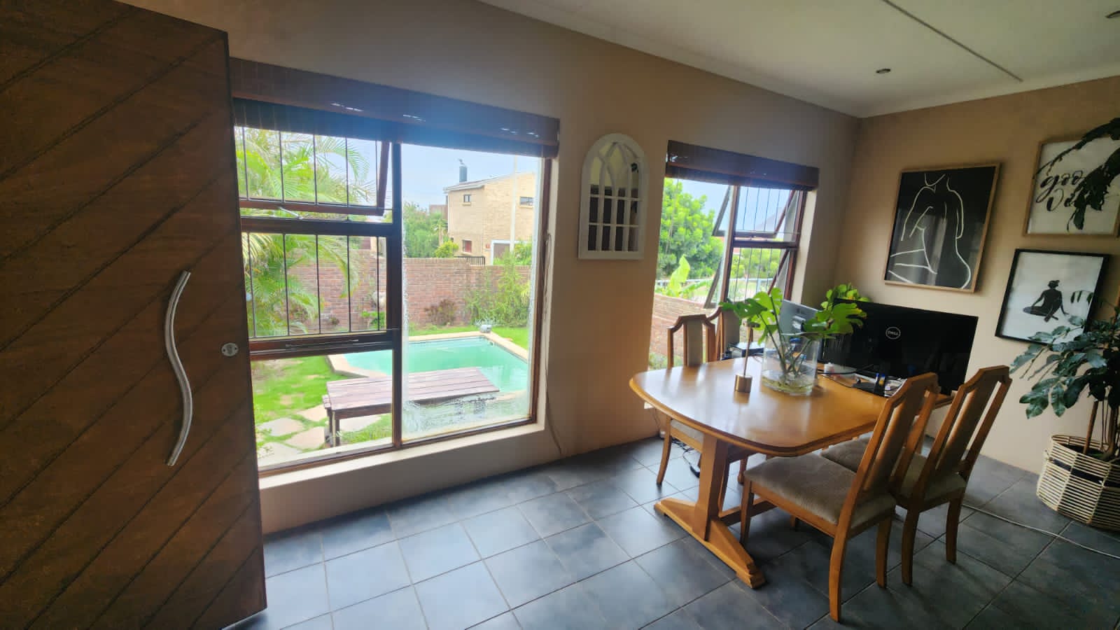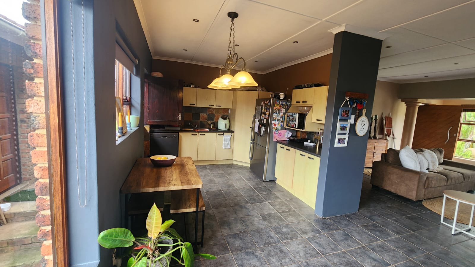 From a small living area, the stairs will take you to the upper level, consisting of a very spacious braai room with sliding doors opening onto a wraparound balcony with outside braai.